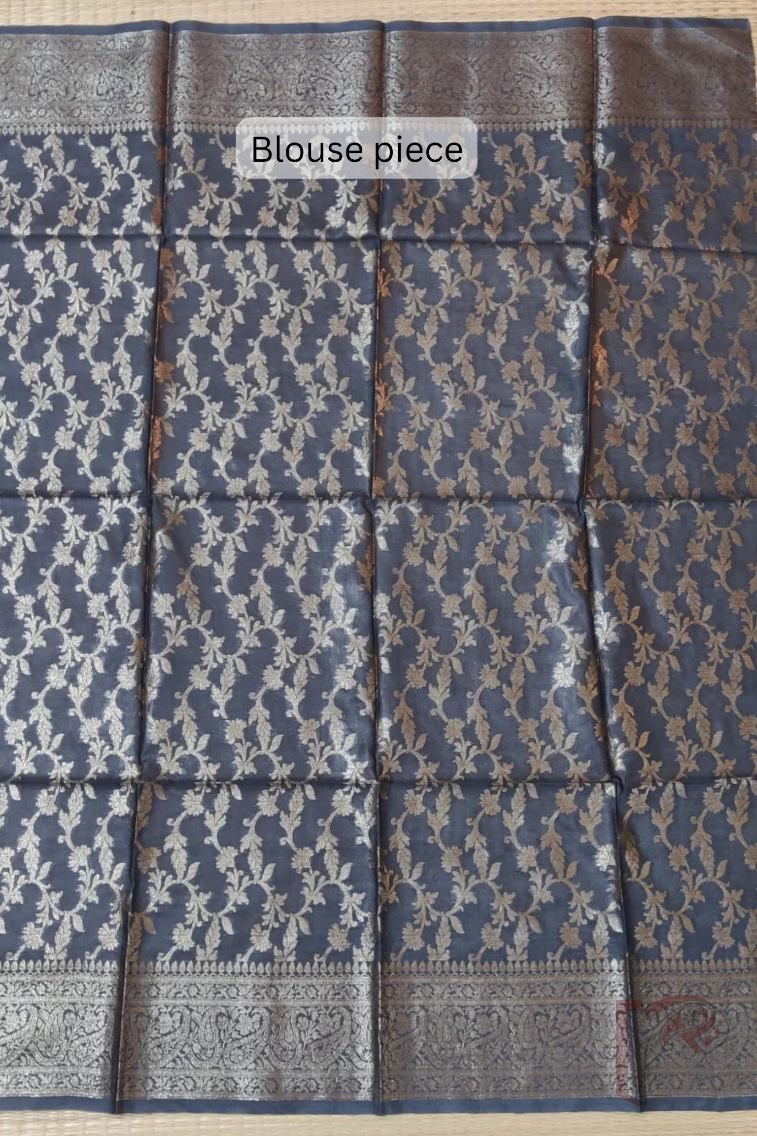 Each saree is paired with a meticulously matched running blouse, either plain with zari-edged finesse or featuring all-over Banarasi weave, ensuring a complete, polished ensemble. The pallus are regal, woven with subtle shimmer that elevates the look without overwhelming. From vivid jewel tones to soothing pastels, this collection offers a palette to suit every personality — from festive grandeur to understated elegance.