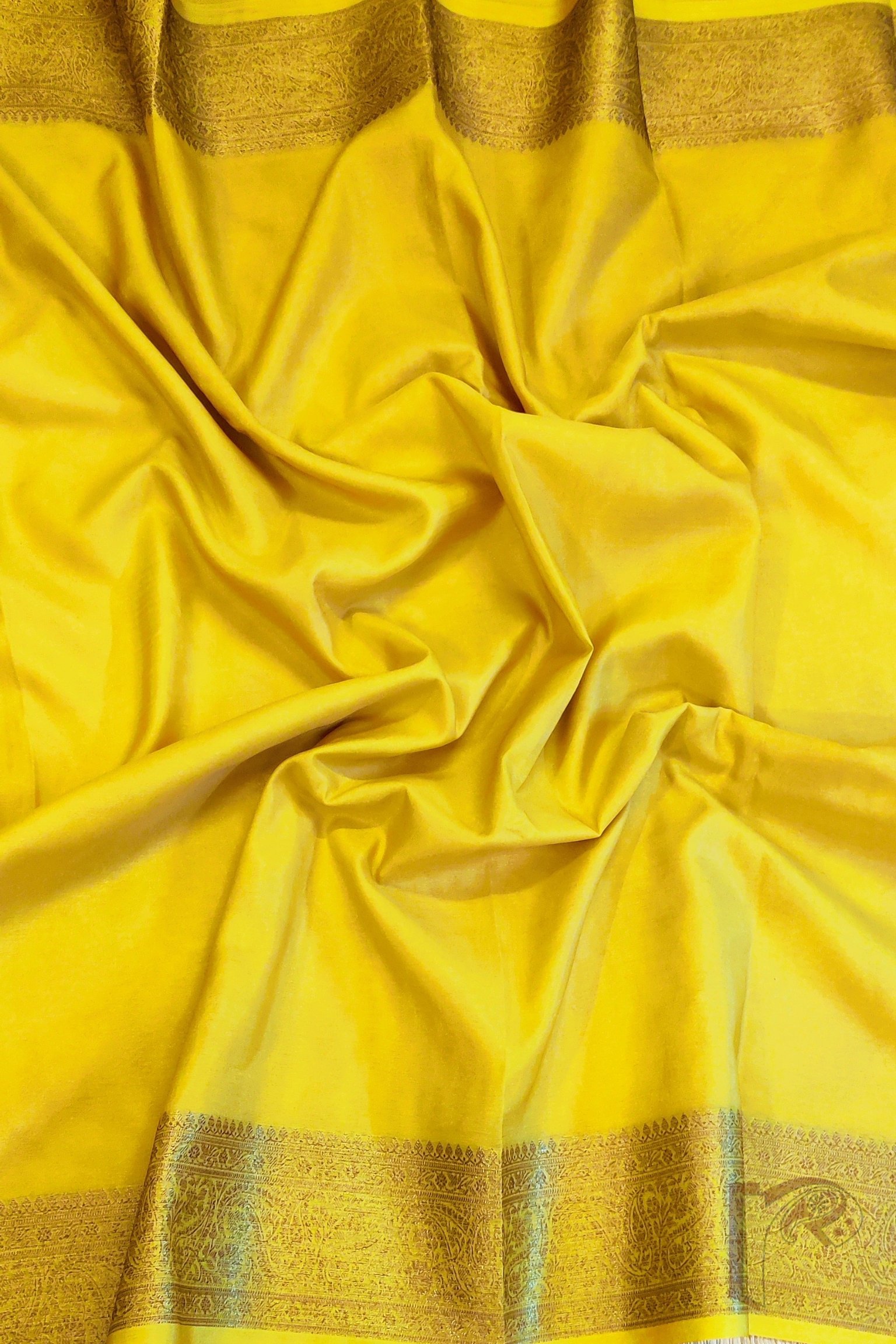 Banarasi Bloom: Lemon Yellow Khadi Silk Saree with 4″ Karwa Banarasi Weave Border and Muted Gold Woven Pallu