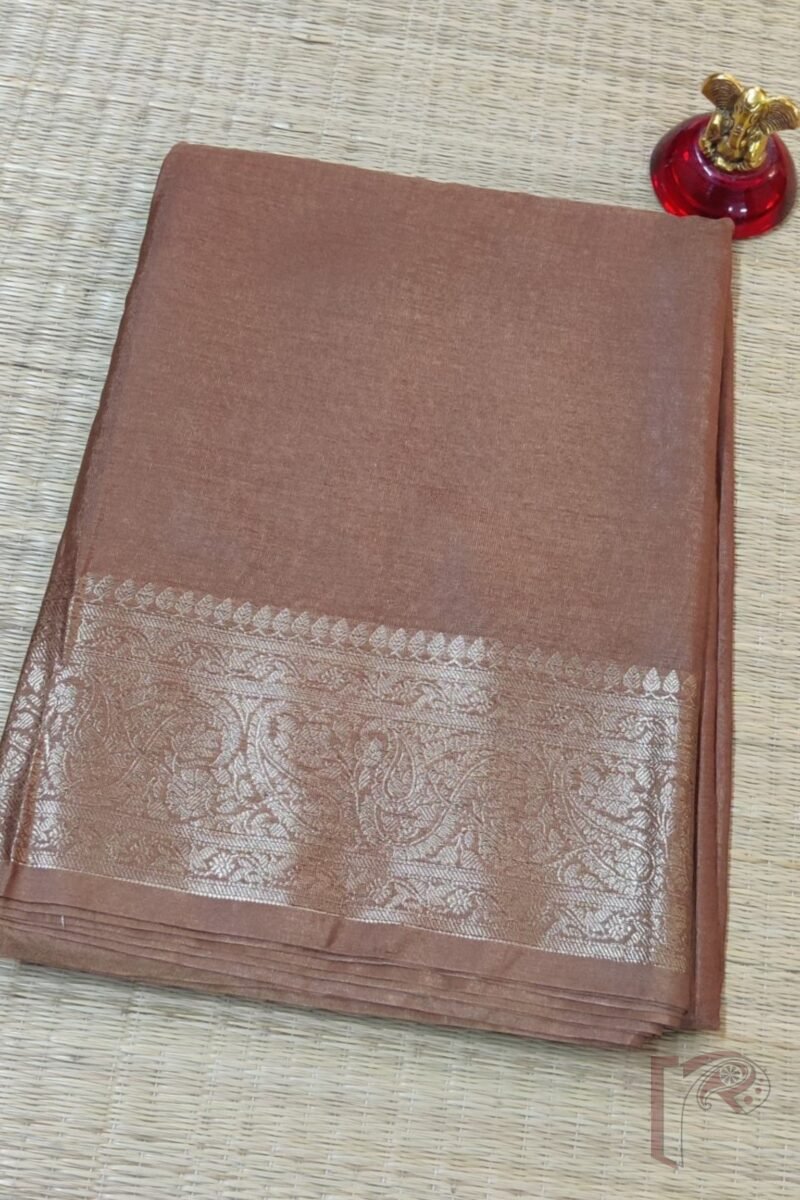 Khadi silk is a fabric that speaks of strength, simplicity, and sustainability. Spun with care and woven with pride, Khadi silk offers a soft, breathable texture that drapes like a dream while exuding quiet luxury. When fused with Banarasi weaving, especially the intricate karwa weaving technique, the result is a saree that feels rooted in history yet resplendent in contemporary sophistication. Whether it’s the vertical zari stripes or the broad gleaming borders, every saree in this collection captures the finesse of the loom.