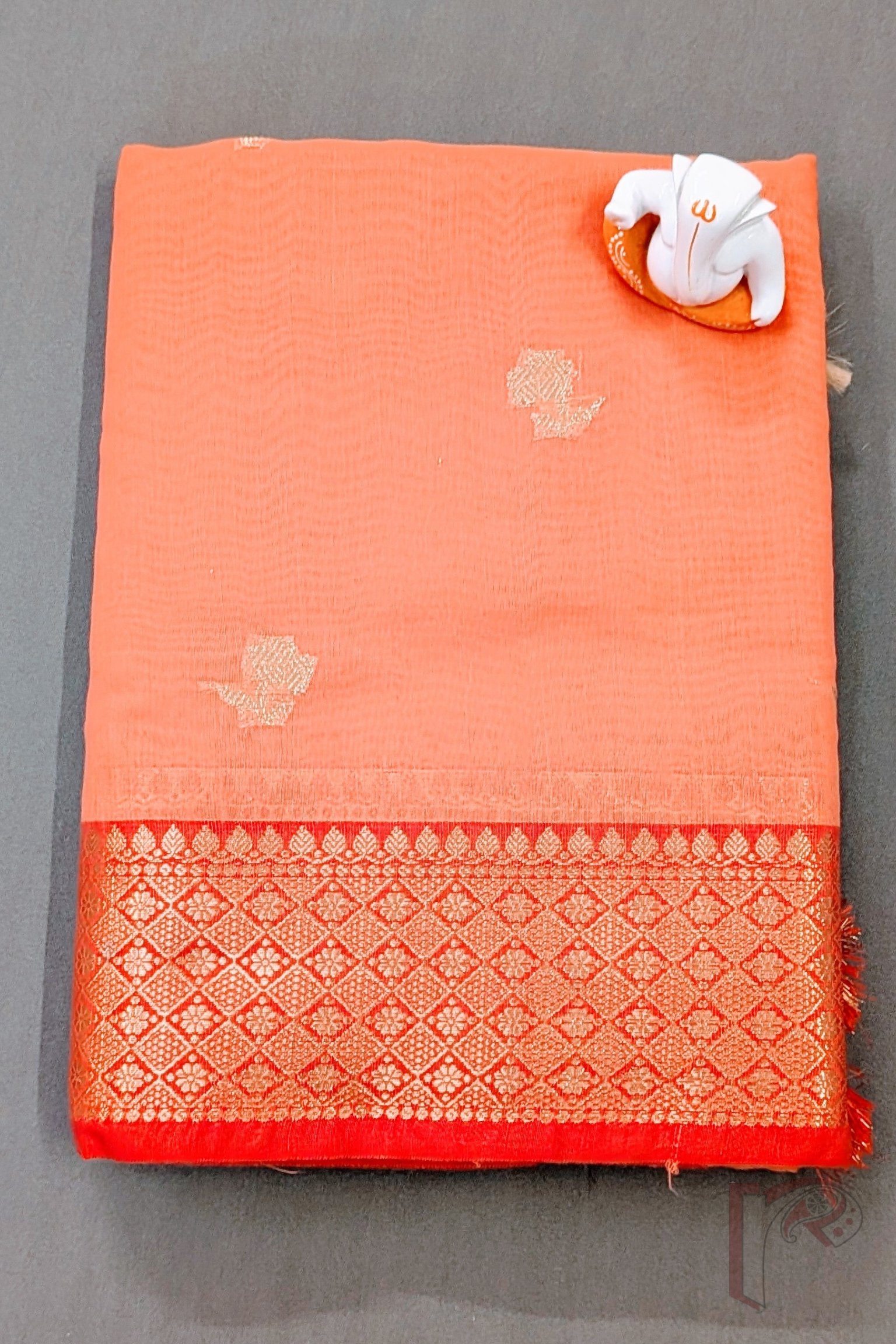 Each saree in this collection is adorned with floral stem motifs in zari, a design element that symbolizes grace and continuity in Indian weaving traditions. Borders vary from dual-toned zari finishes in gold and silver to finely woven lines, creating subtle yet striking contrasts. Completing the look, every saree is paired with a plain running blouse featuring zari borders, offering scope for customization while retaining harmony with the saree.