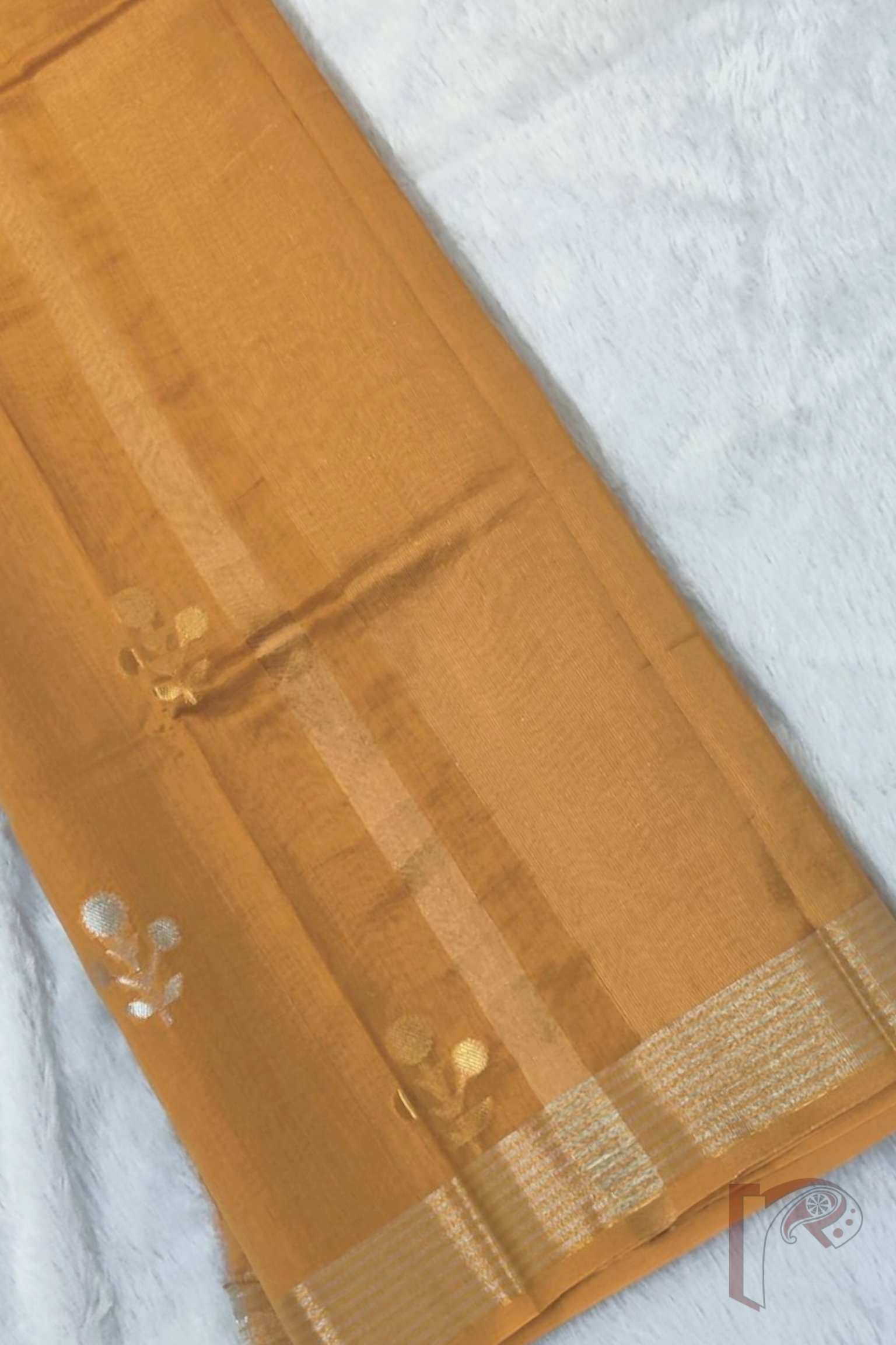 Banarasi Bloom: Mustard Yellow Mercerised Cotton Silk Saree with Thin Line Banarasi Borders and Floral Zari Design