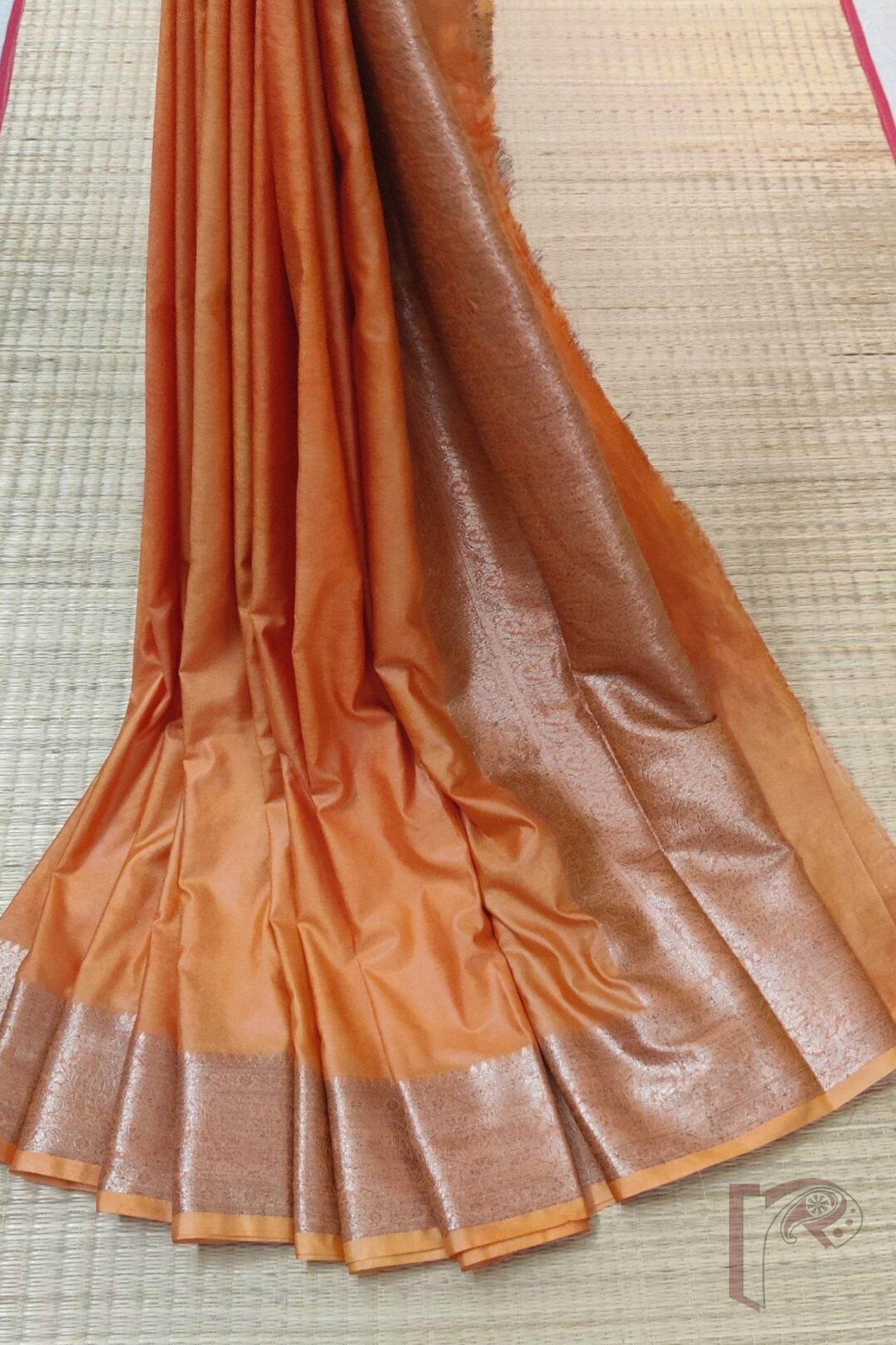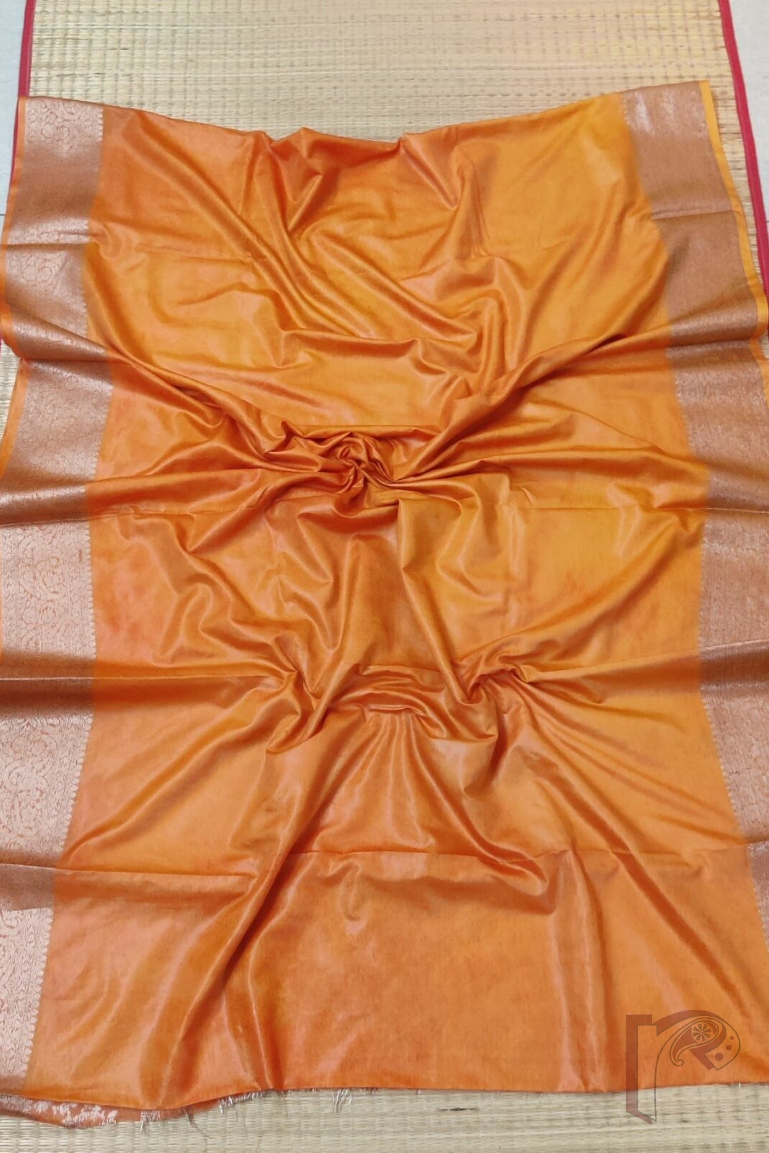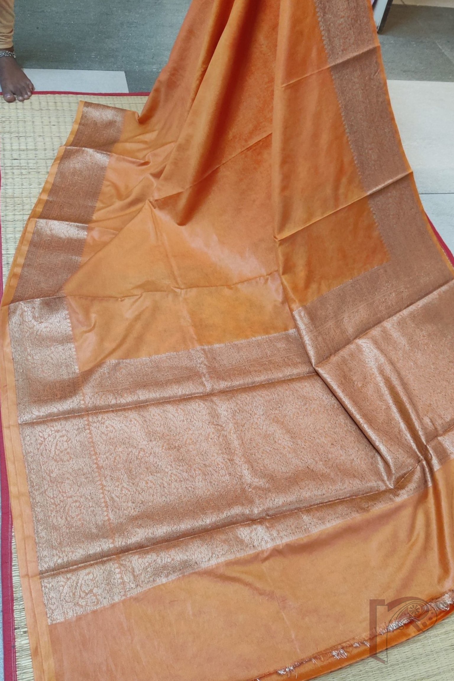 Banarasi Bloom: Orange Khadi Silk Saree with Muted Gold Karwa Banarasi Border and All-Over Woven Blouse