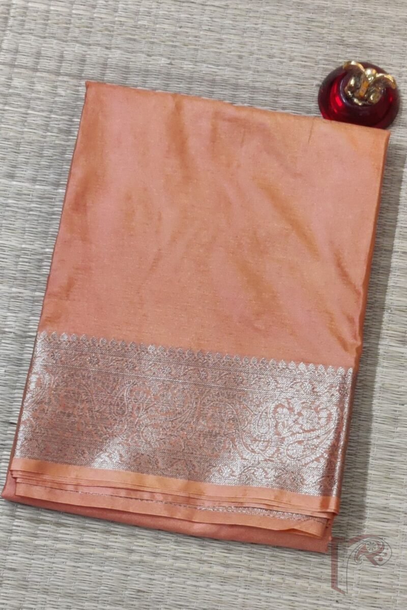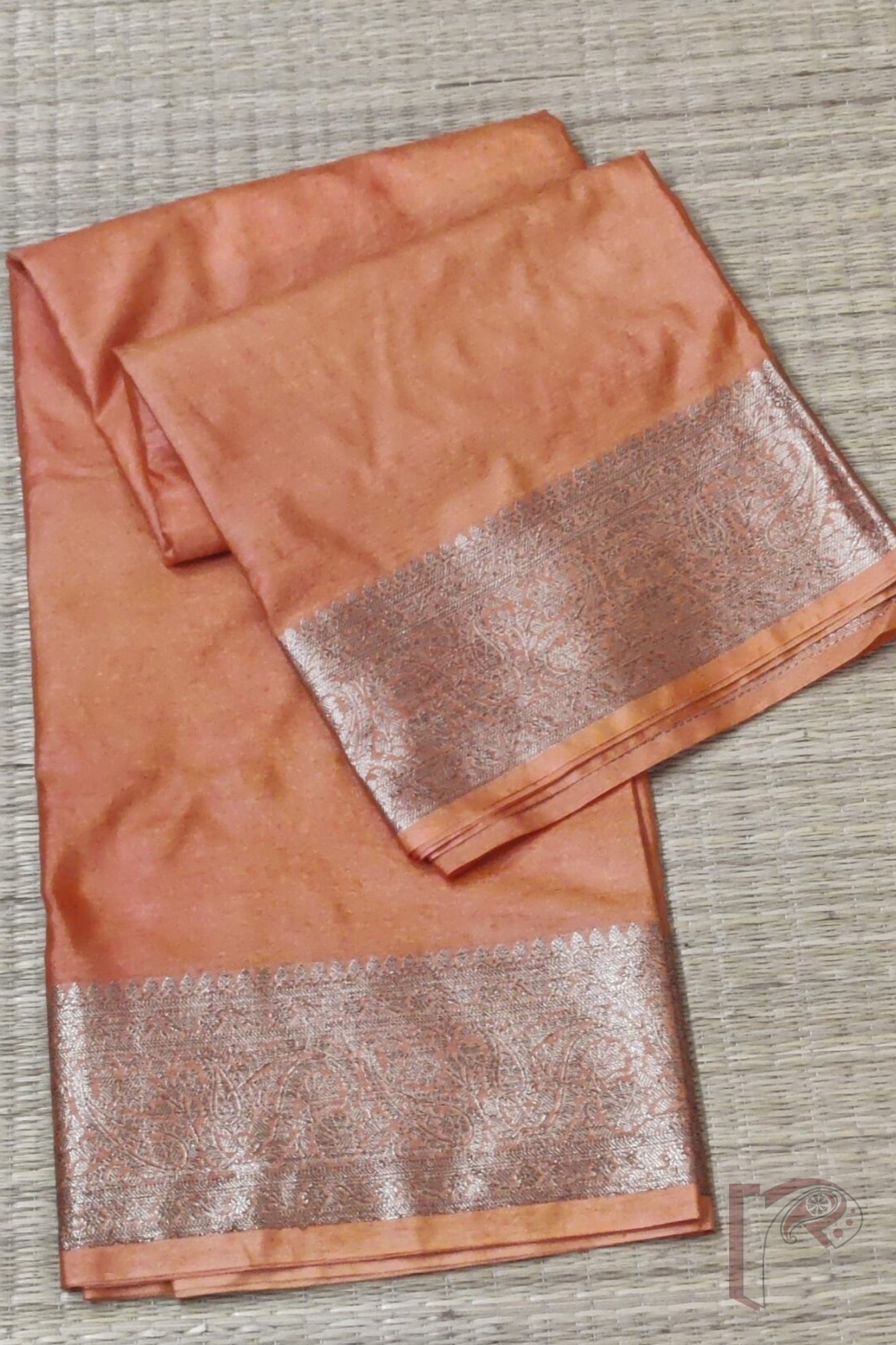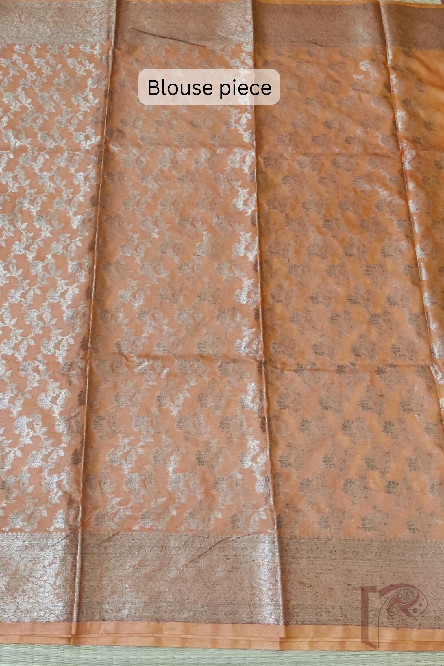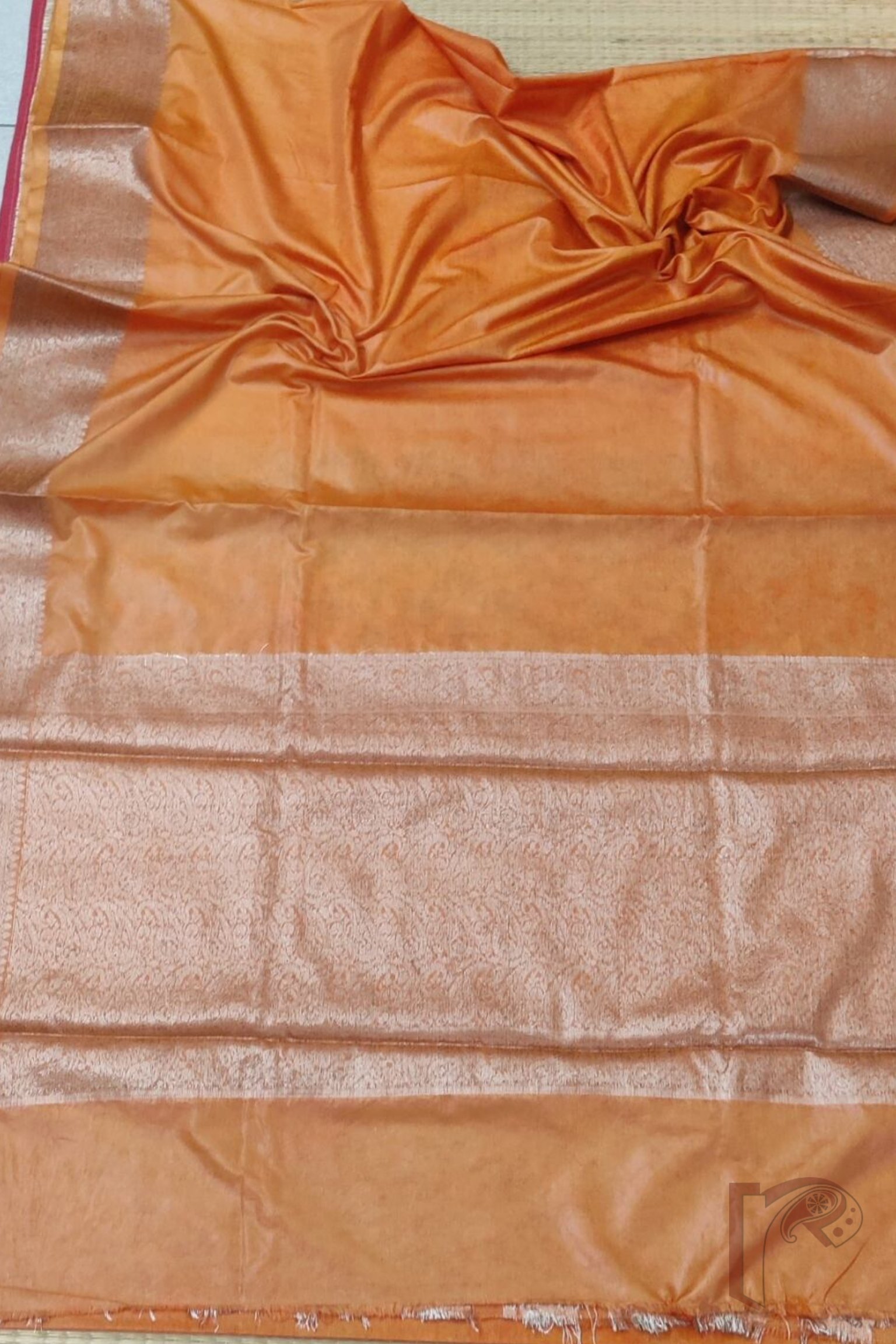 Banarasi Bloom: Orange Khadi Silk Saree with Muted Gold Karwa Banarasi Border and All-Over Woven Blouse