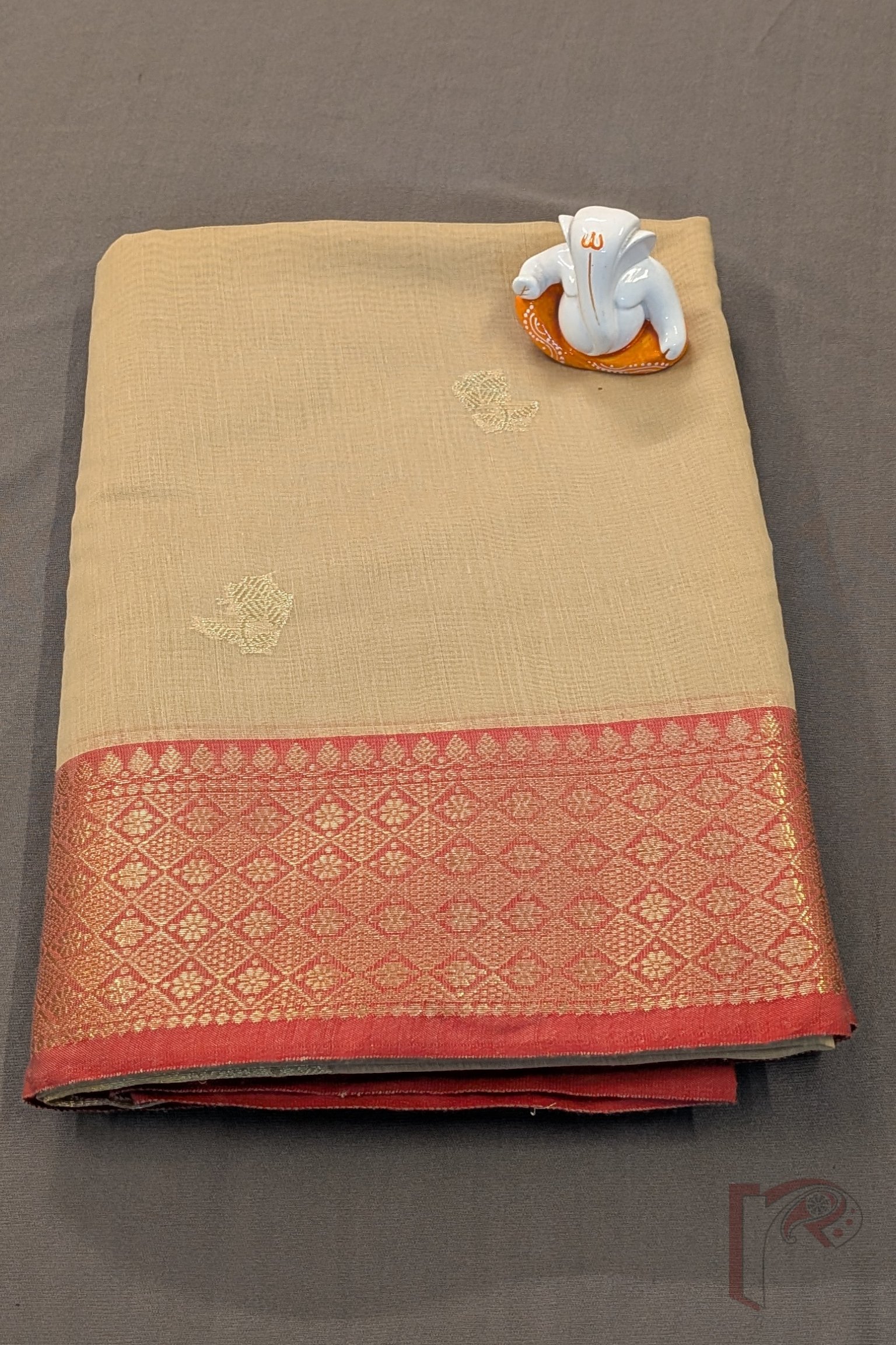 Banarasi Bloom: Pretty Fawn Cotton Silk Blended Banarasi Floral Zari Border Saree