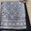 This captivating teal green khadi silk saree features a luxurious dull gold Banarasi weave, embodying elegance and tradition. The saree’s body is adorned with intricate vertical zari stripes in alternating 1/2″ and 1″ widths, adding depth to its rich texture. A broad 6″ border frames the saree, leading to an opulent 19″ pallu with the same dull gold woven zari. Paired with a running blouse that boasts a subtle 4″ zari border, this saree is an exquisite choice for any occasion, effortlessly blending sophistication with timeless appeal.