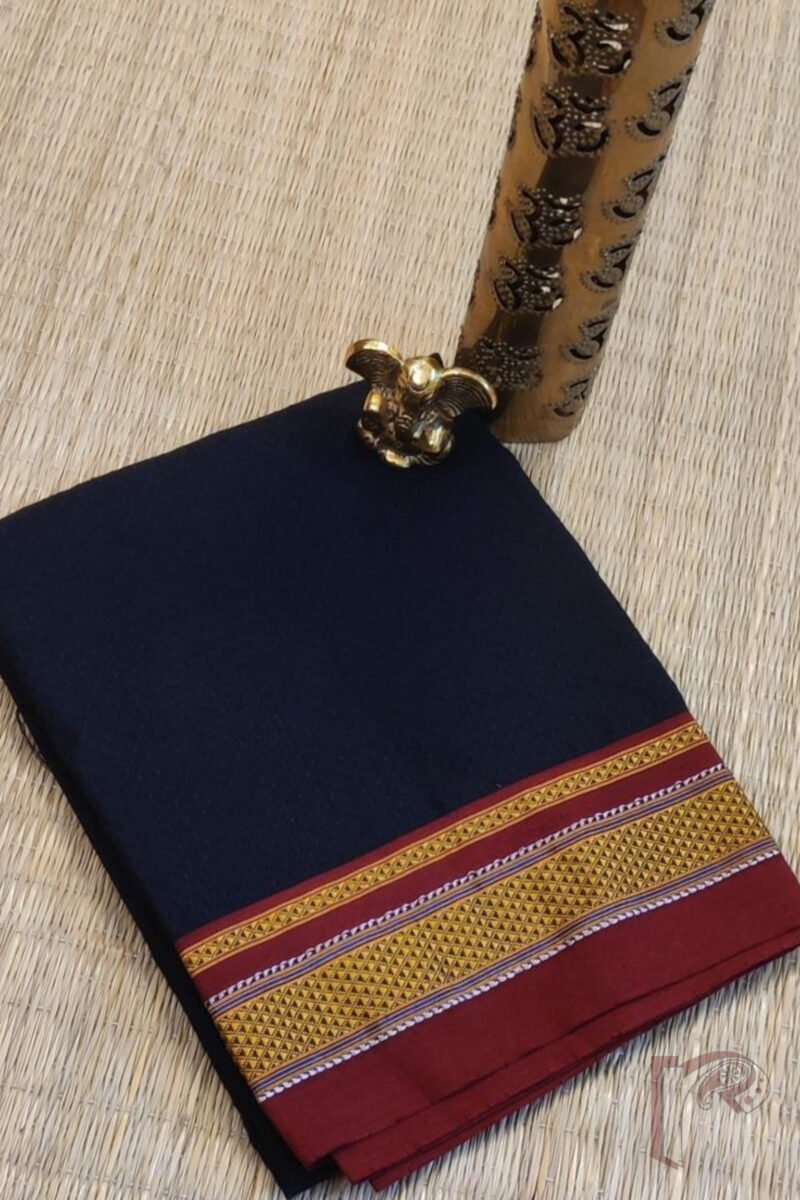 Black and Maroon Khun Weave Ilkal Blouse Piece with Golden-White Thread Border