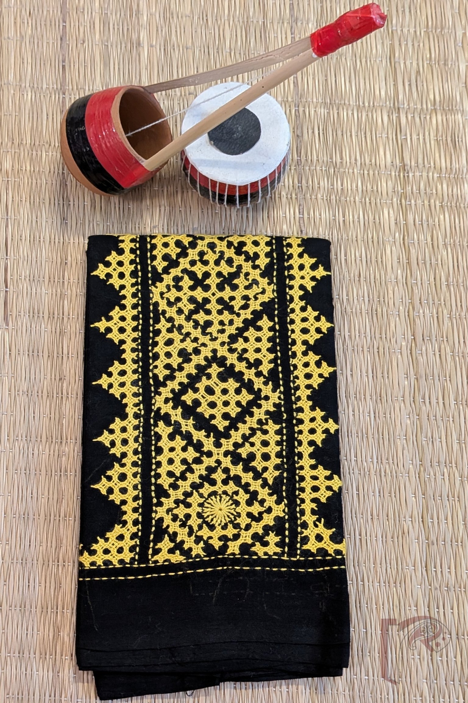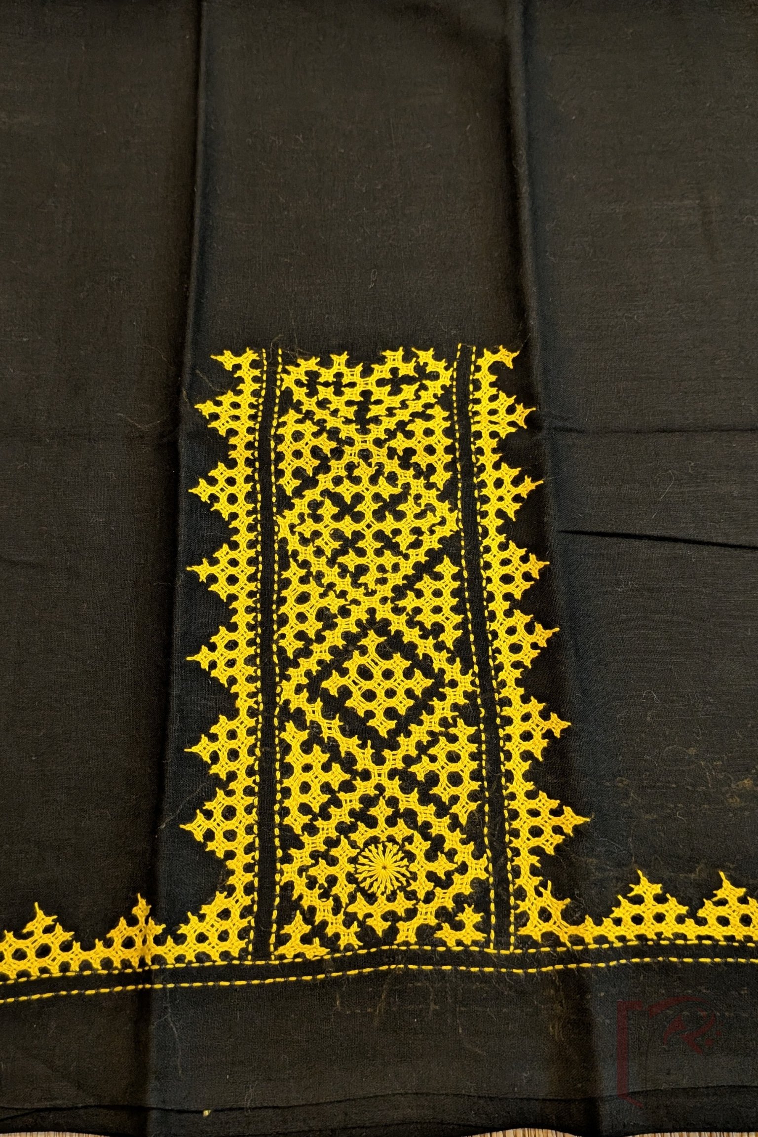 Black Cotton Blouse with Yellow Vertical Kutch Embroidery