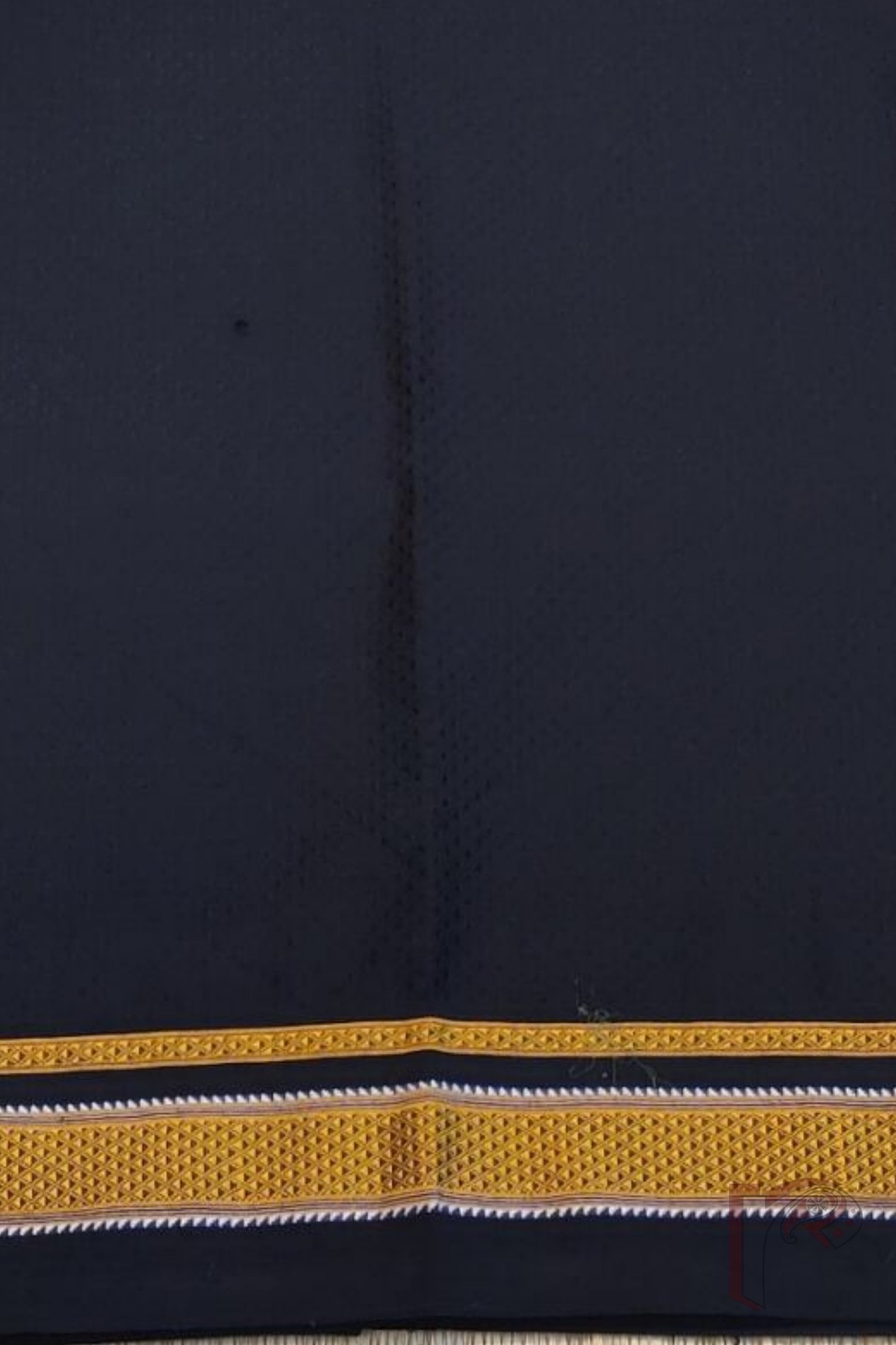 Black Khun Weave Ilkal Blouse Piece with Golden-White Thread Border