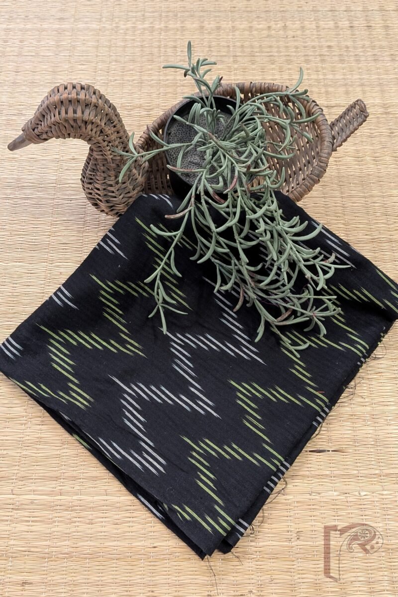 Black, White and Green Zigzag Dash Pattern Ikkat Cotton Blouse Piece