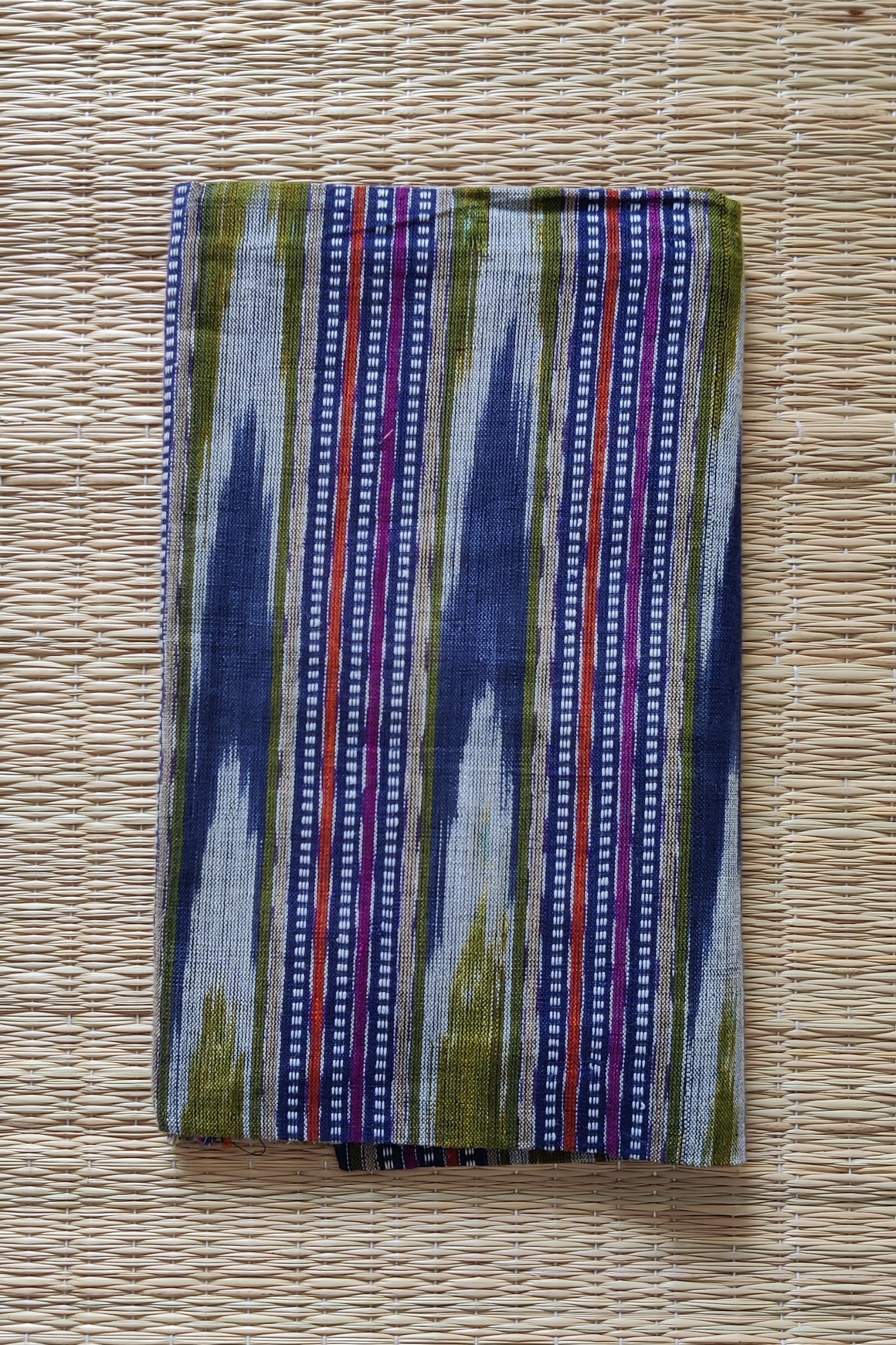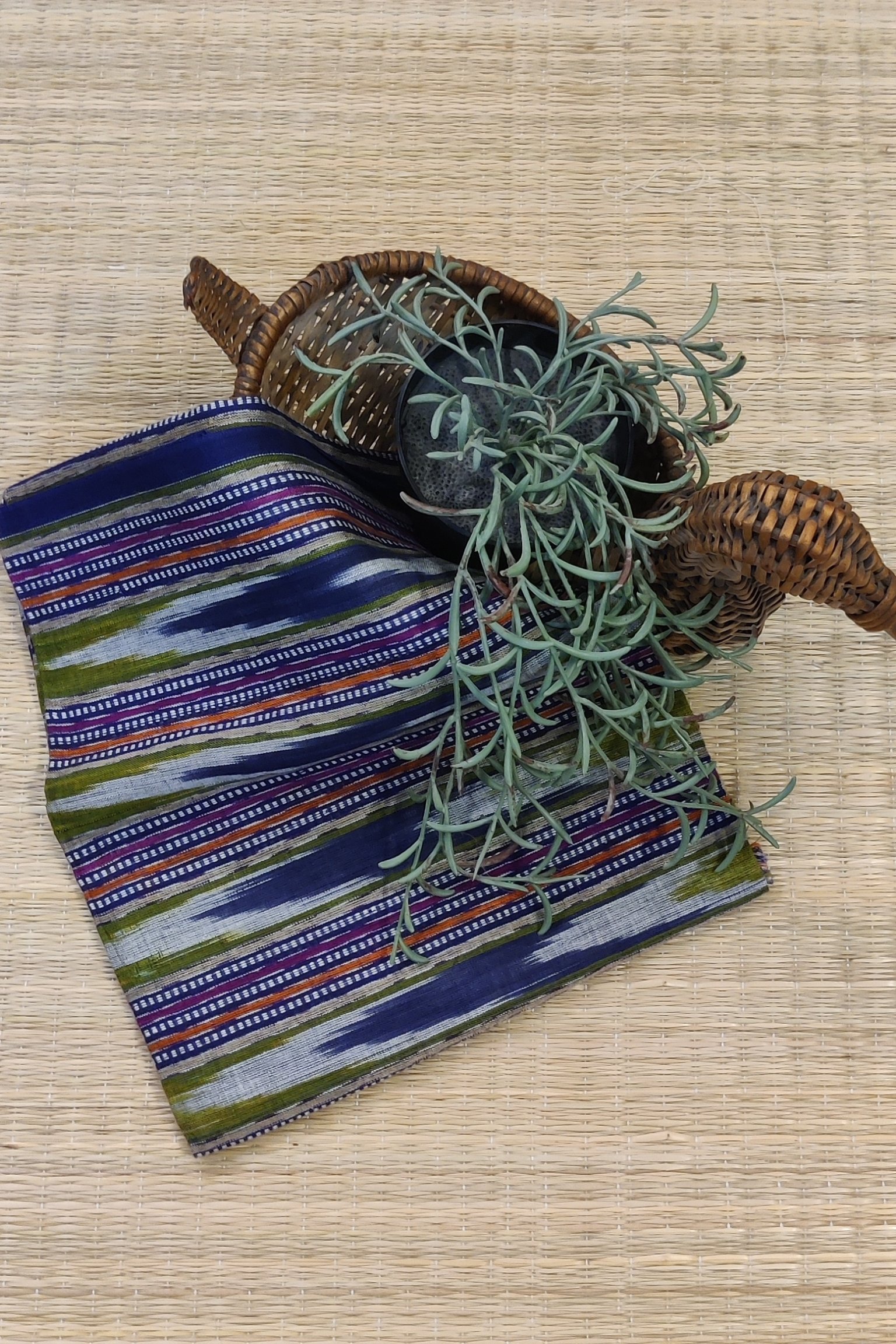 Blue Mehandi Green Grey Sambalpuri Ikkat Cotton Blouse Piece with Orange Pink Stripes