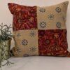 Cozy Cushion: Black Kalamkari Fan Flower Print with Fawn Cotton Border Cushion Cover 12″ x 12″