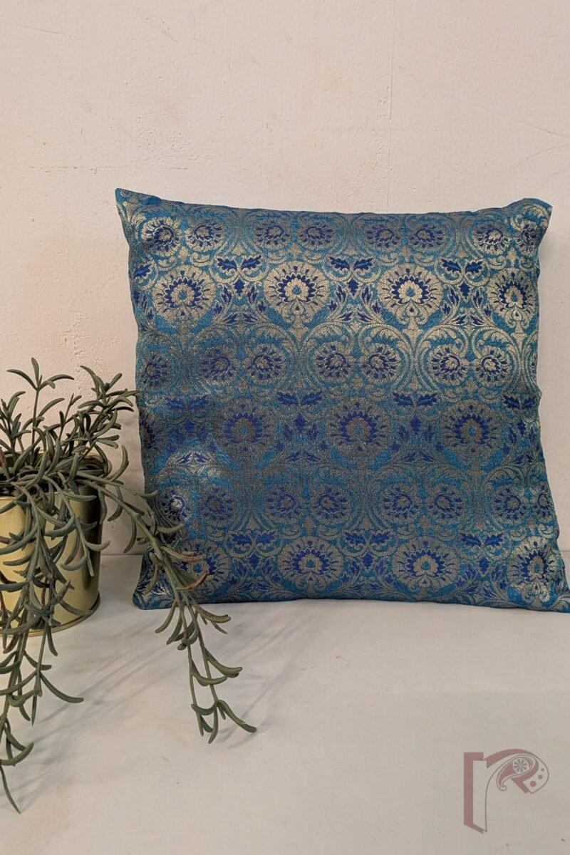 Cozy Cushion – Blue, Cobalt & Purplish Banarasi Weave Raw Silk Cushion Cover 12″ x 12″