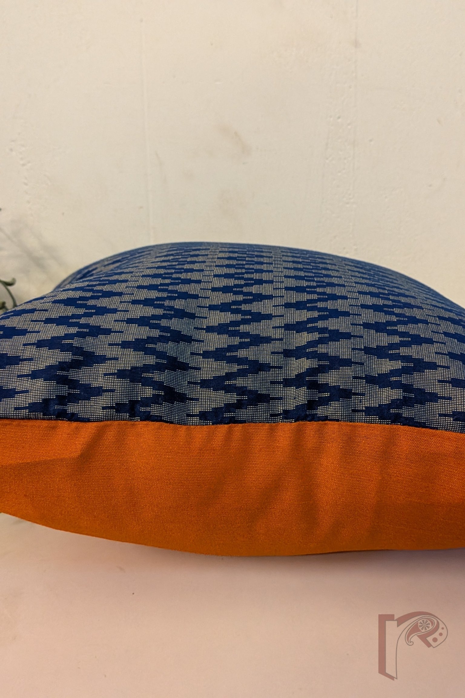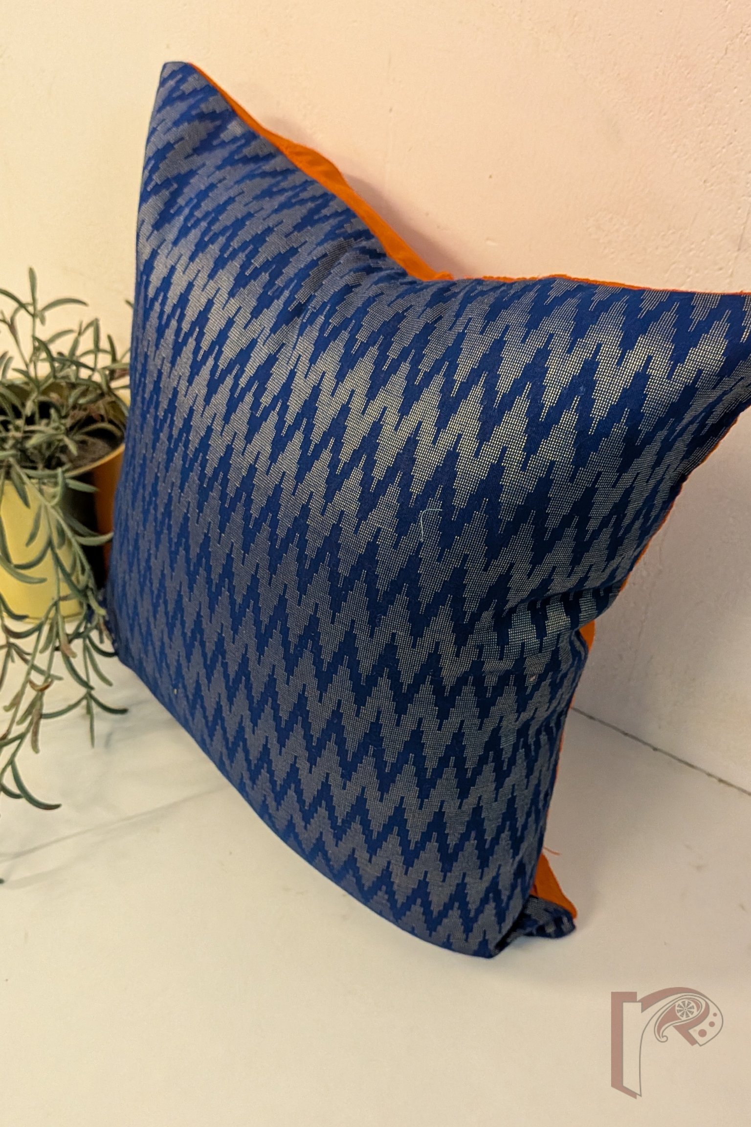 Cozy Cushion – Blue Cotton Silk Zigzag Weave with Orange Silk Back Cushion Cover 12″ x 12″