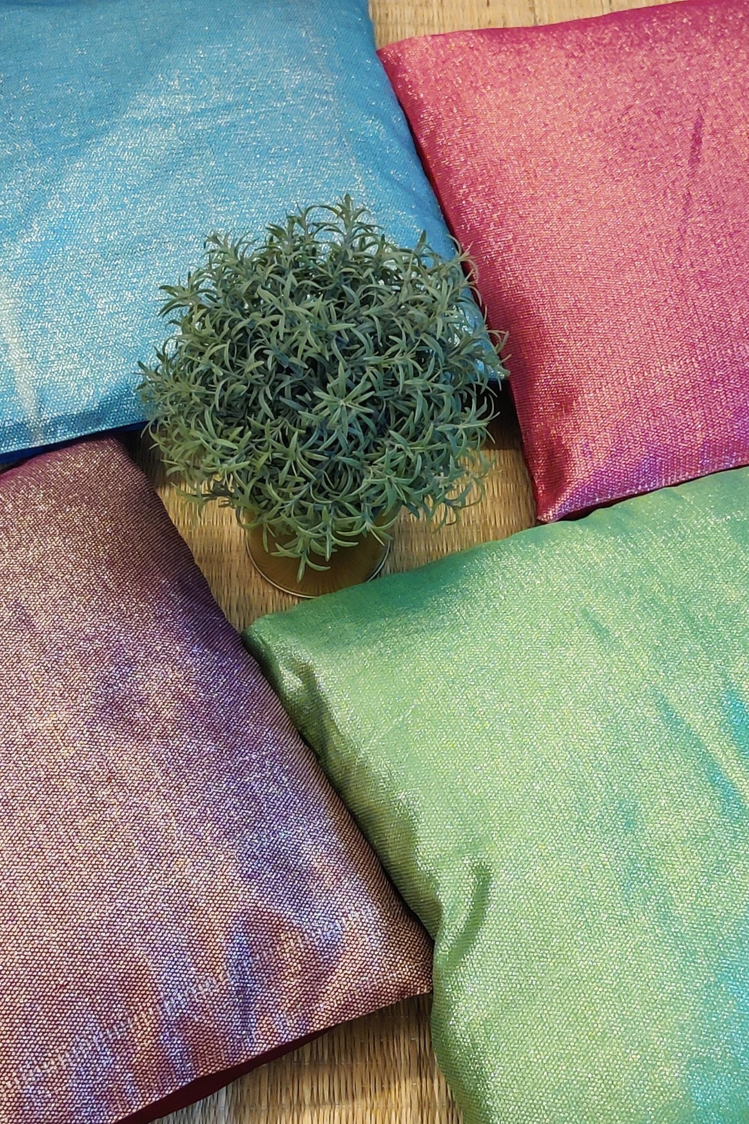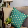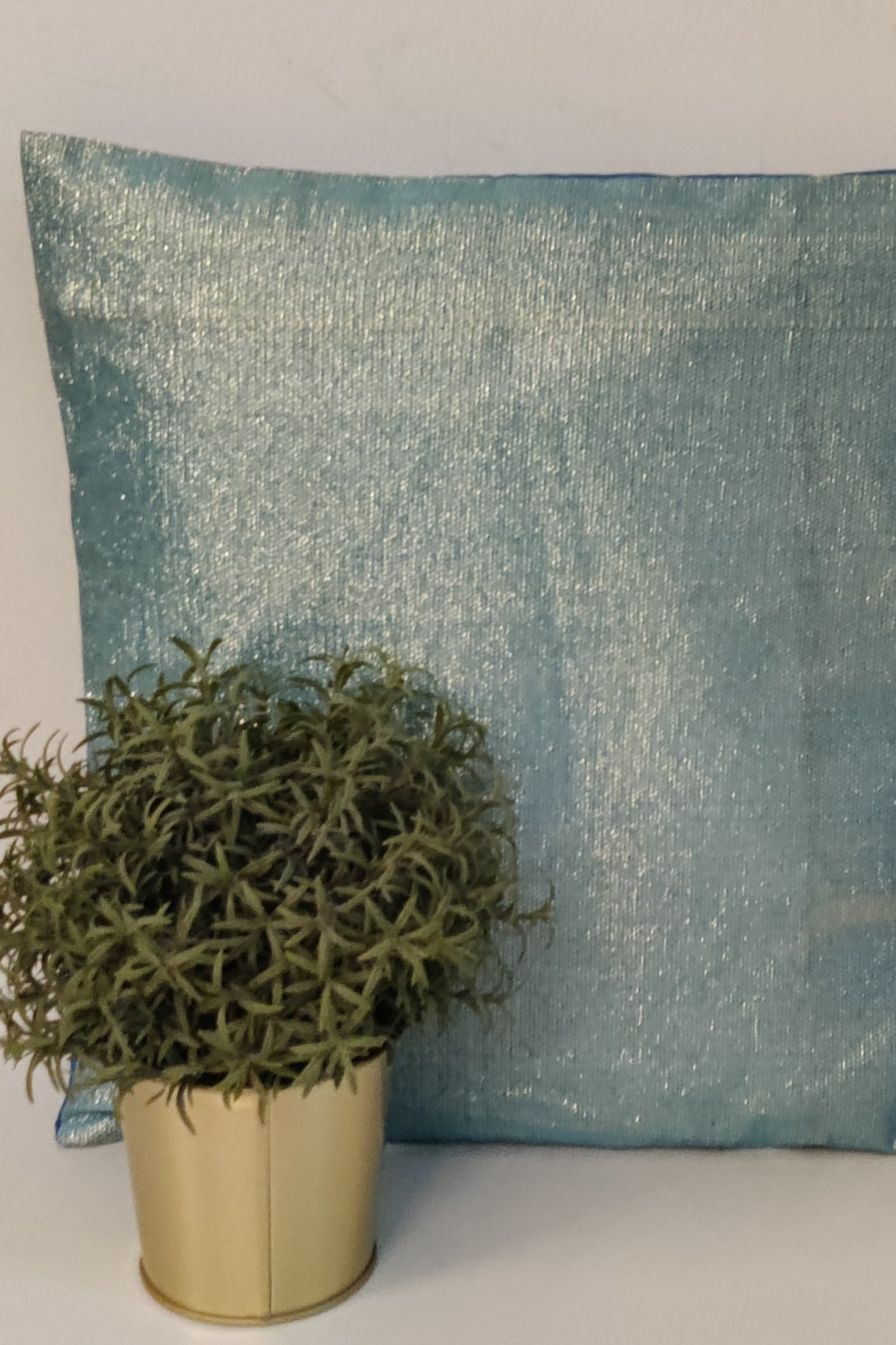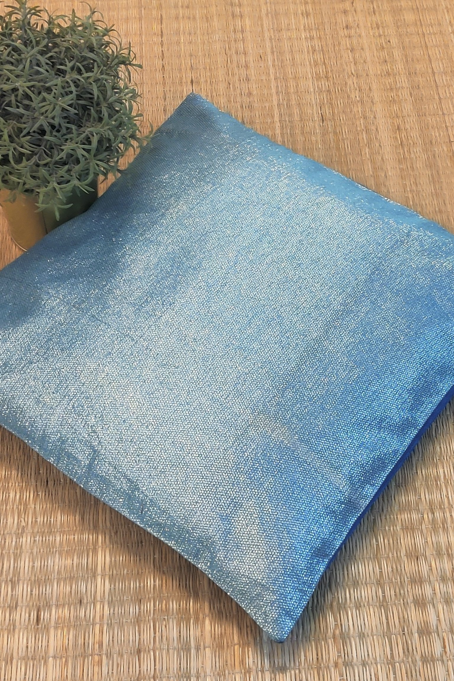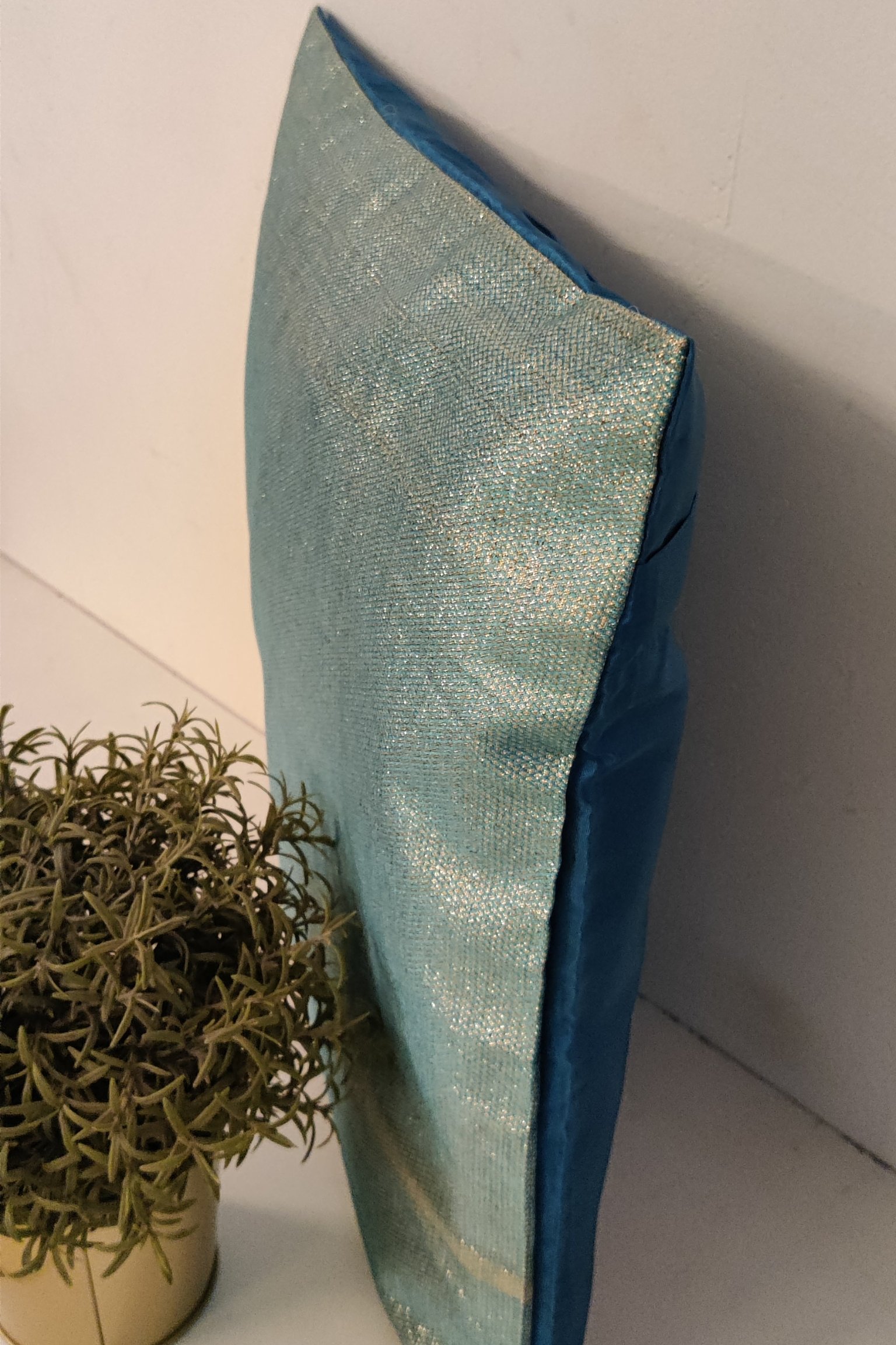Cozy Cushion: Copper Sulphate Blue Shimmer Banarasi Silk Cushion Cover 16″ X 16″