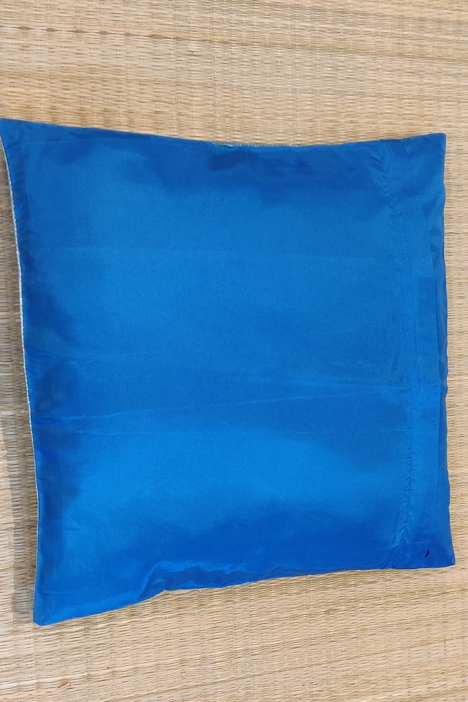 Add a touch of opulence to your space with this plain Banarasi silk cushion cover in a striking copper sulphate blue shade. Its shimmering texture exudes elegance, while the plain blue half pattu back ensures a refined finish. Perfect for infusing a luxurious vibe into any corner of your home, this cushion cover is a timeless statement piece.
