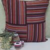 This sophisticated cushion cover features a dull blue digital printed fabric adorned with dark blue swirls, white kairi (mango) motifs outlined in black, and delicate floral prints in blue and maroon. A thin maroon piping detail enhances its refined look, while the back is made of plain blue cotton for a seamless finish.