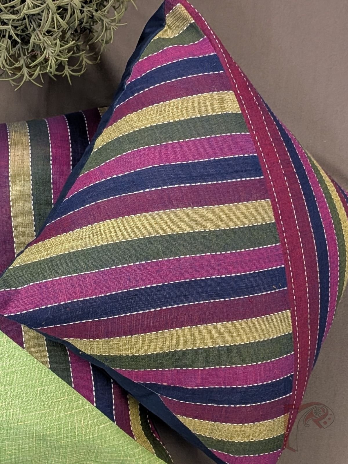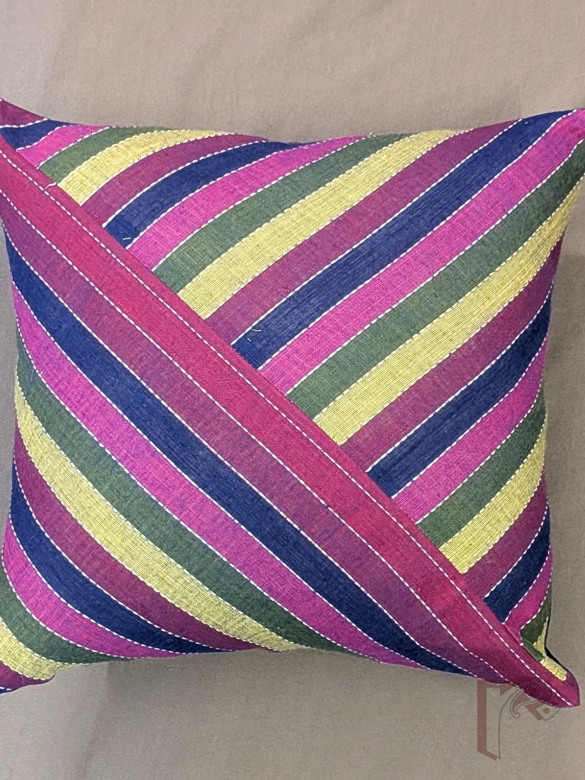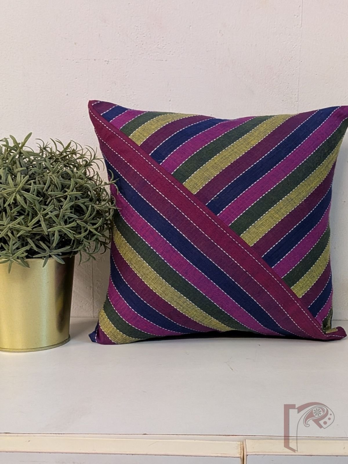 Cozy Cushion: Multicolour Striped South Cotton Handloom Triangle Pattern Cushion Cover 12″ x 12″