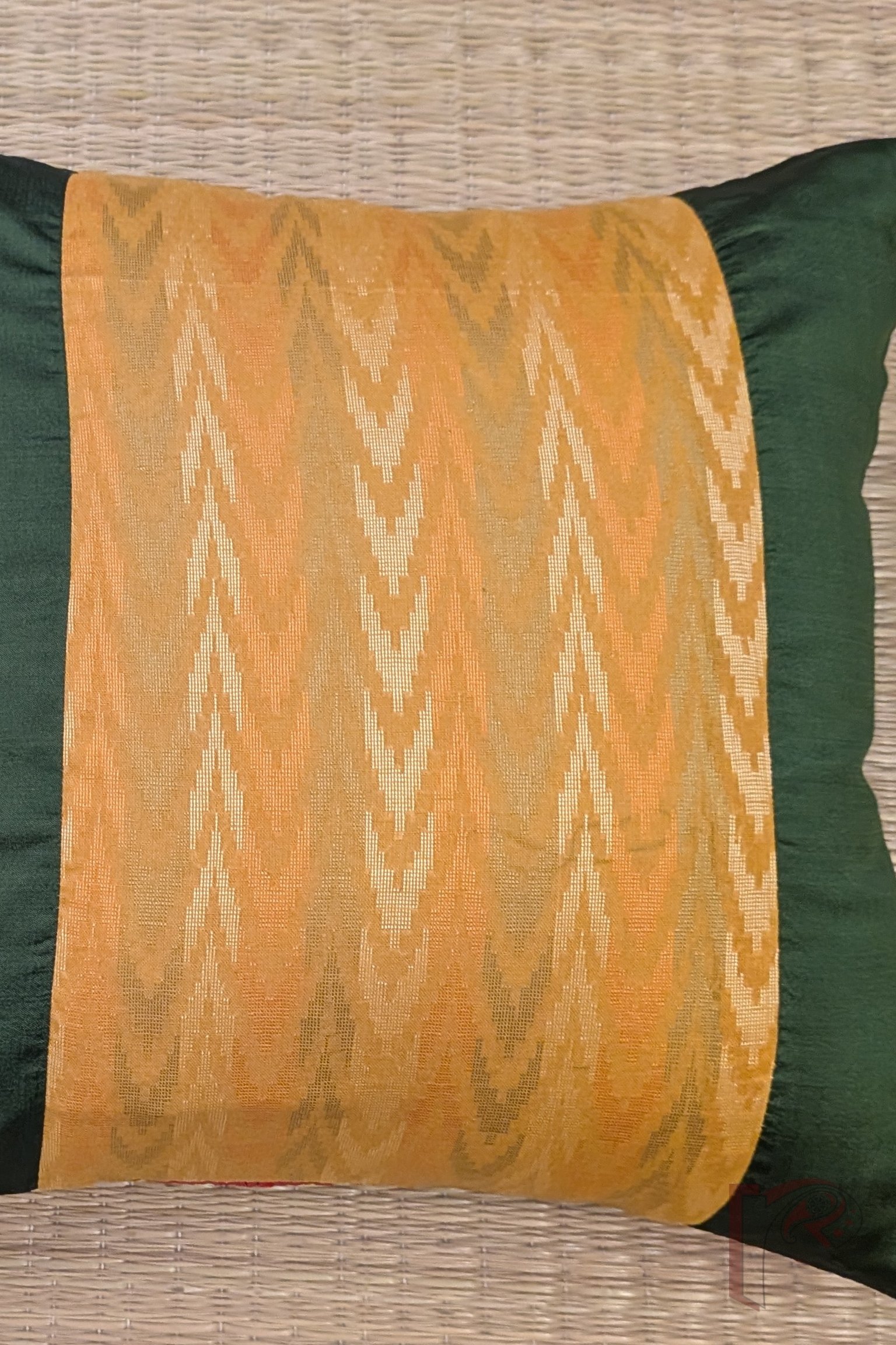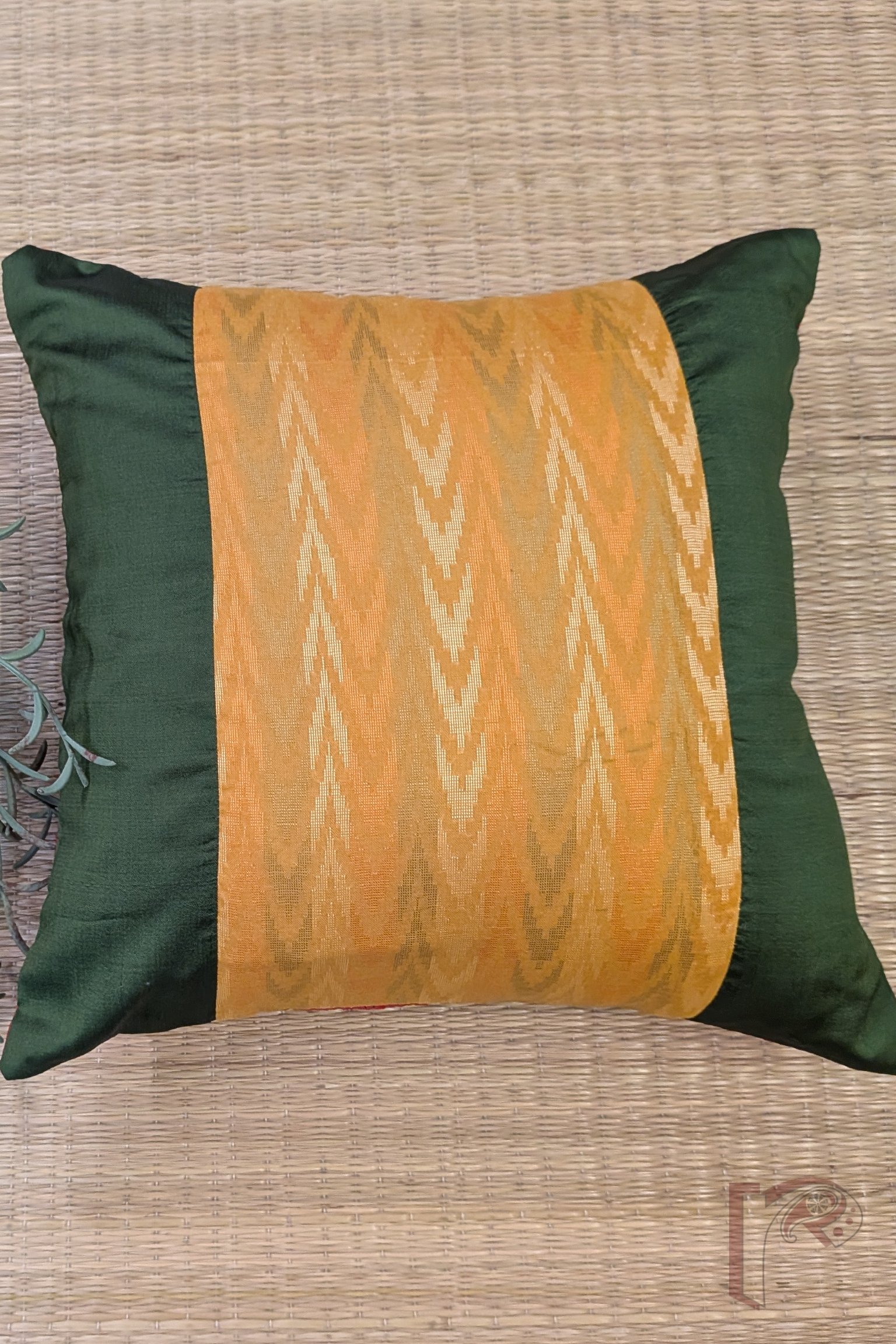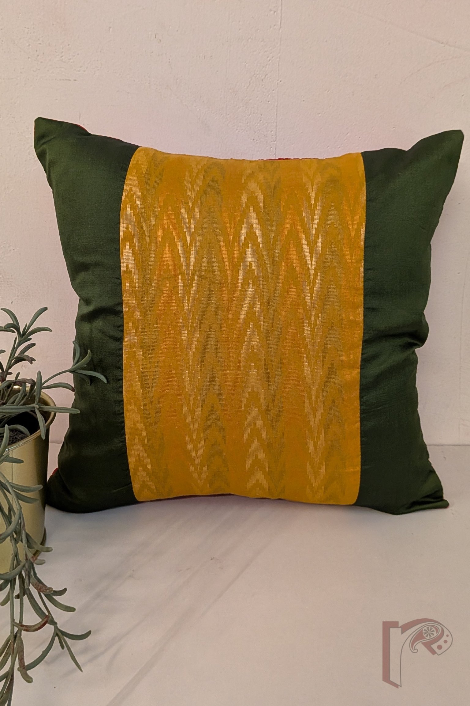Cozy Cushion – Olive Green and Mustard Cotton Silk Zigzag Weave Panel Cushion Cover 12″ x 12″