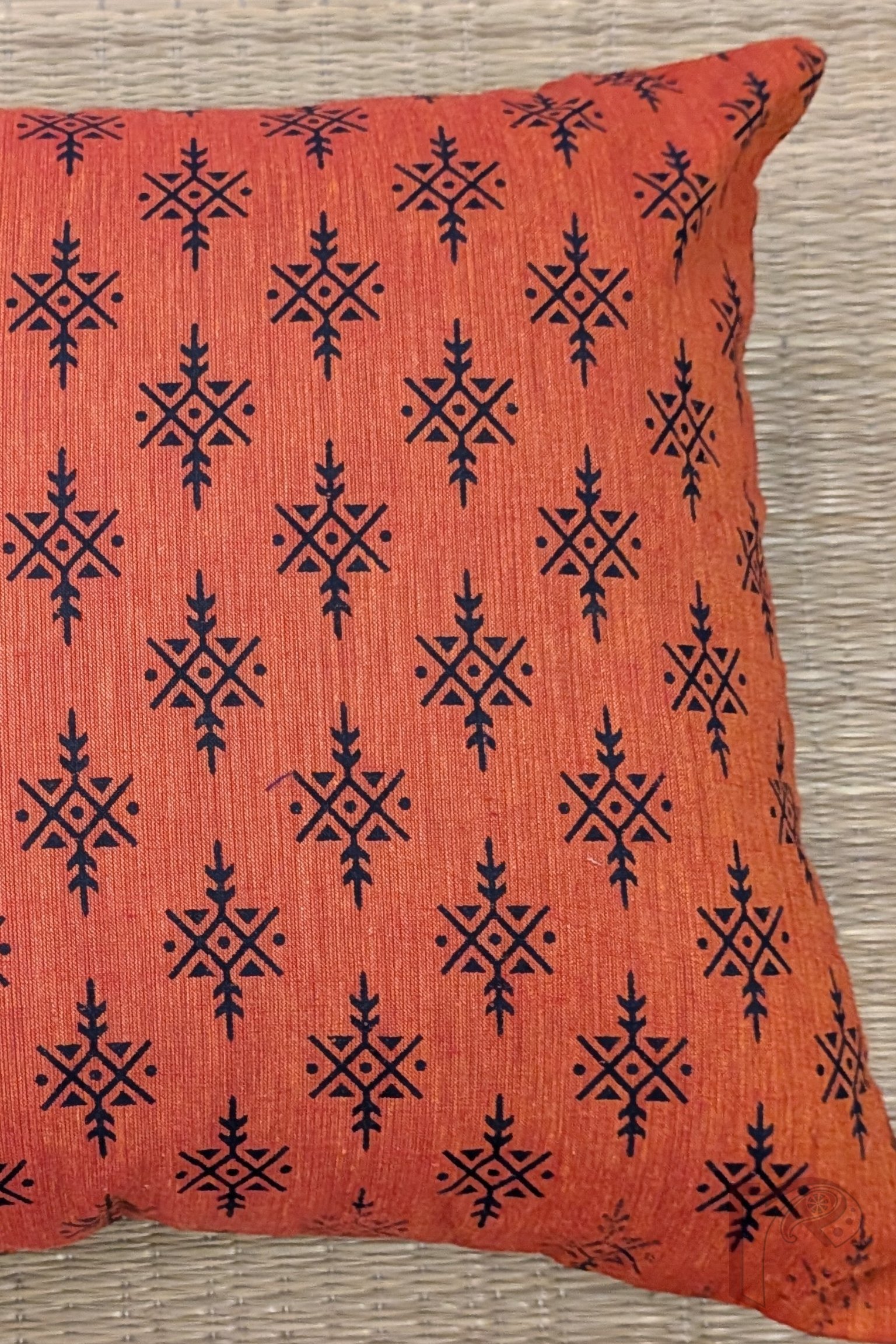 Bright, cheerful, and effortlessly stylish, this Orange South Cotton Cushion Cover features tiny blue printed motifs that add a hint of playful elegance to your décor. The smooth texture of the south cotton gives it a refined handloom appeal, while the plain royal blue back enhances the overall contrast beautifully. Crafted from soft, breathable cotton, this cushion cover combines comfort with traditional craftsmanship, making it a perfect accent for both modern and ethnic interiors. Its minimal yet striking design adds just the right touch of color and artistry to any living space.