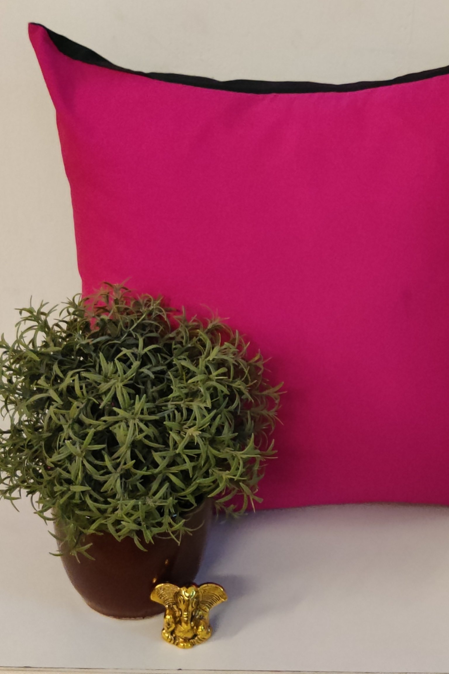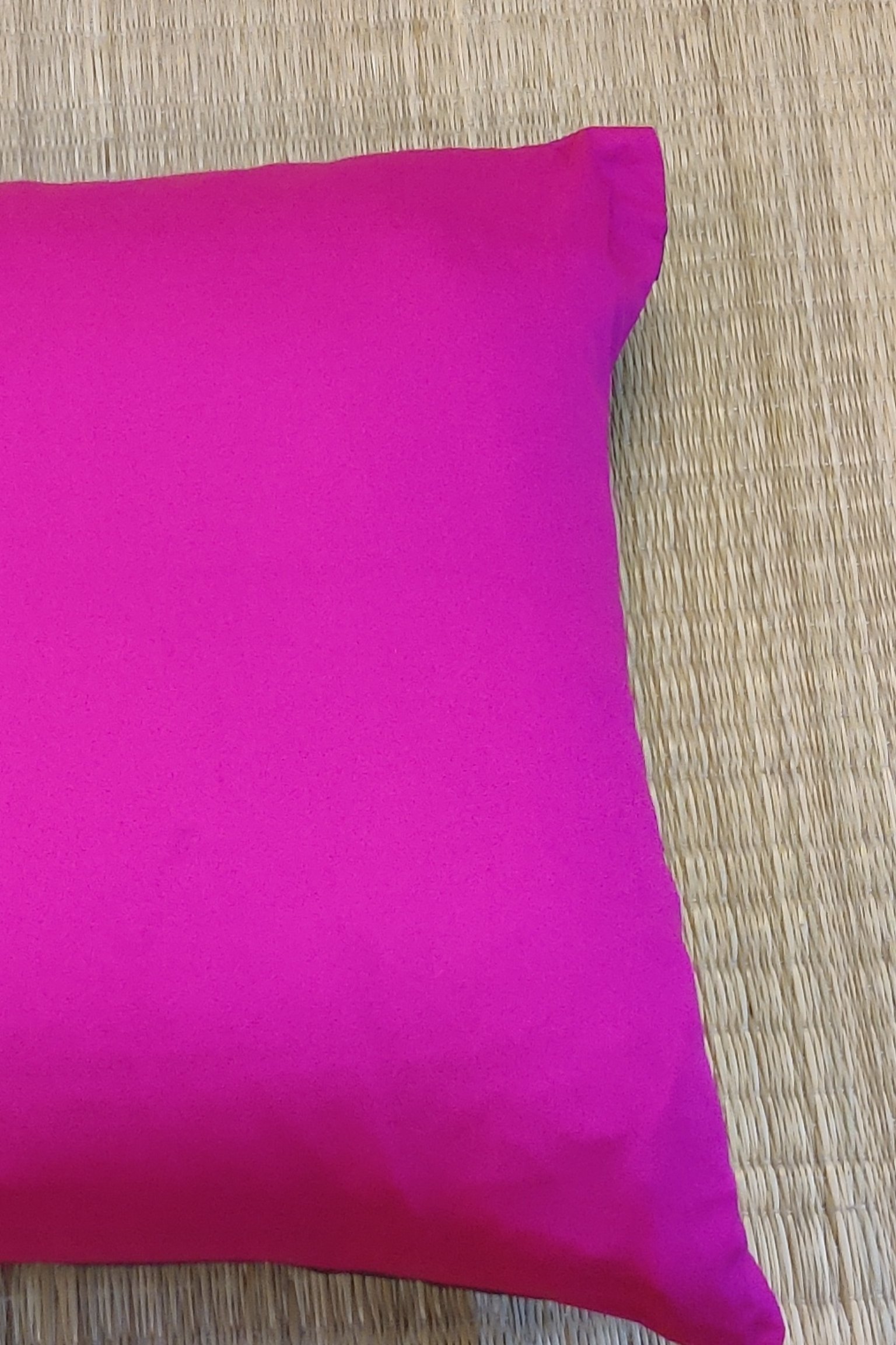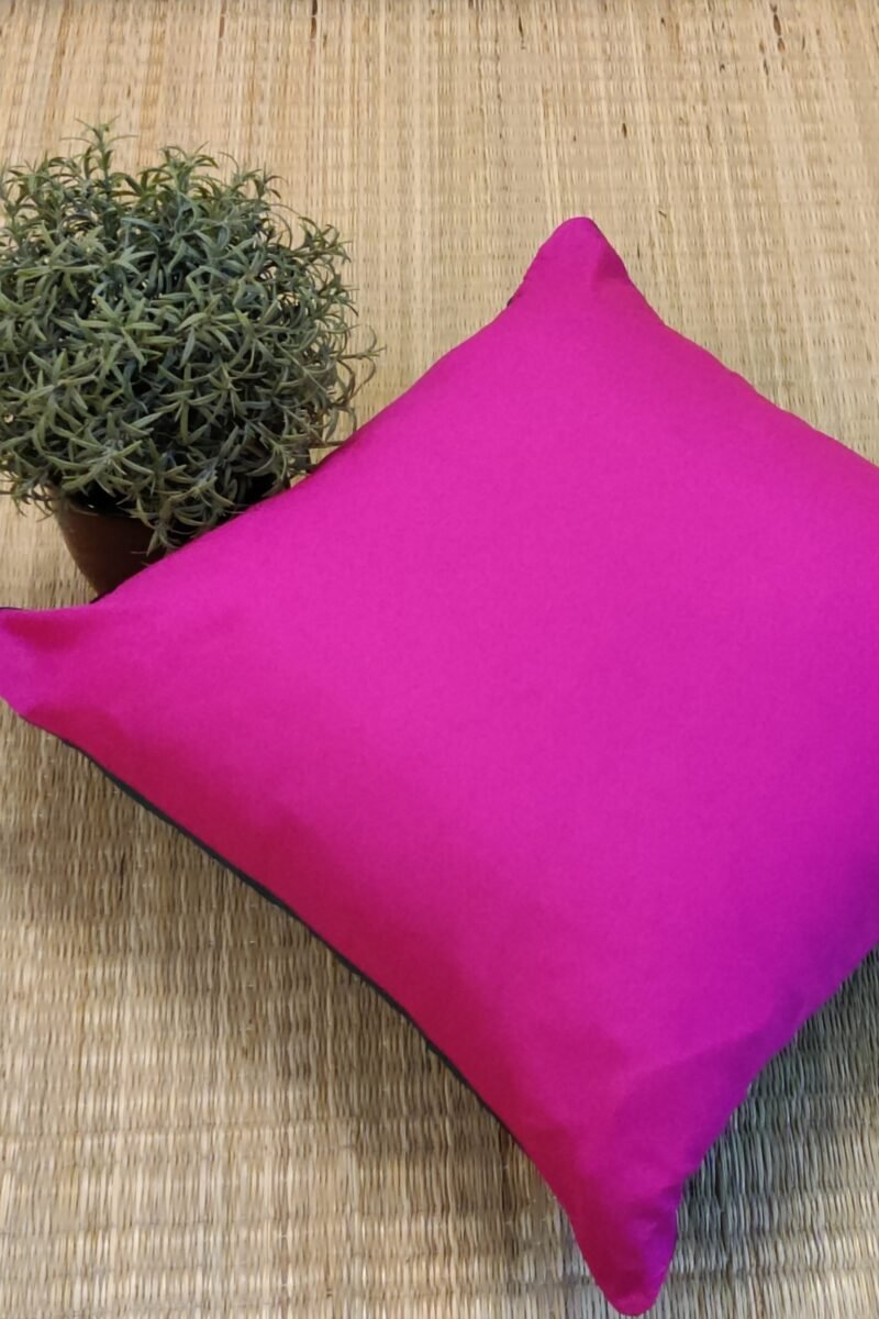 Cozy Cushion: Plain Hot Pink and Green Reversible Silk Pattu Cushion Cover 16″ X 16″