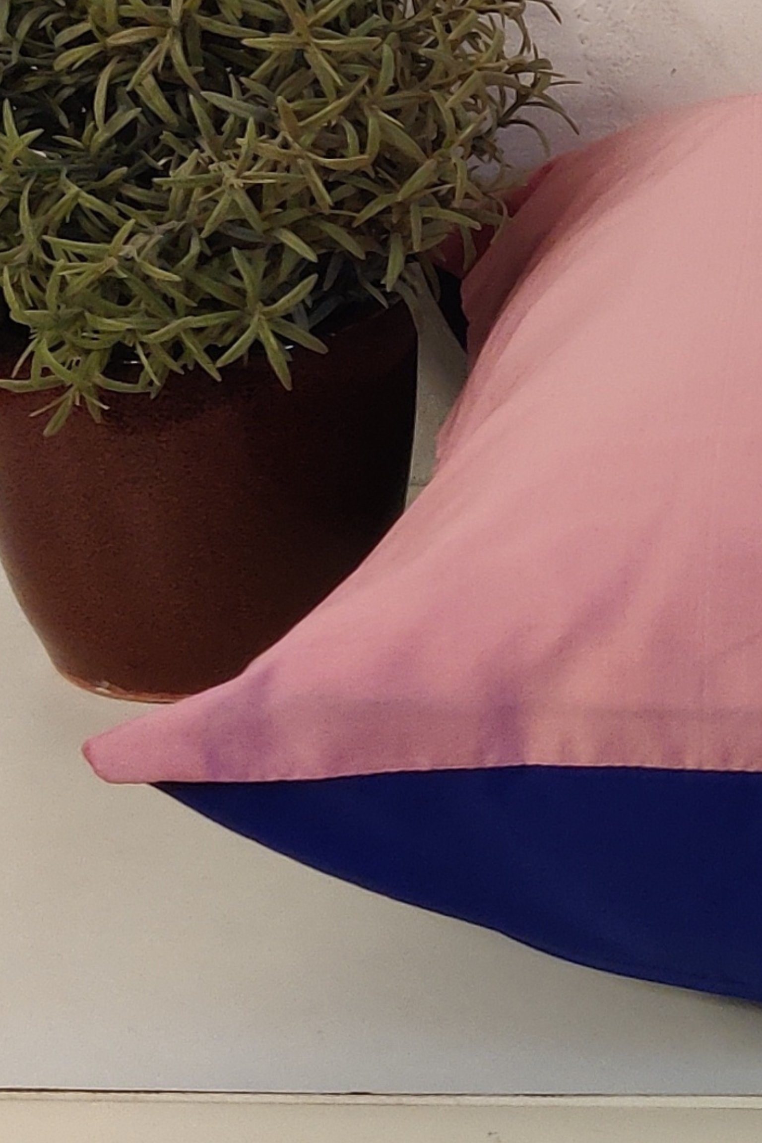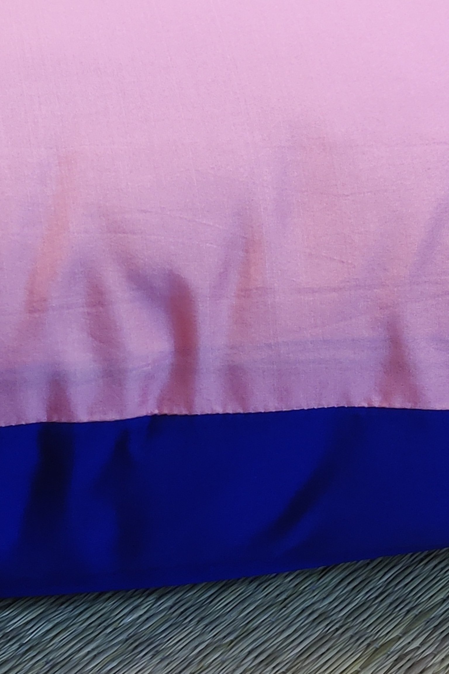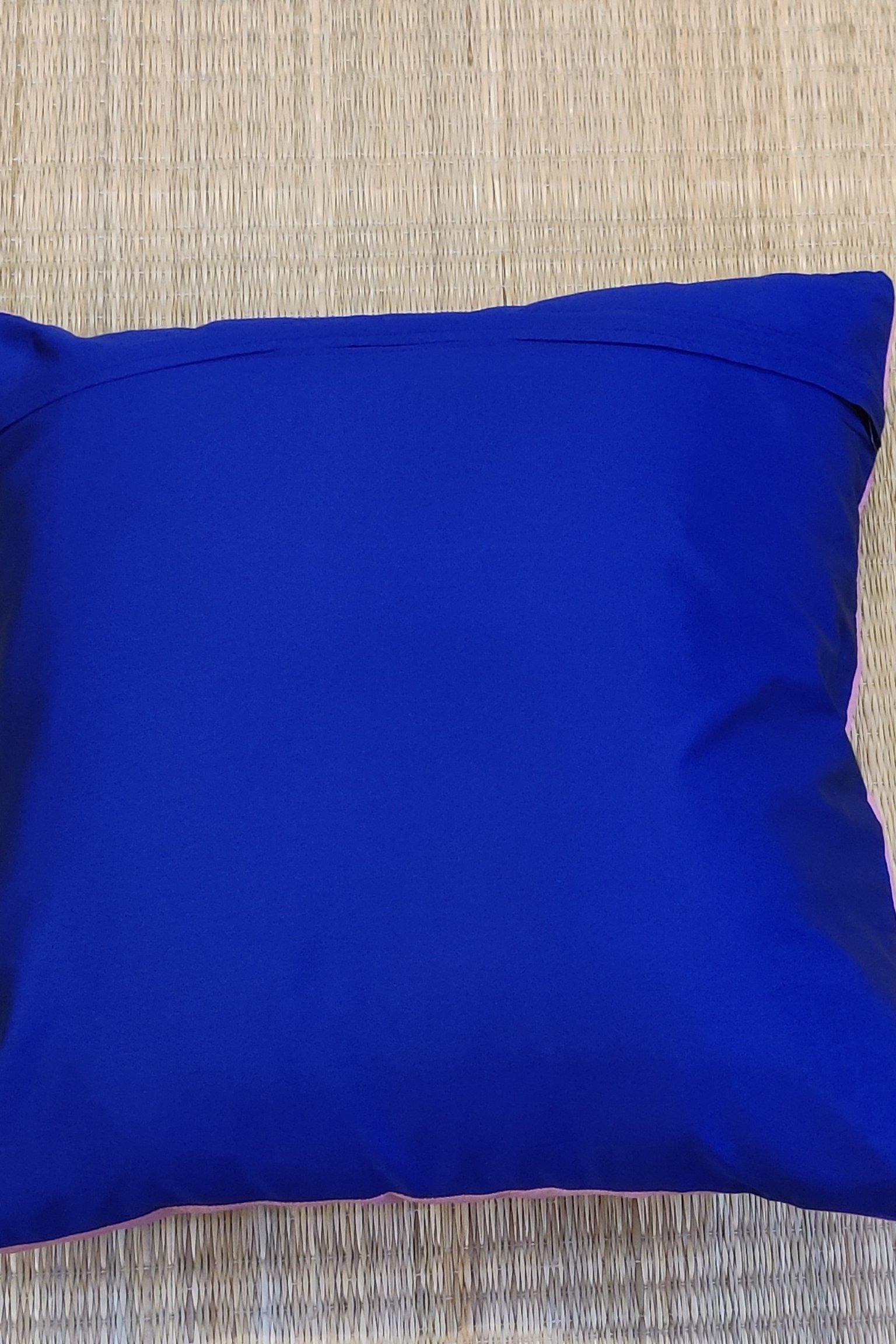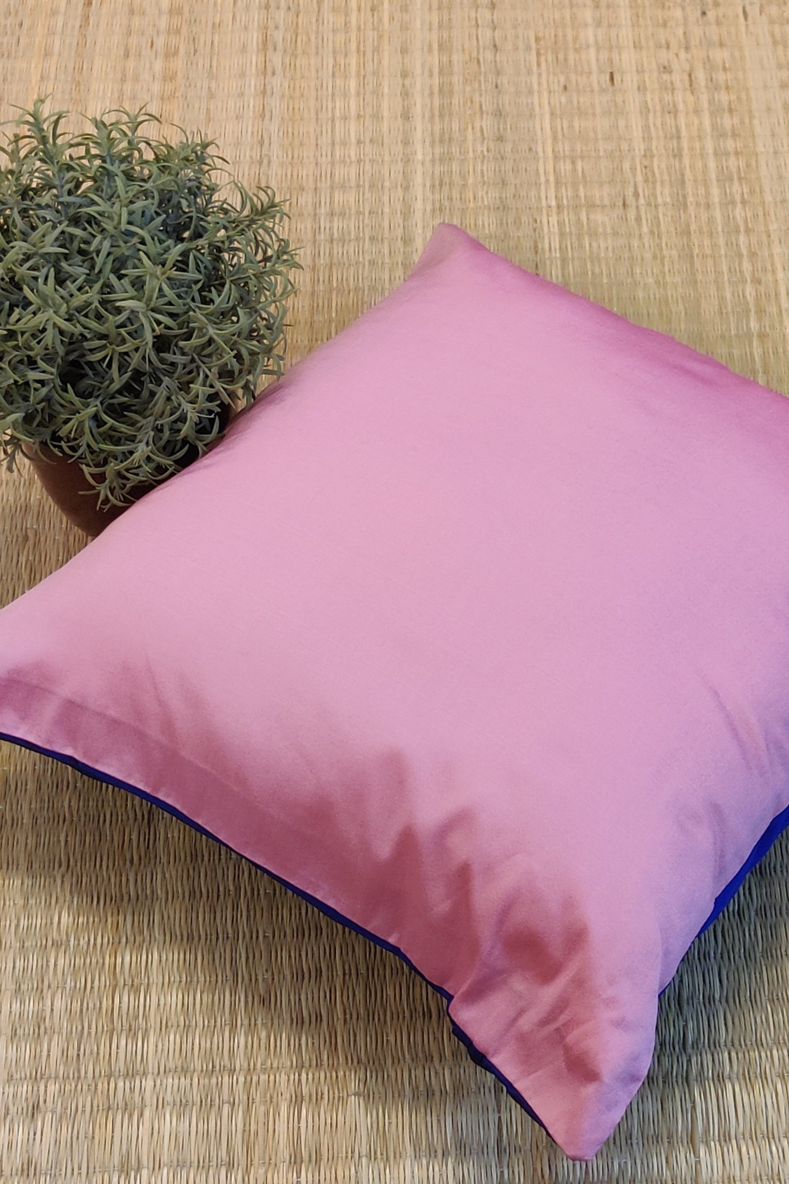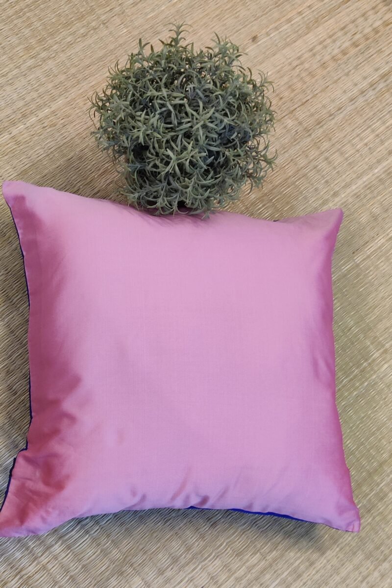 Cozy Cushion: Plain Pink and Blue Reversible Silk Pattu Cushion Cover 16″ X 16″
