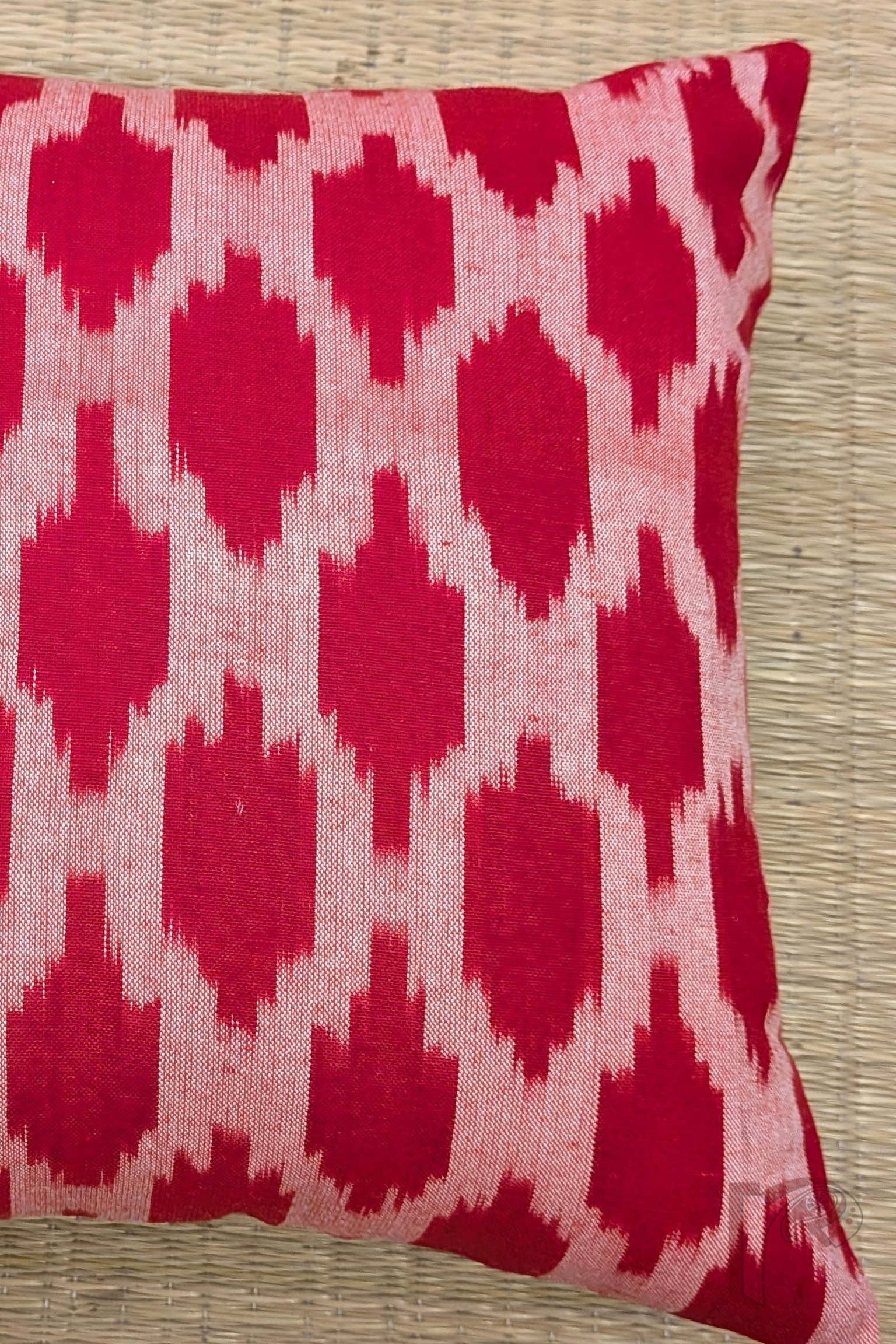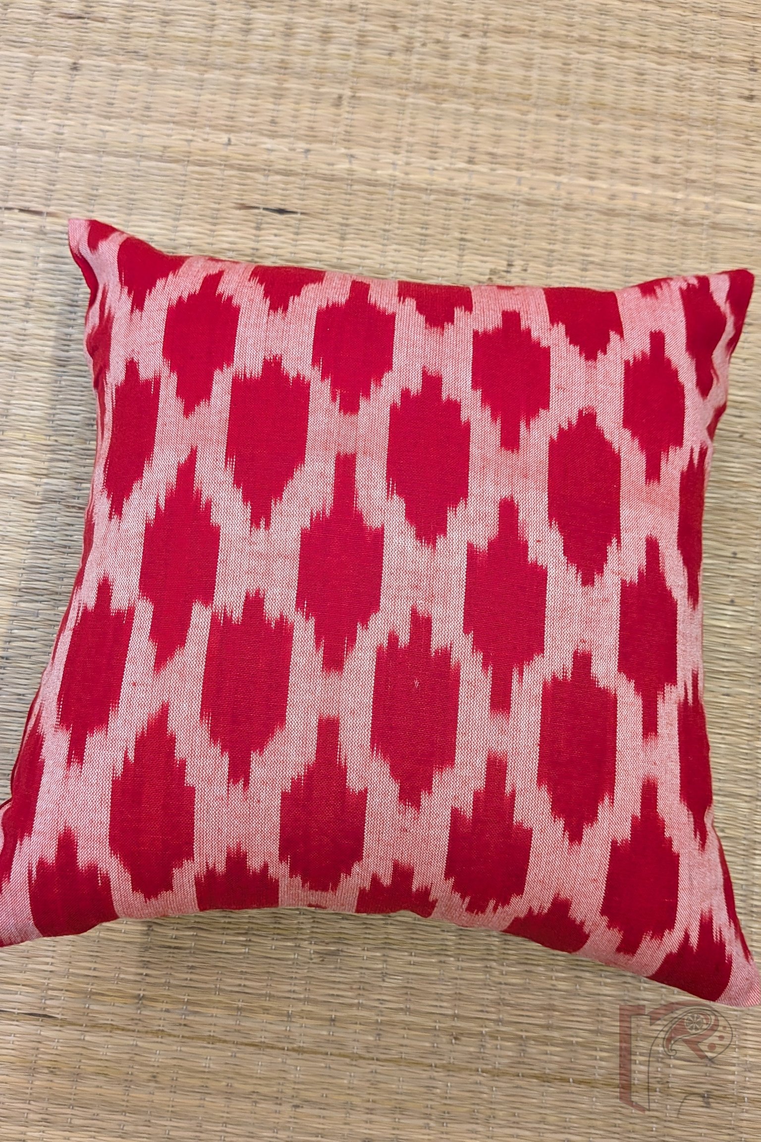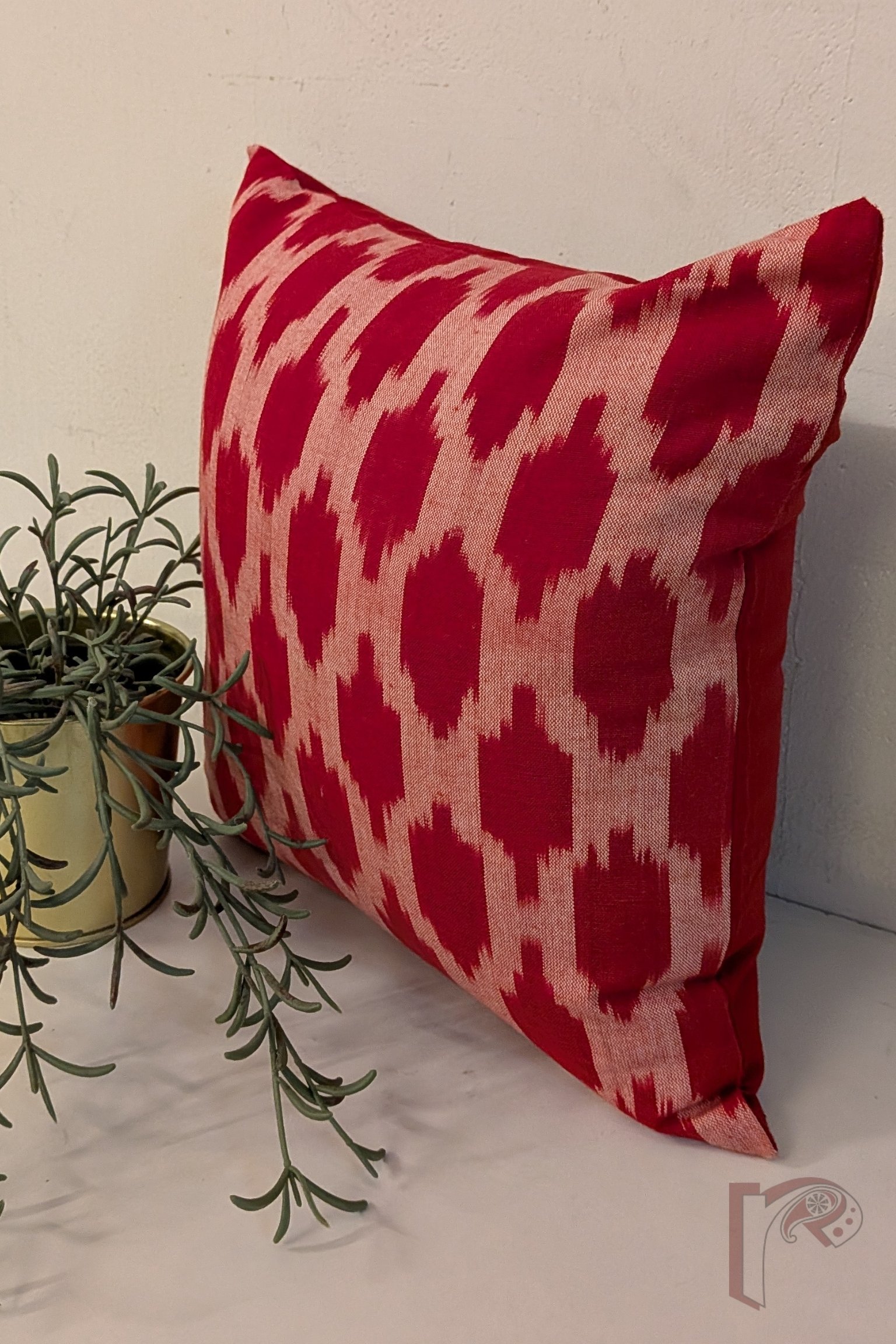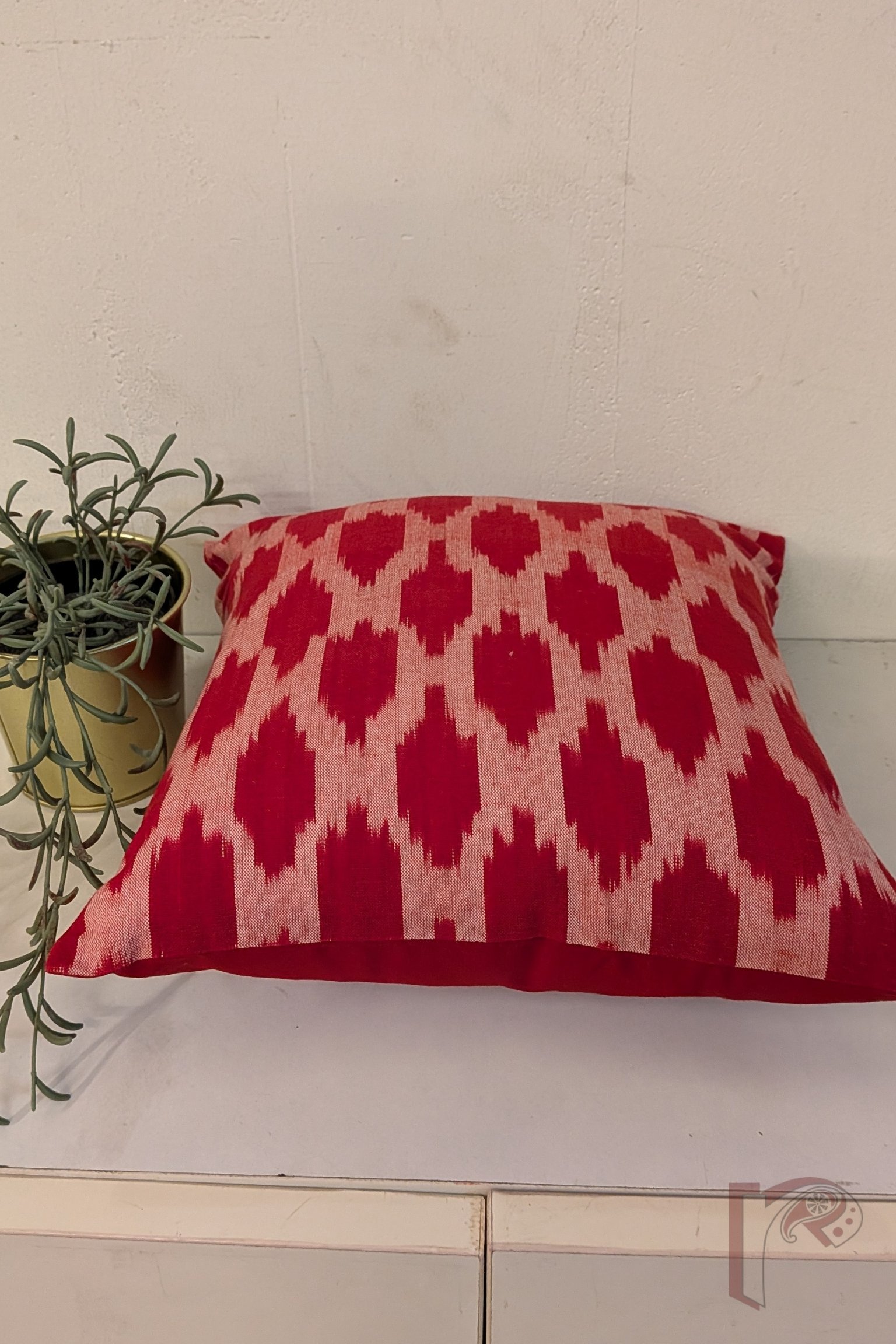 Cozy Cushion: Red and White Mercerized Soft Ikat Cotton Cushion Cover 12″ x 12″