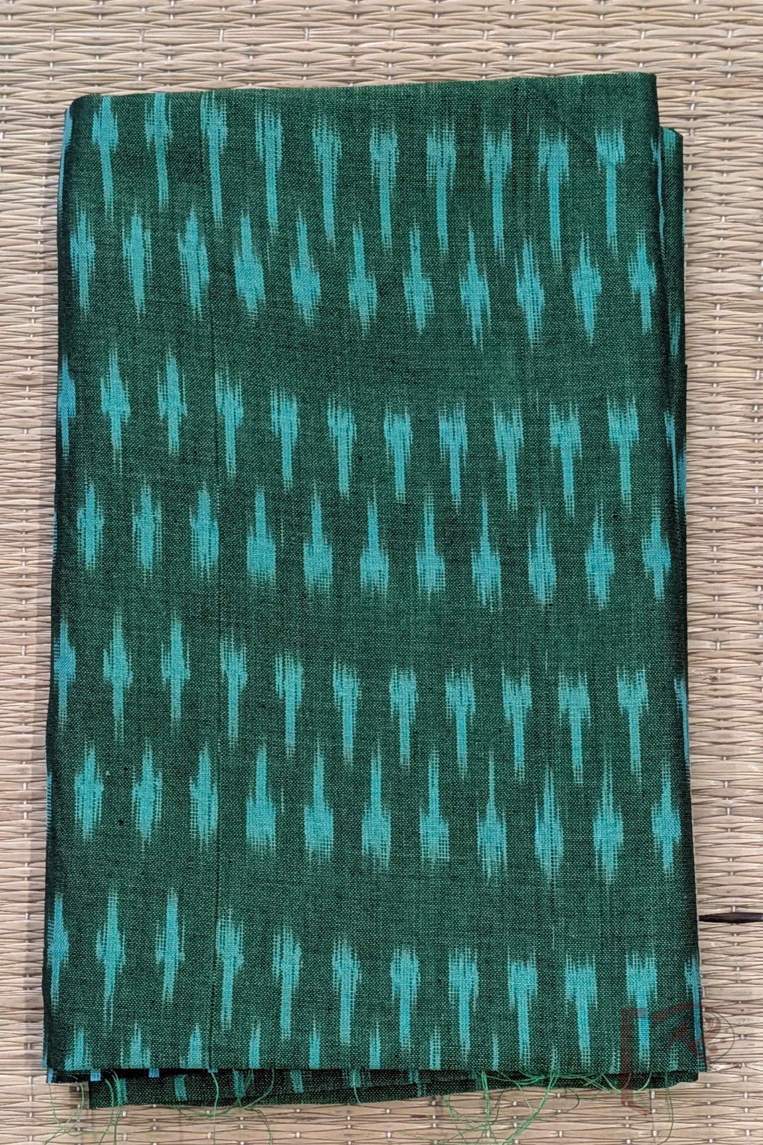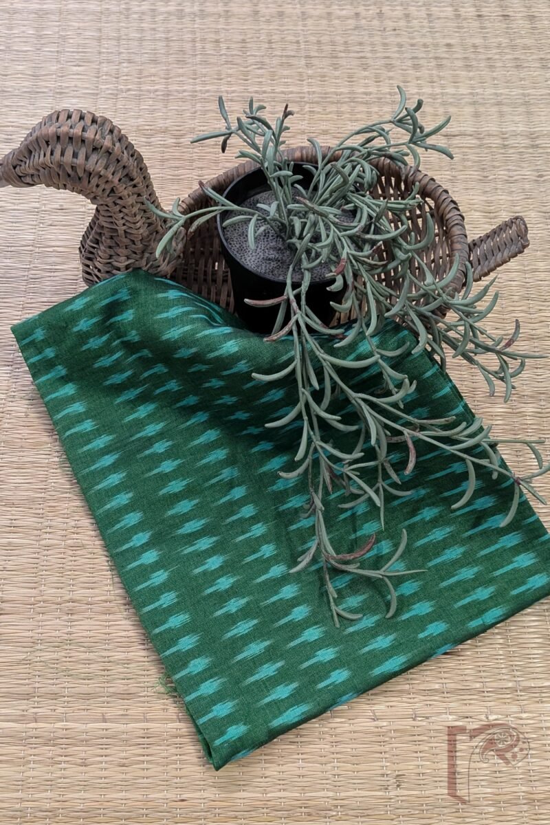 Dark Green and Light Green Mini Motif Mercerized Cotton Ikkat Blouse Piece
