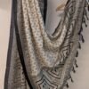Dreamy Drapes – Cream & Black Spade Leaf Motif Banana Fiber Dupatta with Dotted Geometric Borders