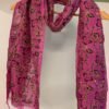 This smart grey tussar silk stole features two distinct styles of leaf stem motifs, hand printed in black to create visual layering and interest. The motifs are further enhanced with Kantha stitch embroidery in red and yellow, adding warmth and handcrafted character to the neutral base. The silk’s organic texture ensures a soft yet structured drape, making this stole both versatile and refined. A perfect choice for understated styling, it reflects quiet elegance with detailed hand artistry.