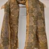 Dreamy Drapes – Mehendi Green Tussar Silk All-Over Floral Hand Printed Kantha Stole with Black Stitch