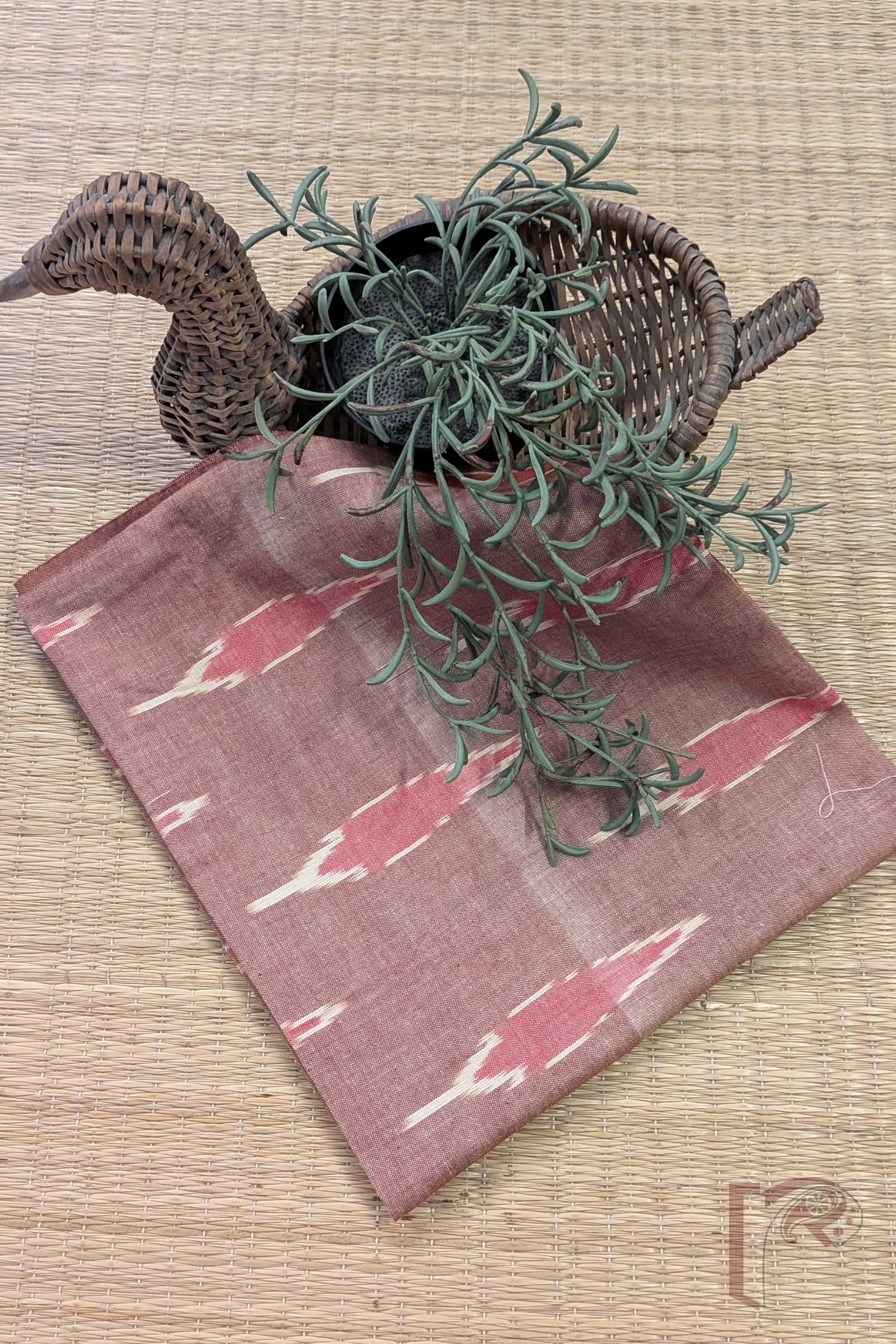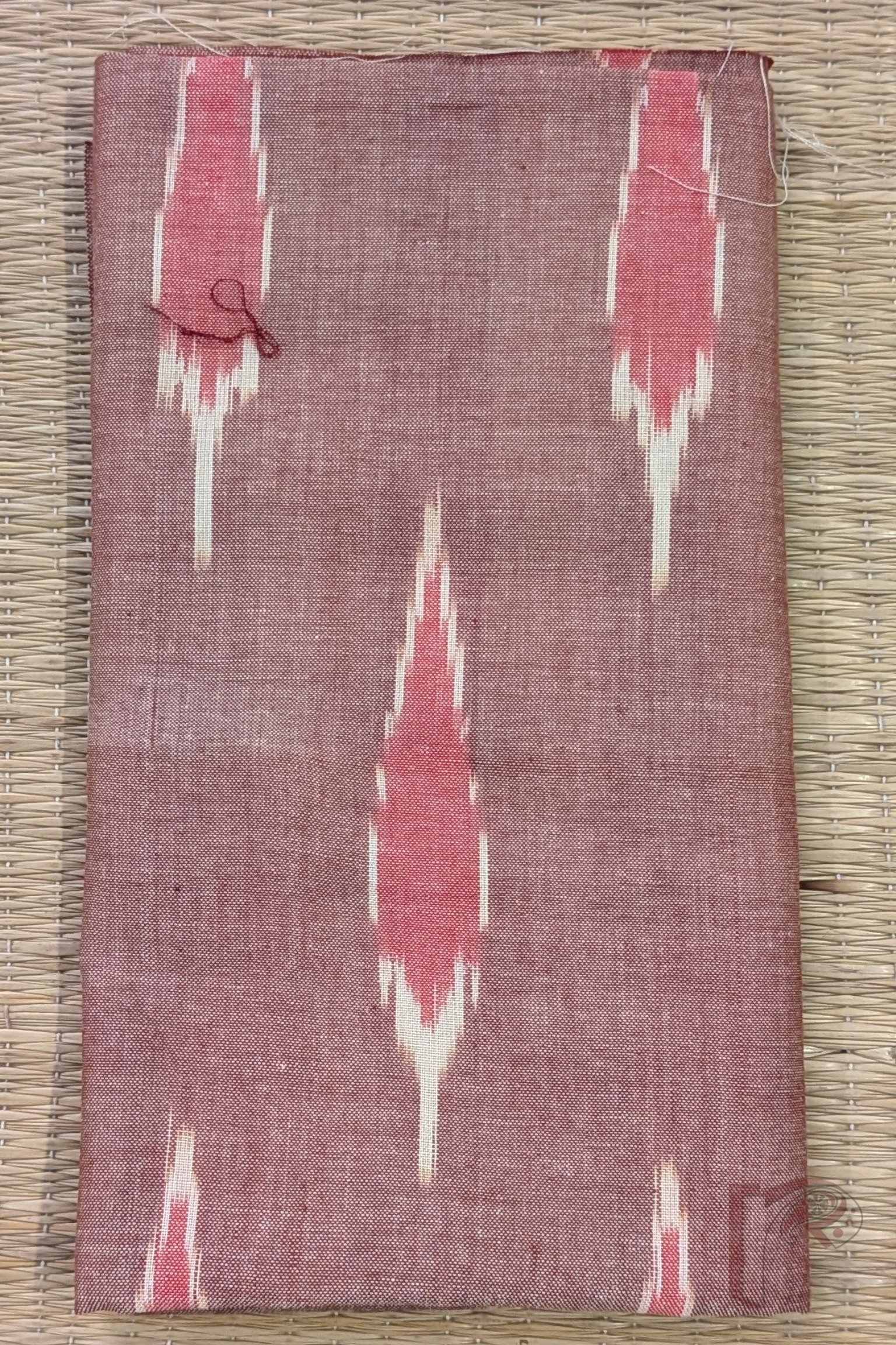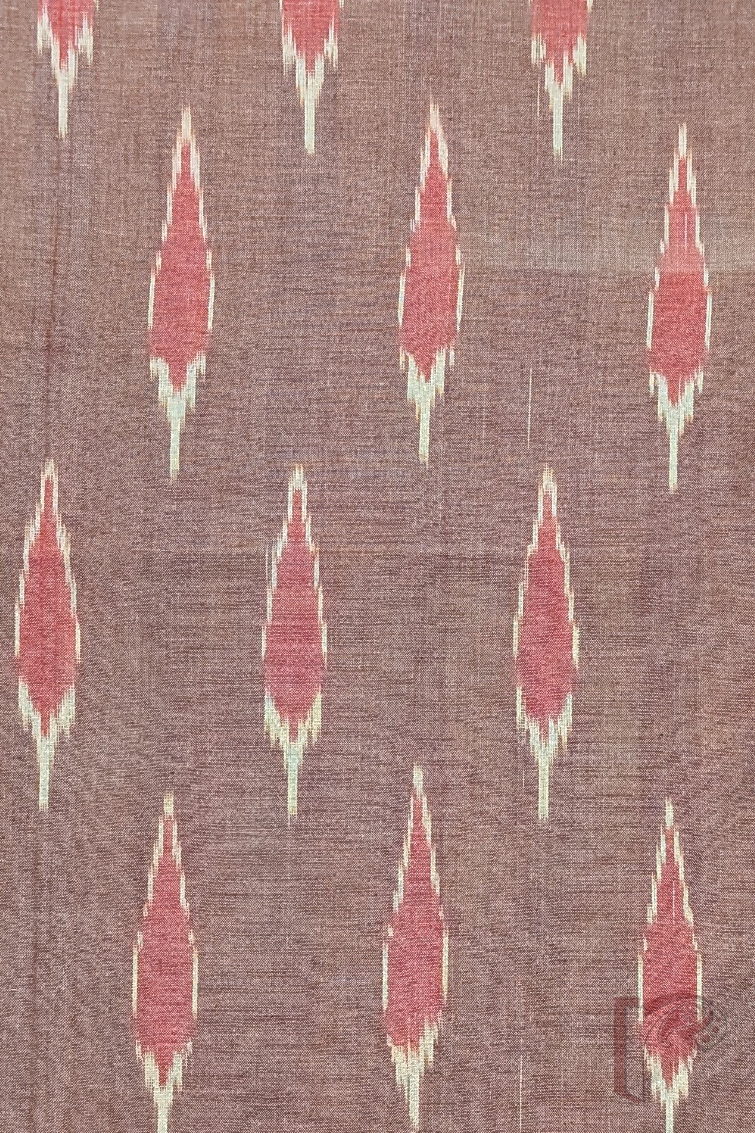 Earthy and graceful, this dull brown Ikkat cotton blouse piece showcases long leaf motifs woven in white and gently filled with muted pink tones. The organic flow of the leaf pattern brings a sense of nature-inspired elegance to the fabric, while the soft pink infill adds warmth and subtle contrast. The grounded brown base enhances the overall richness of the design. Crafted from high-quality breathable cotton, it offers lasting comfort along with visual depth. The detailed leaf weaving and harmonious earthy palette make this blouse piece a refined option for understated festive styling.