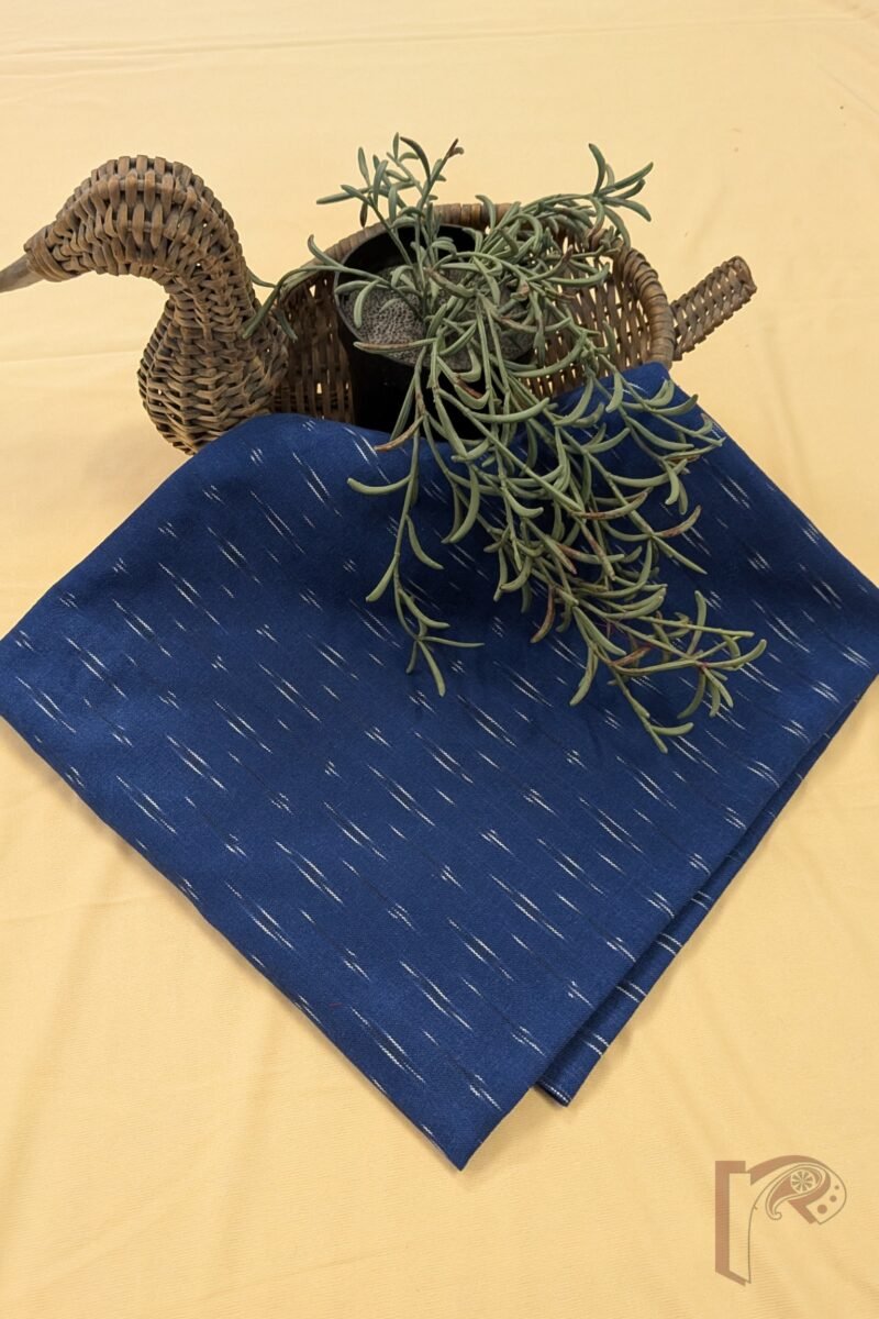Vibrant and contemporary, this electric blue Ikkat cotton blouse piece features fine white dashes thoughtfully aligned to create an equal-sign inspired pattern. The rhythmic arrangement adds a modern geometric appeal while preserving traditional weaving techniques. Made from premium breathable cotton, it offers softness and structure for tailored elegance. The bold blue base paired with crisp white detailing makes it an eye-catching choice for festive and fusion ensembles alike.