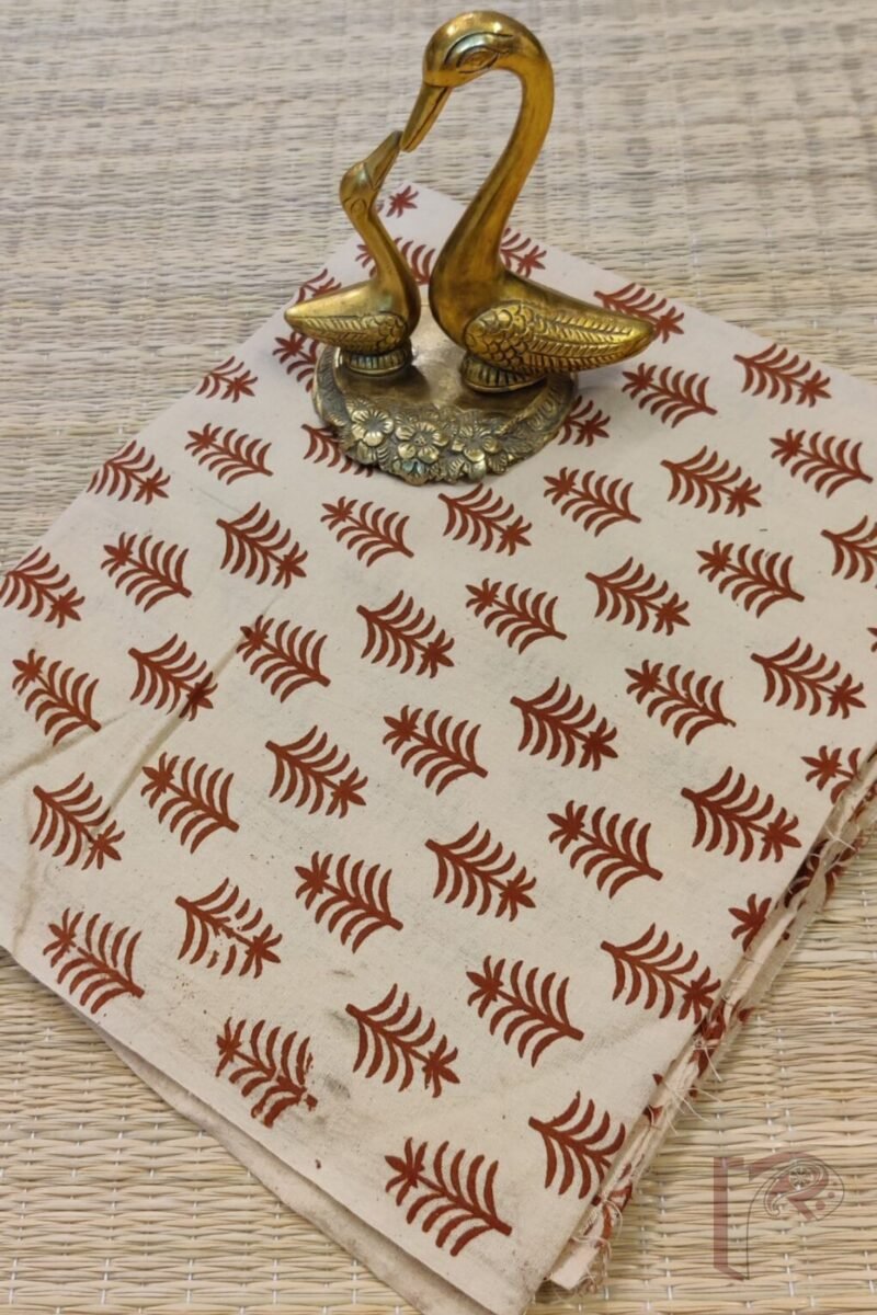 Fawn Cream Cotton with Rust Orange Leaf Bud Print Unstitched Blouse Piece