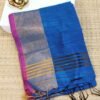 A refreshing blend of elegance and vibrancy, this teal green Gicha handloom saree features a 7-inch golden border at the bottom balanced with a 1-inch teal selvage. The pallu is adorned with symmetrical zari line patterns, creating a timeless finish. The natural sheen of Gicha enhances its rustic charm, while the deep teal shade adds sophistication. No blouse material included, making it versatile to pair with both bold and subtle blouse styles.