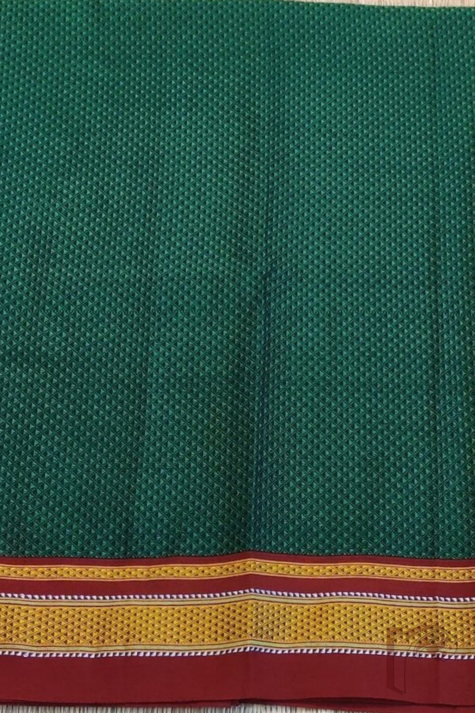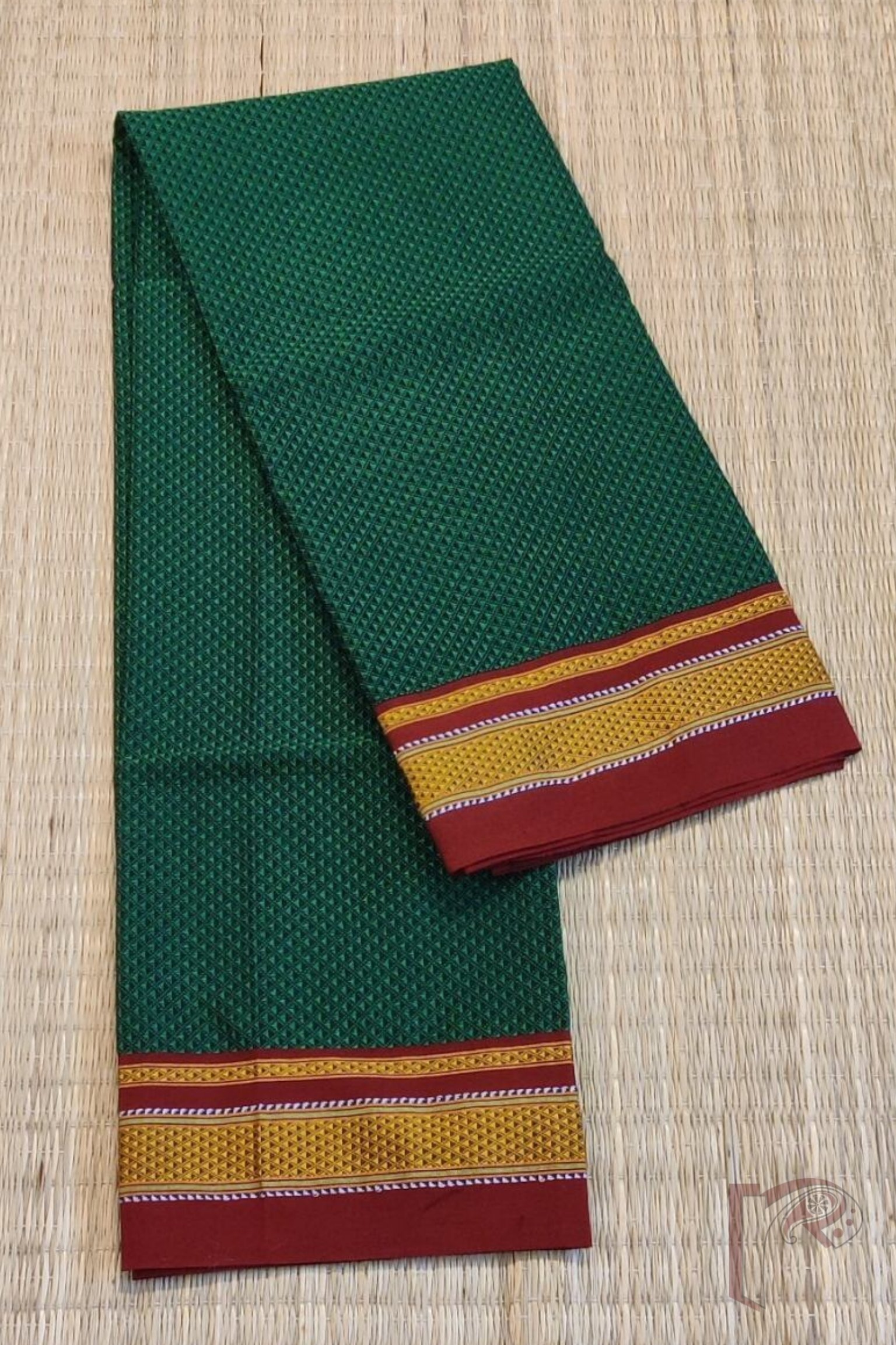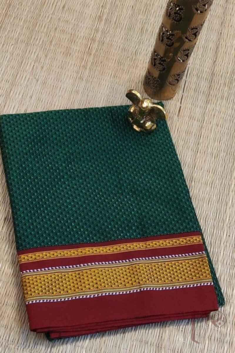 Green and Red Khun Weave Ilkal Blouse Piece with Golden-White Thread Border