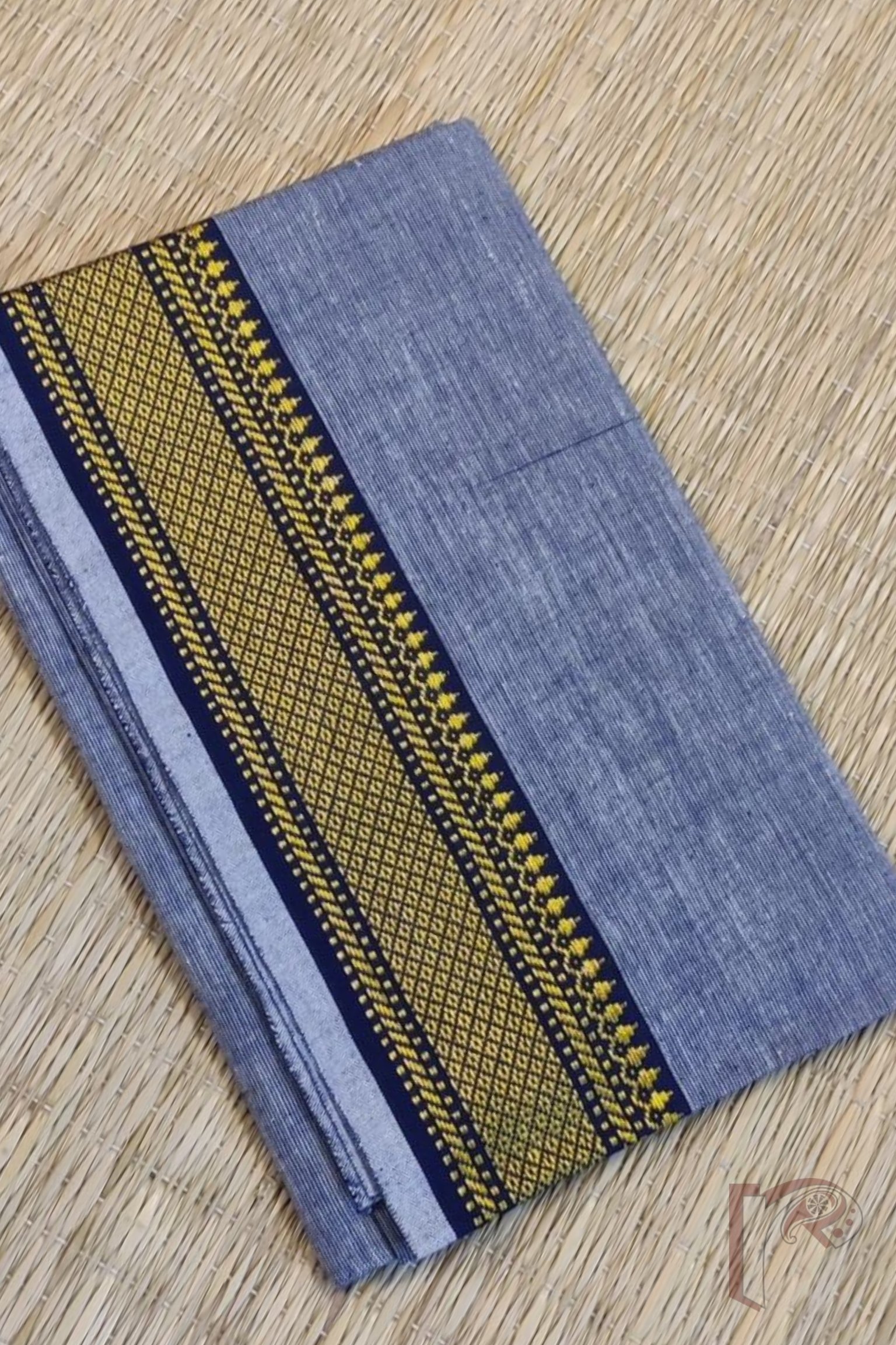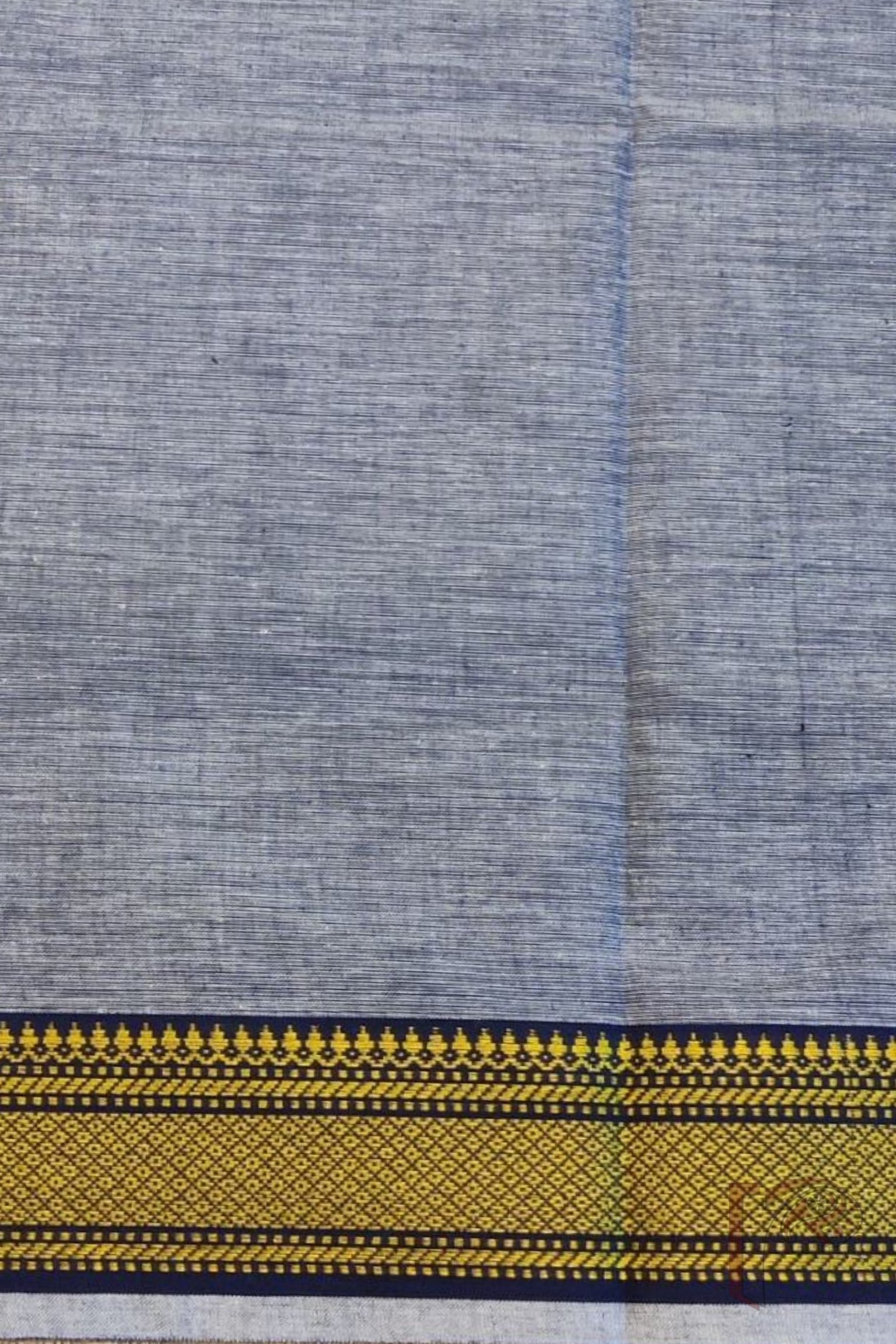 Grey Shaded Mangalgiri Blouse Fabric with Navy Border and Yellow Jaal Pattern