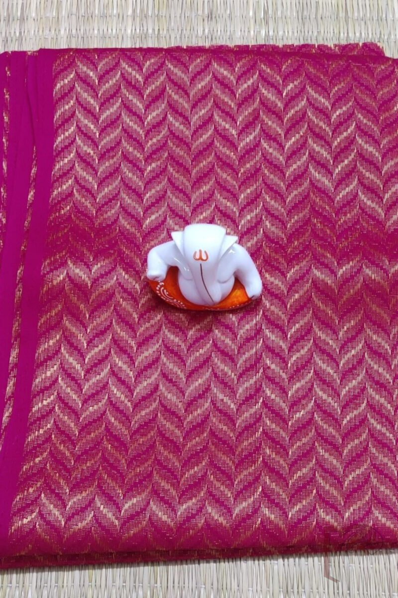 A radiant hot pink cotton base shines with yellow and gold artistic motifs in silk threads. Bold and festive, this piece is ideal for weddings and grand occasions.