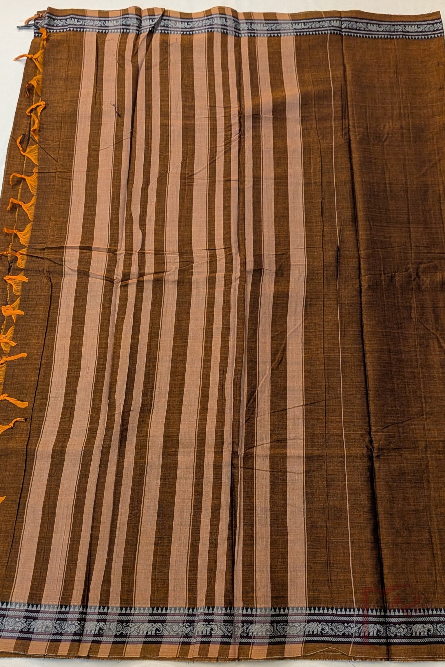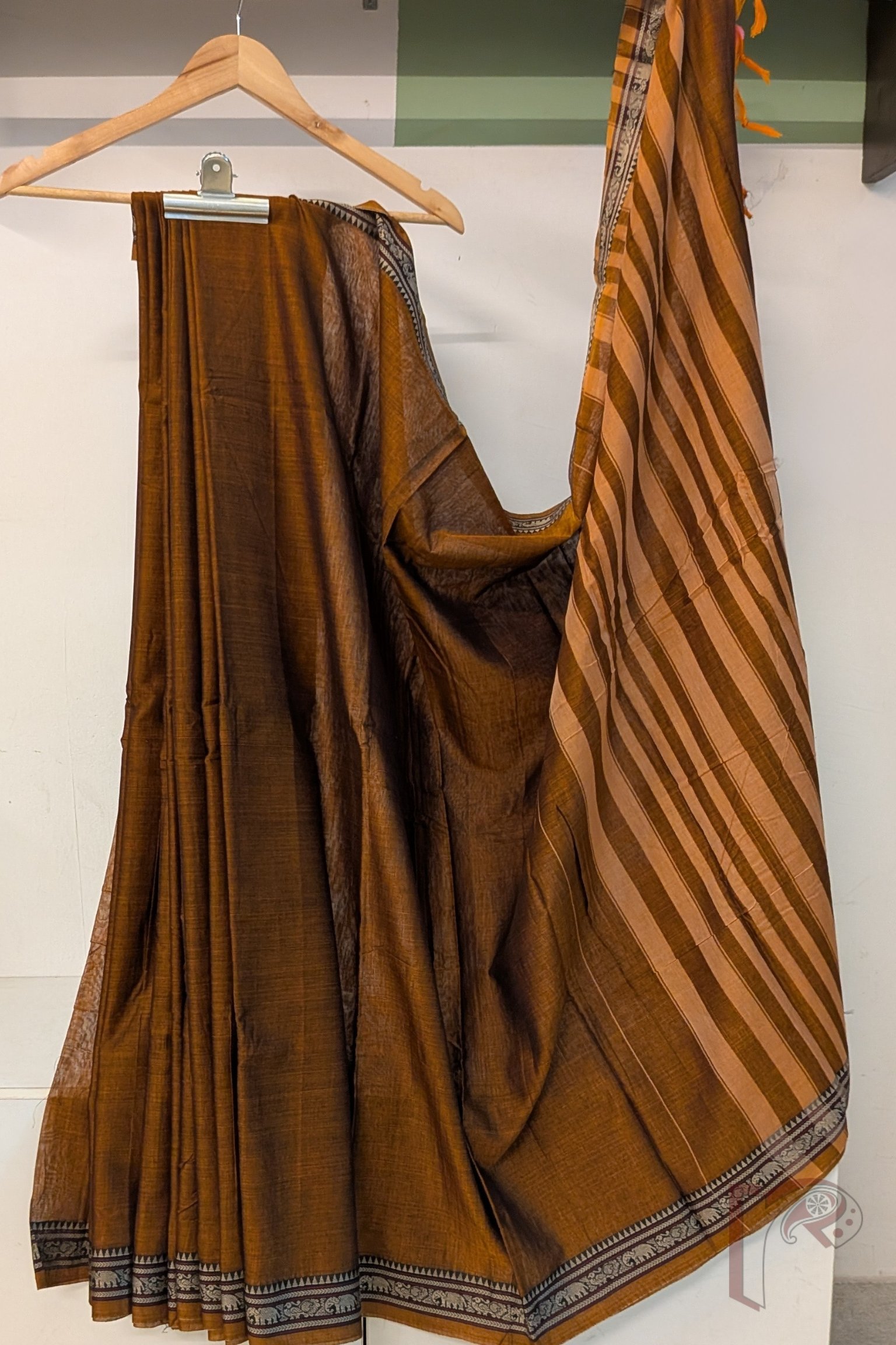 Ilkal Heritage – Dark Mustard Yellow Mercerized Cotton Ilkal Saree with Light Orange Striped Pallu