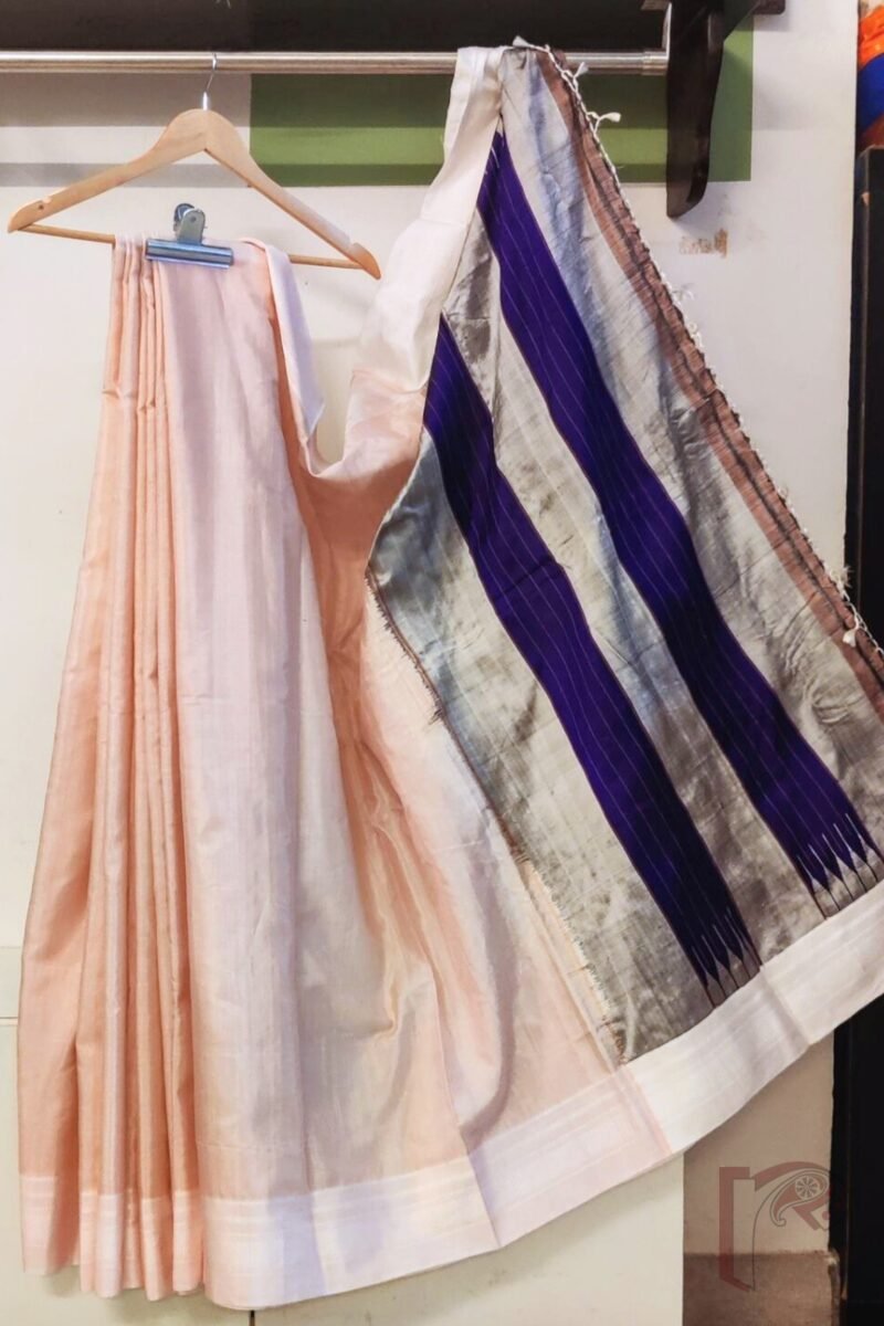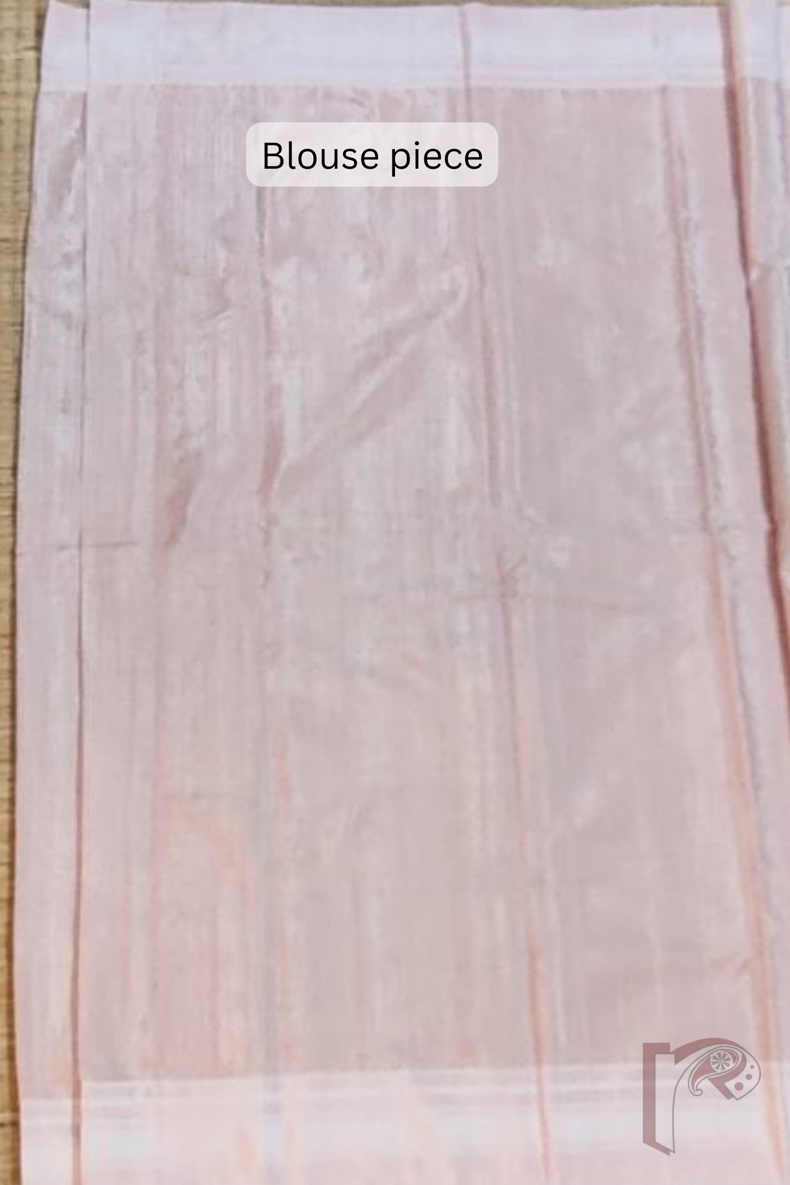 Ilkal Heritage – Light Baby Pink Mercerized Cotton Silk Saree with White Self-Thread Border and Grey-Blue Striped Pallu
