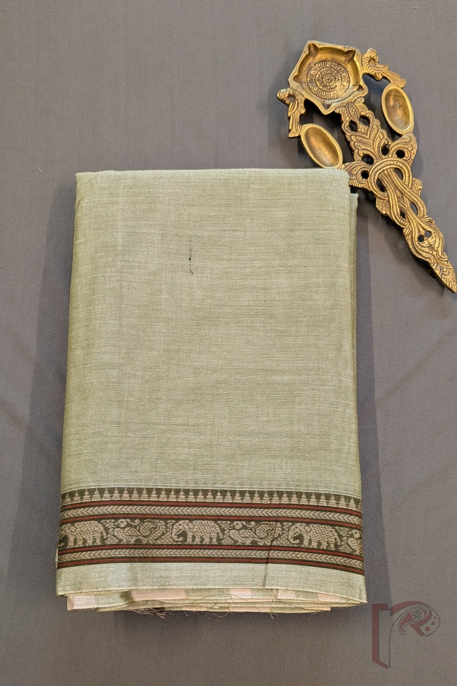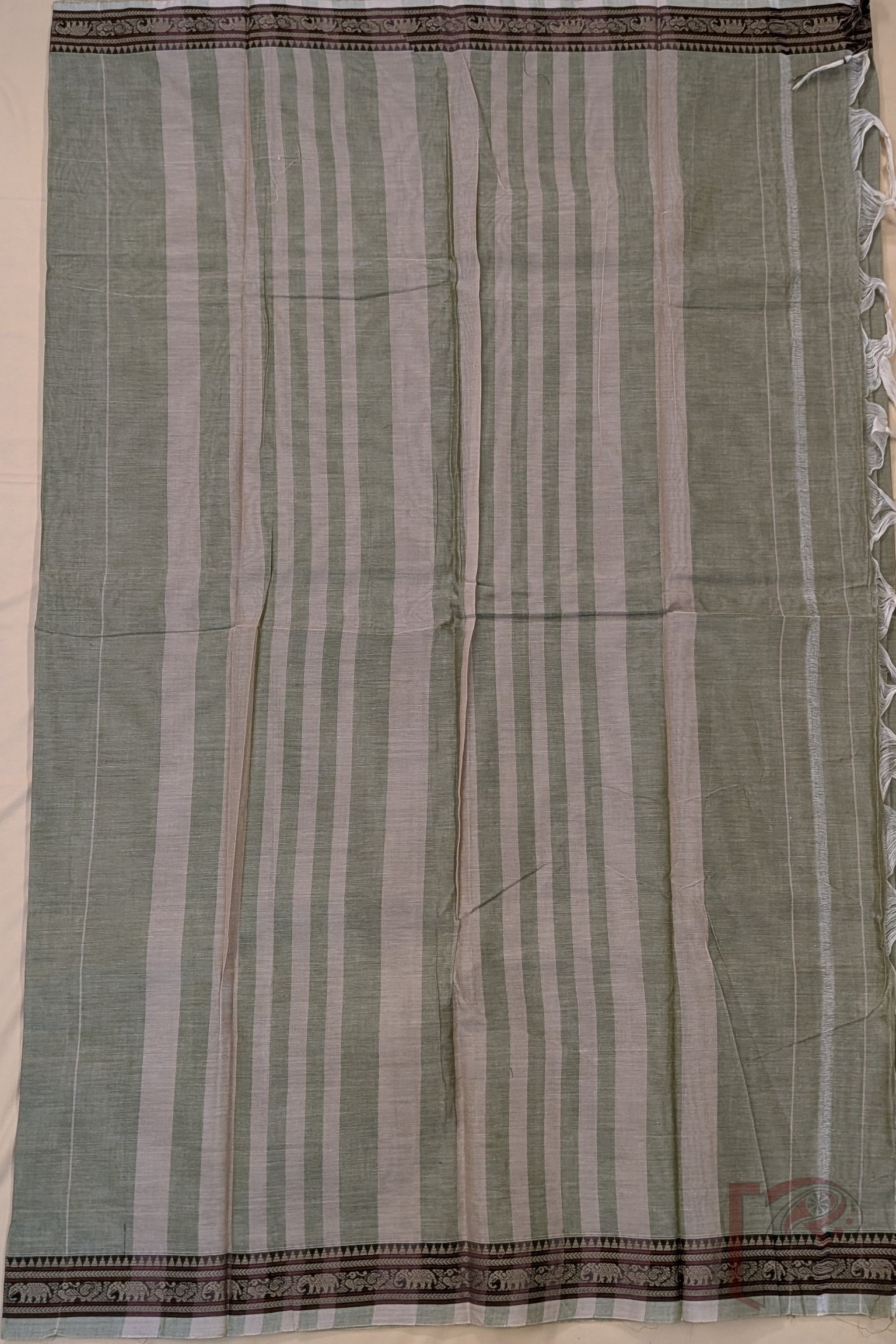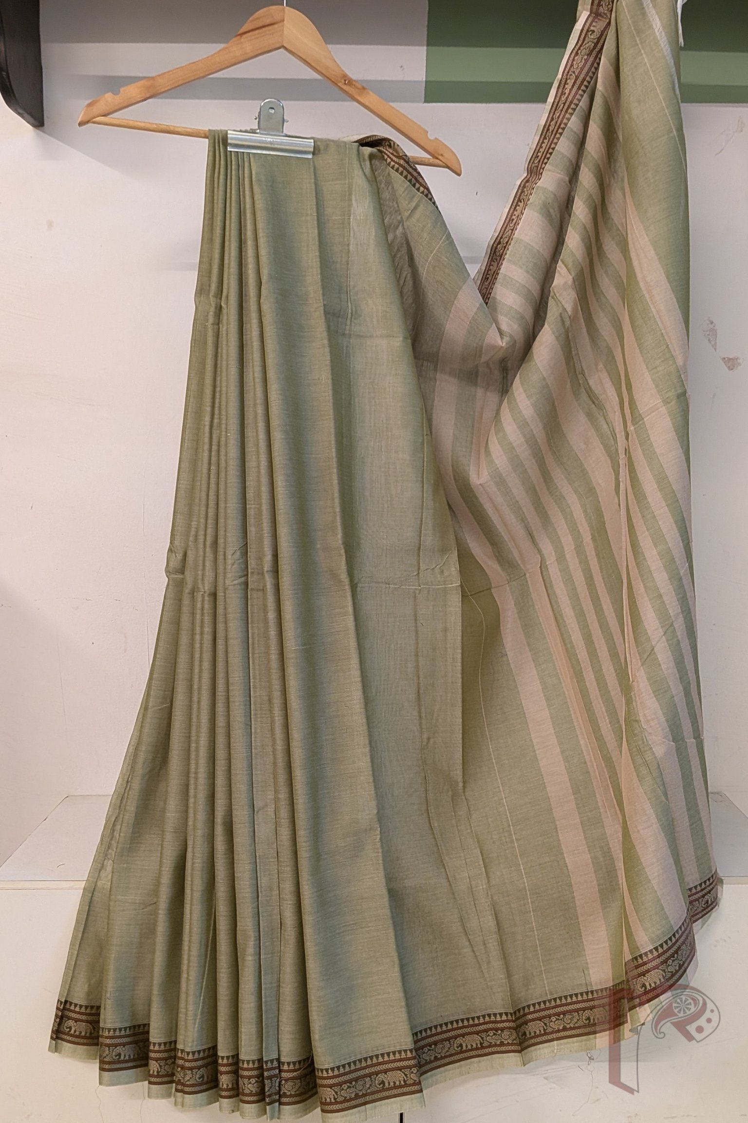 Ilkal Heritage – Light Pista Green Mercerized Cotton Ilkal Saree with Off White Striped Pallu