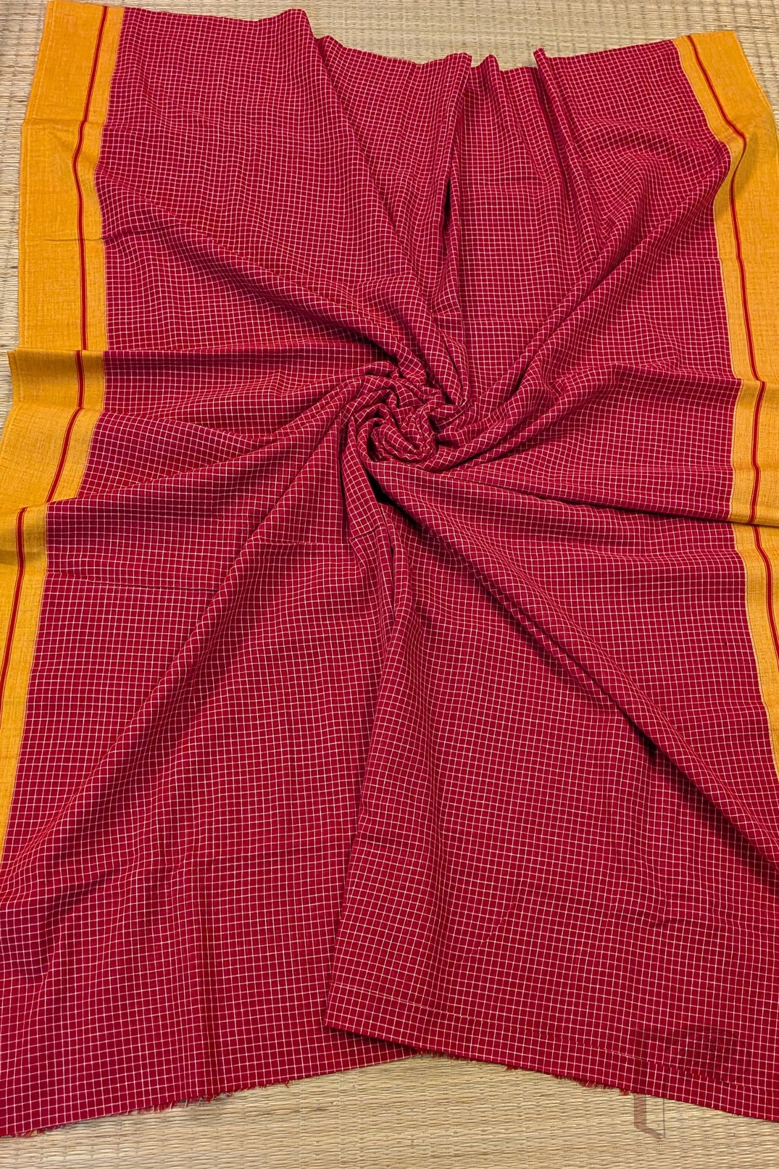Woven in pure, breathable cotton, Patteda Anchu sarees are perfect for the Indian climate, offering unmatched comfort without compromising on style. Their signature design often features contrasting borders in striking colors, checks across the body, and occasionally the symbolic five colors — red, black, green, white, and yellow — that represent the Pancha Bhootas (the five elements of nature). These hues give the sarees a spiritual depth, making them not just attire but also an offering of reverence, historically presented to deities and used in auspicious ceremonies.