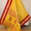 This cream Bengal cotton Jamdani saree is a graceful handloom creation that beautifully balances subtlety with vibrance. The soft cream base is adorned with delicate booti motifs woven in red, lemon yellow, and mustard yellow threads, creating a lively interplay of colours across the body. The saree features a unique non-traditional border with long leaf stem motifs woven in alternating red and mustard yellow threads, adding a striking visual rhythm to its elegant design. Crafted from lightweight Bengal cotton, the saree is comfortable, breathable, and perfect for both everyday wear and special gatherings. Its versatile palette makes it easy to pair with blouses in bold or neutral shades, allowing you to style it in multiple ways. Please note, the saree comes without a blouse piece, giving you the freedom to mix and match as per your personal style.