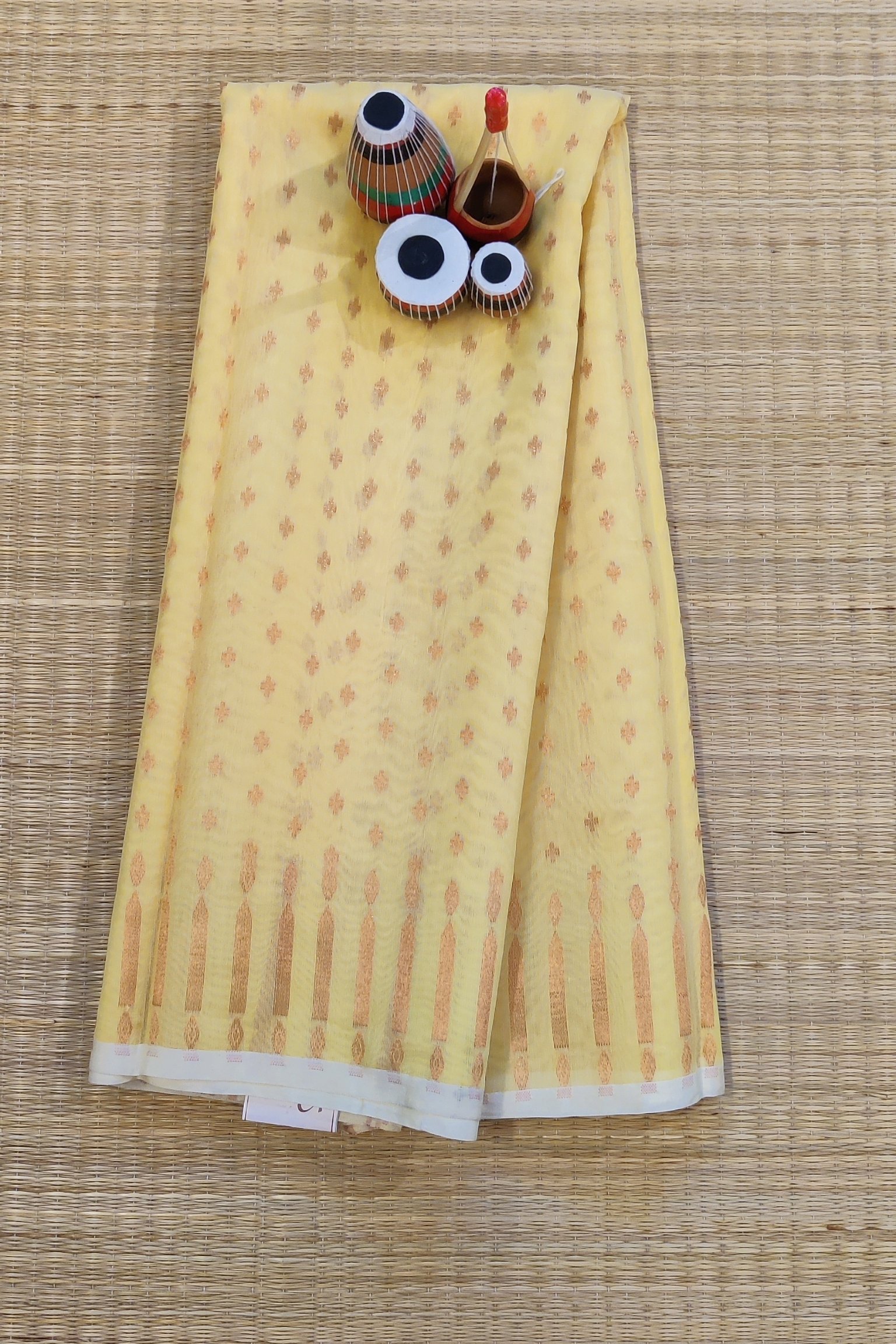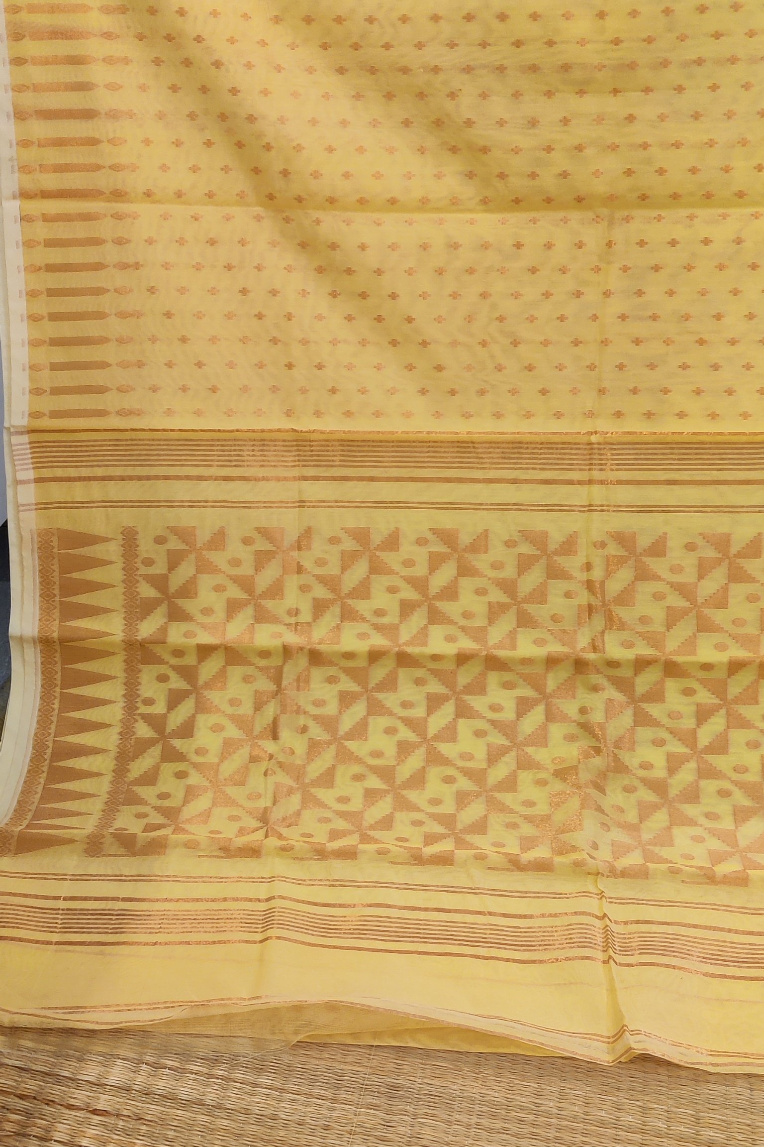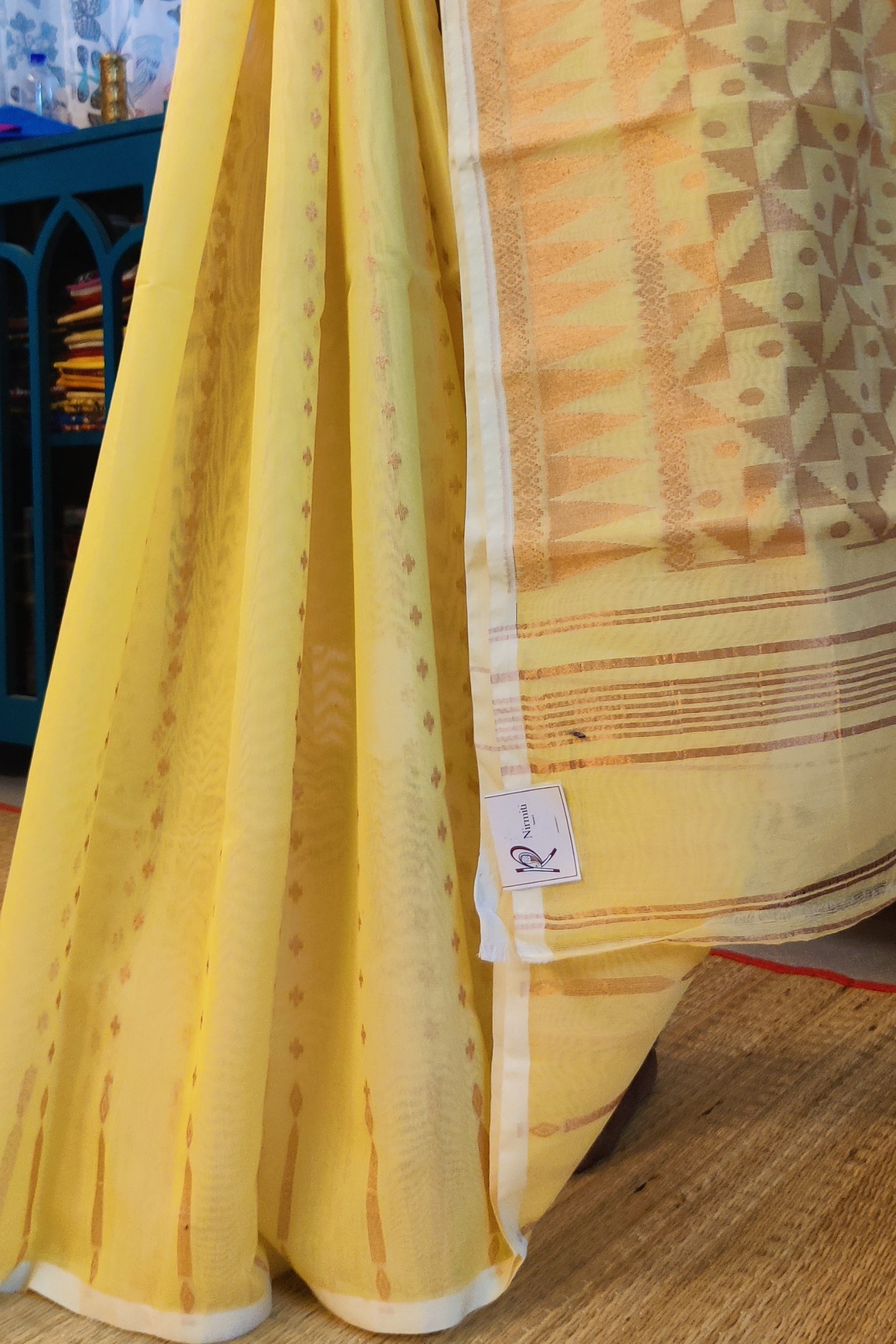 Jamdani Joy – Lemon Yellow and Gold Mul Cotton Handwoven Jamdani Saree