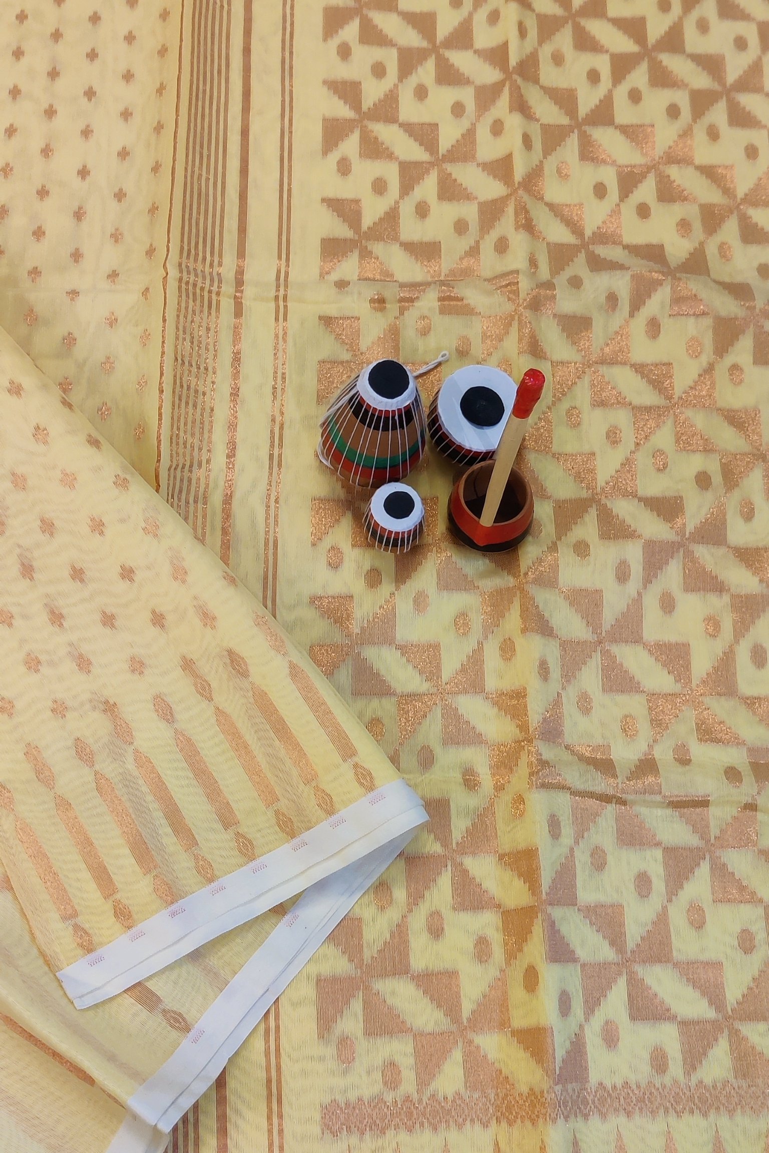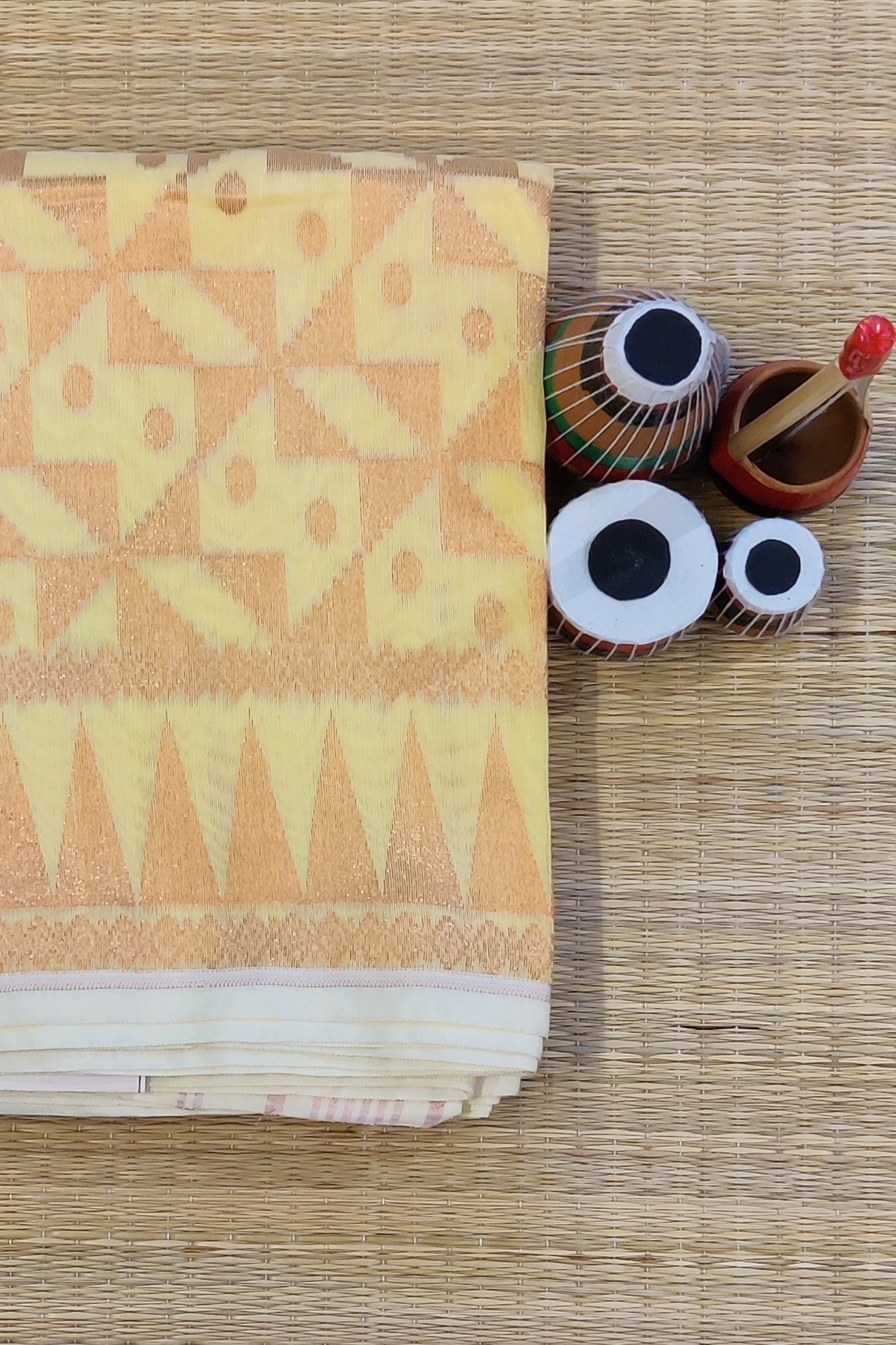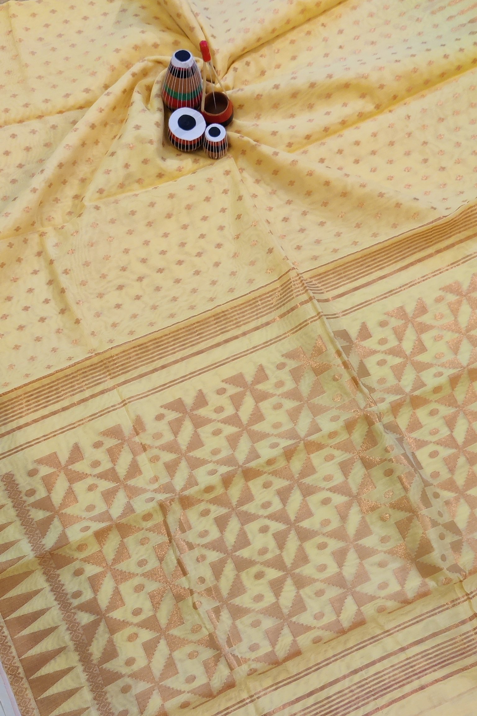 Jamdani Joy – Lemon Yellow and Gold Mul Cotton Handwoven Jamdani Saree