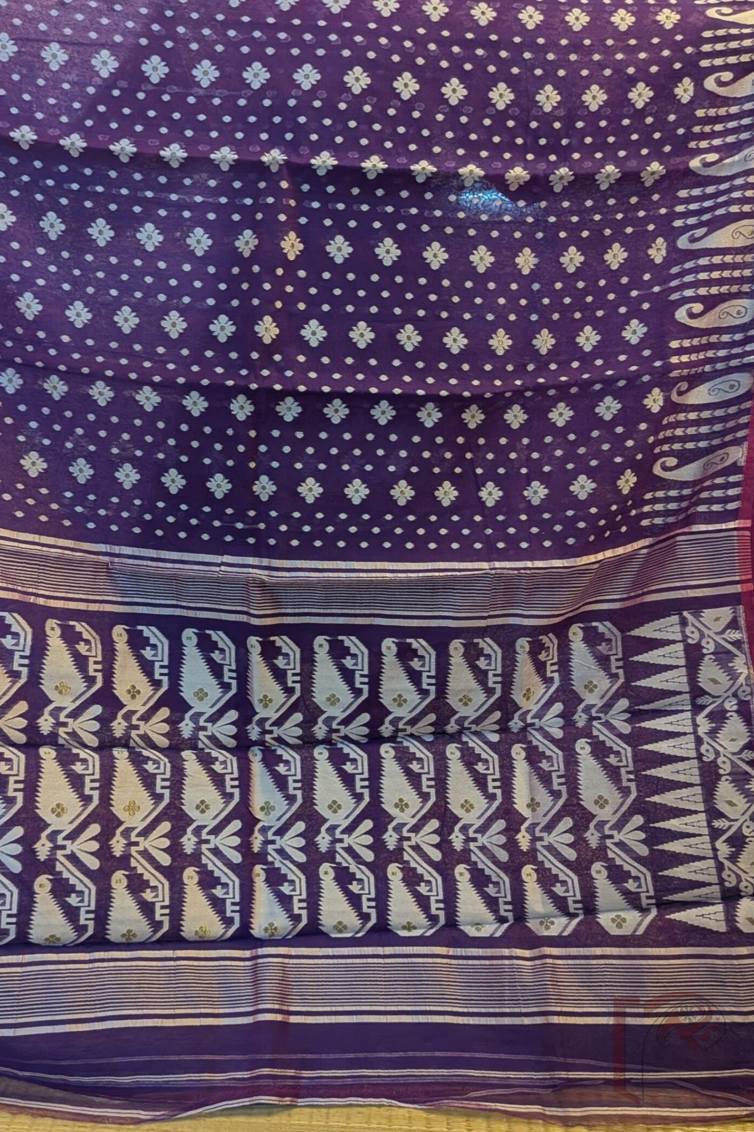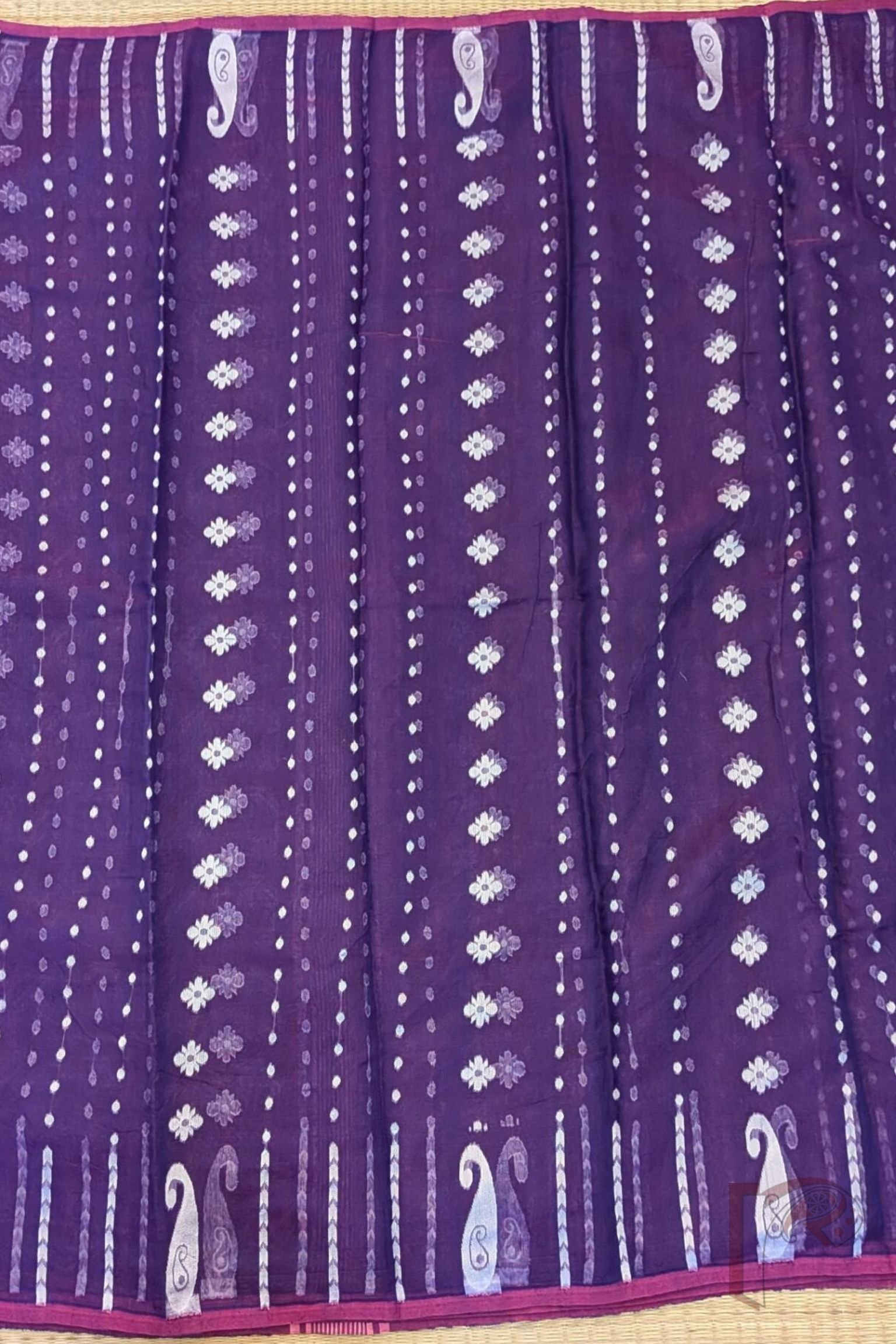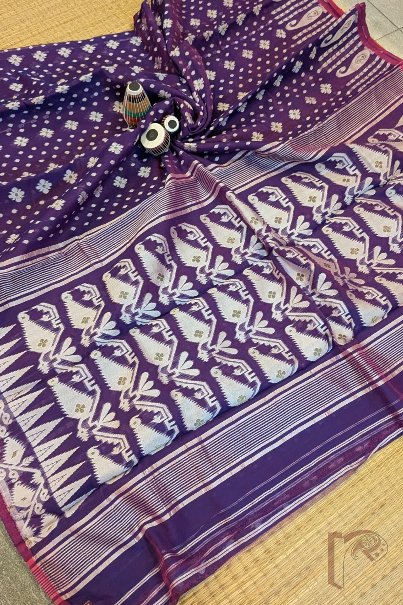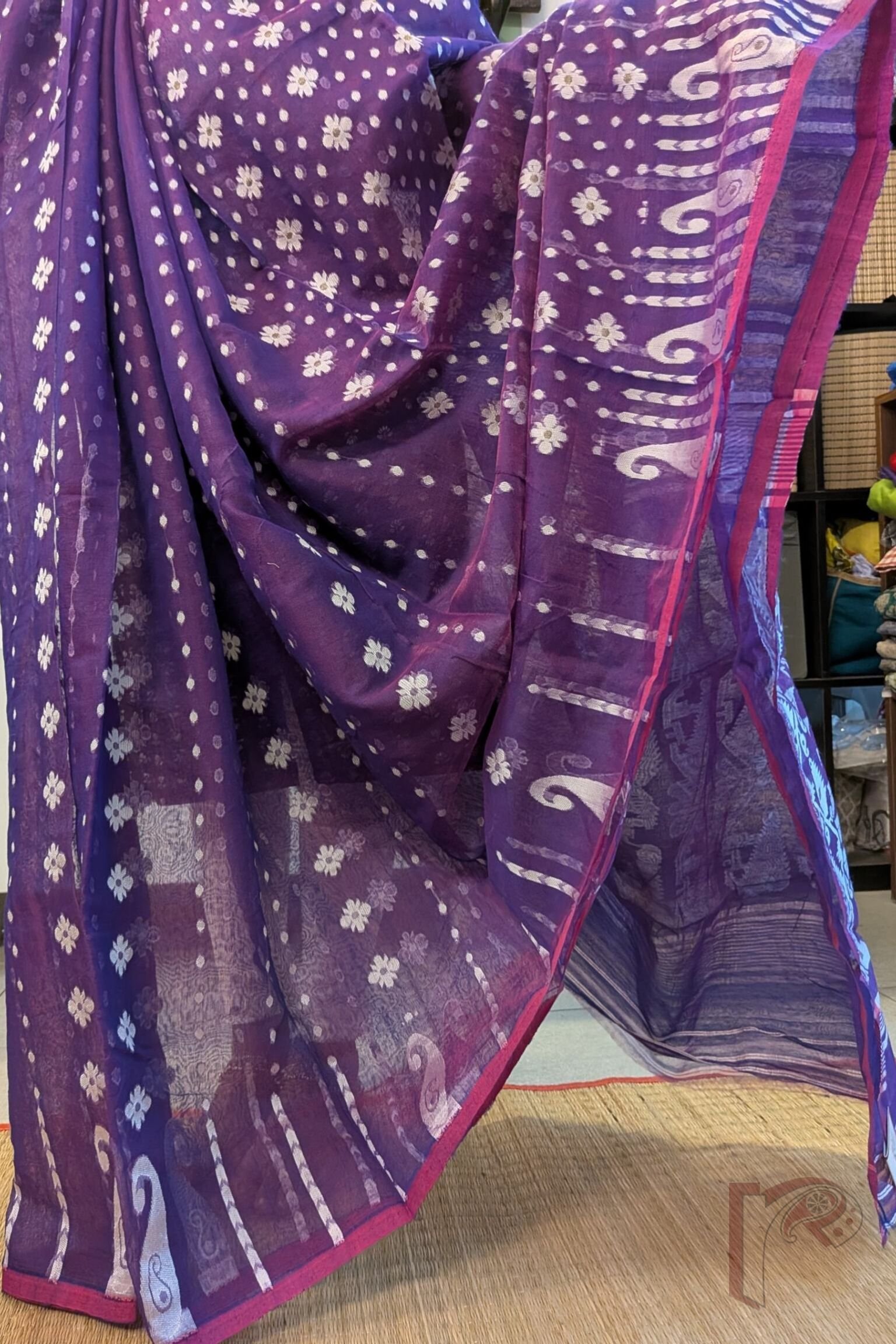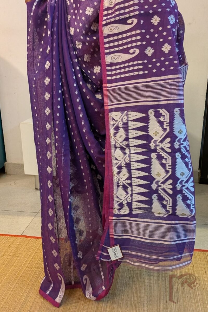 Jamdani Joy – Lightweight Purple Jamdani Saree with Off-White Polka & Floral Motifs