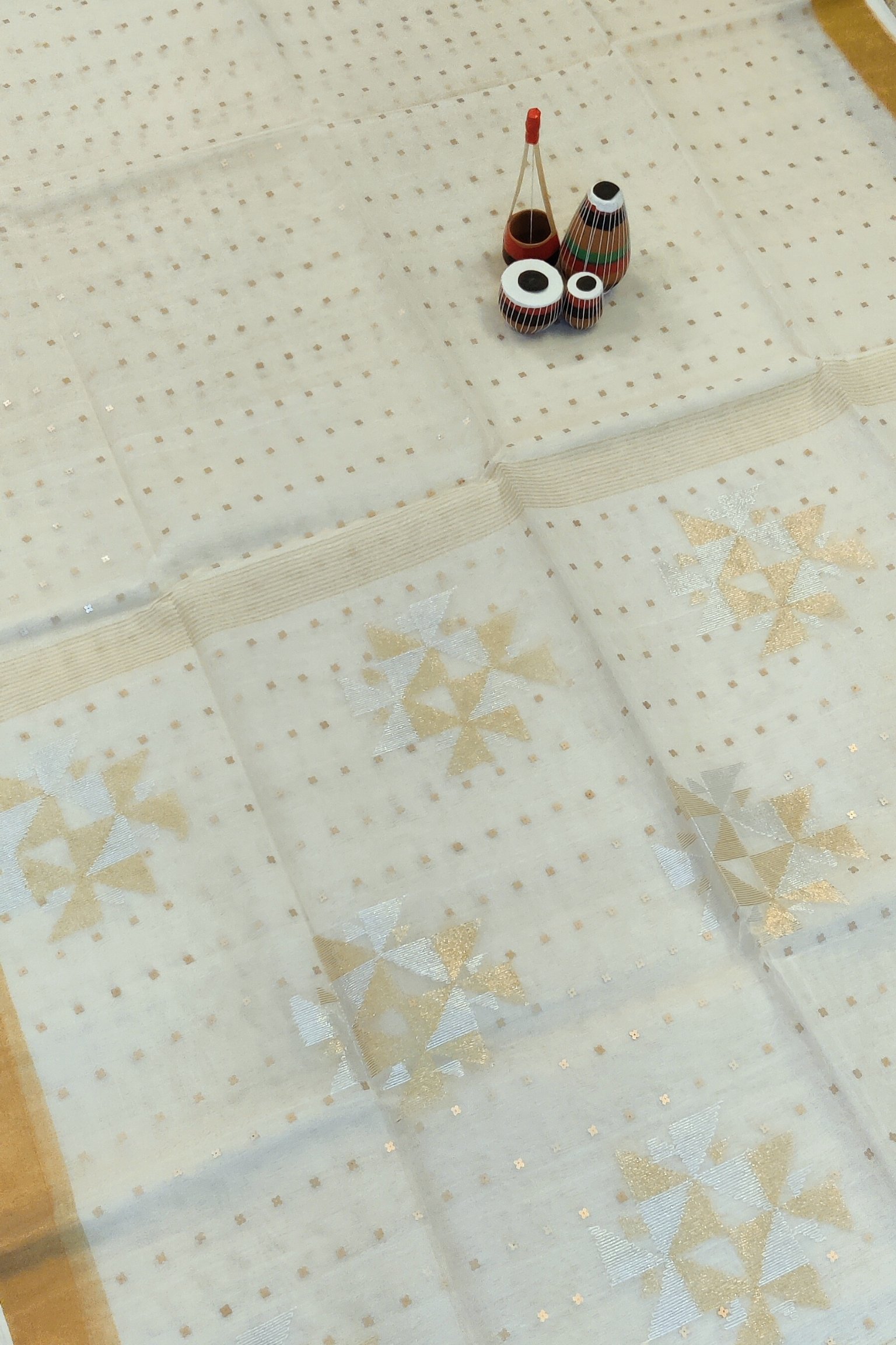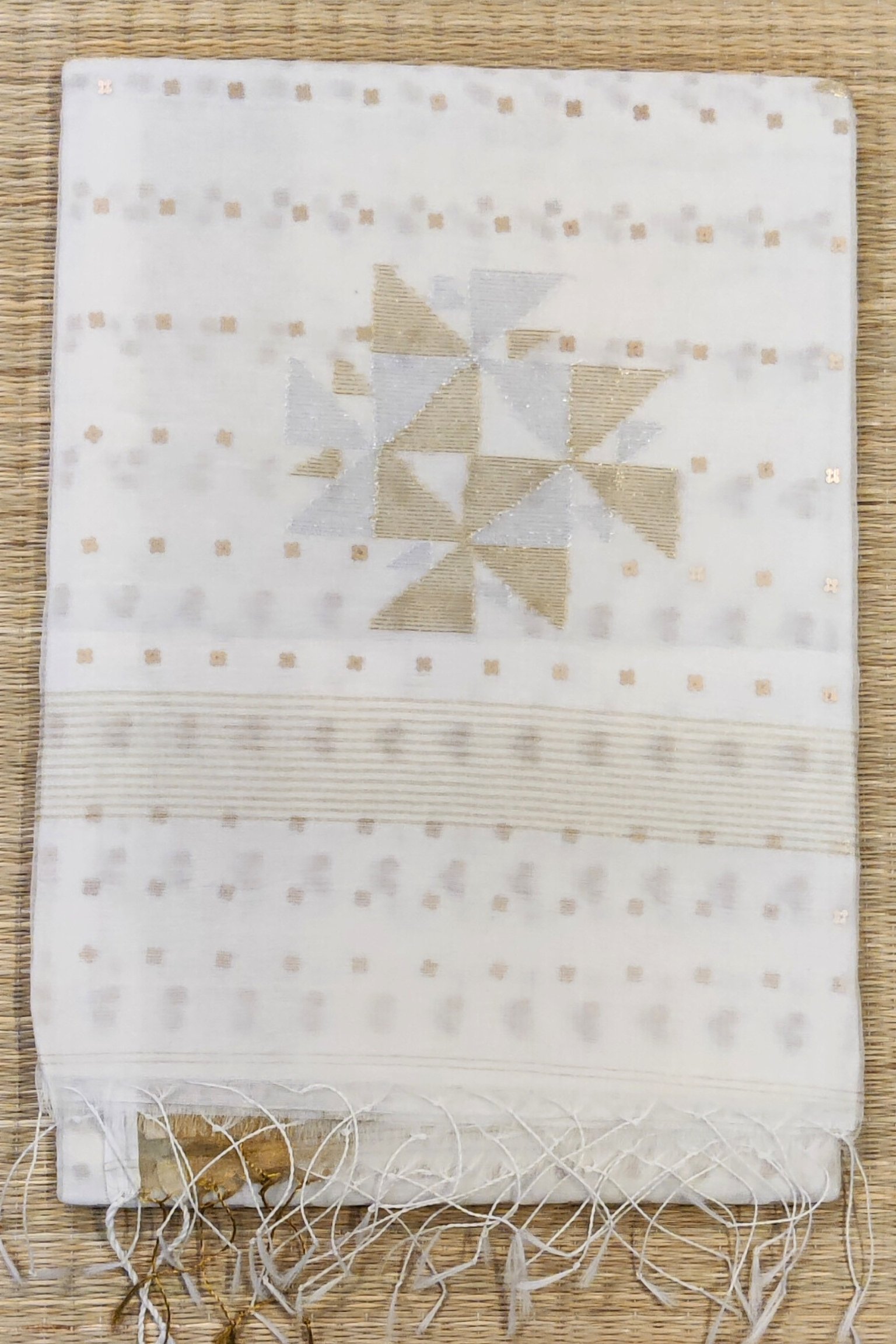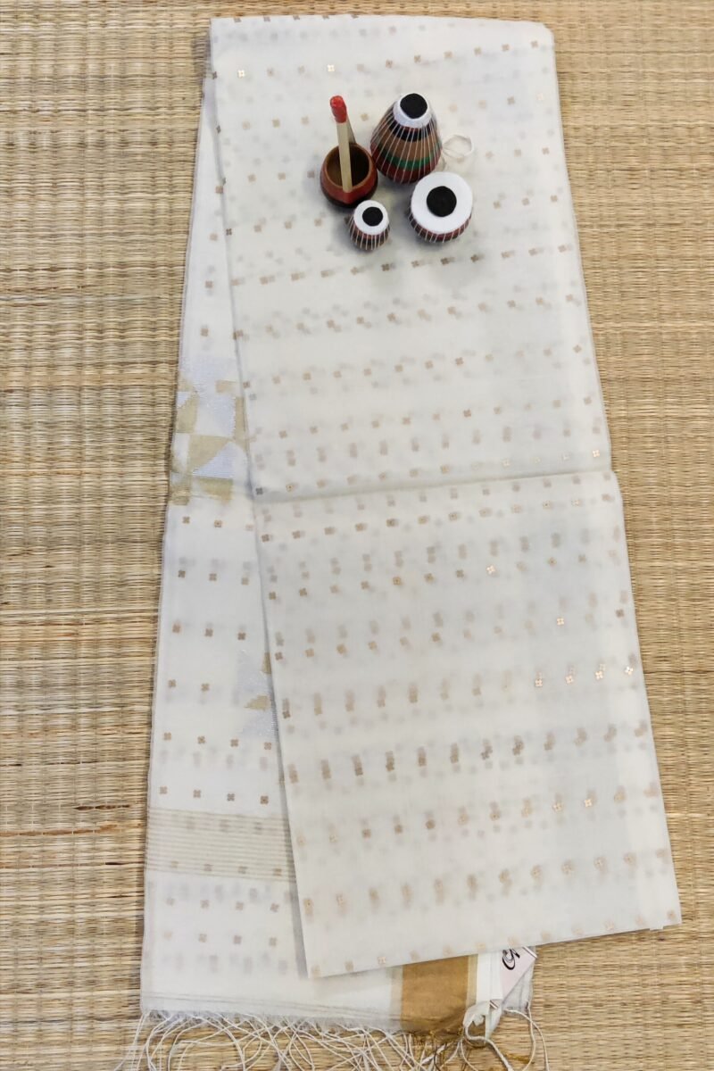Jamdani Joy – White Muslin Silk Handwoven Jamdani Saree