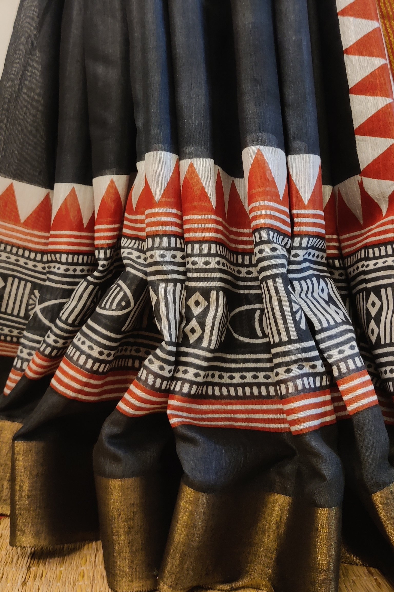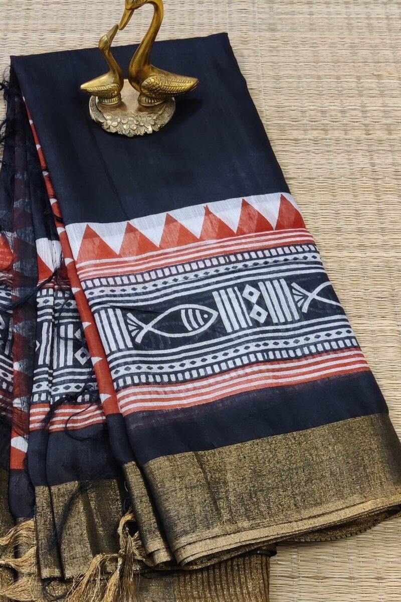 Jayshree Jiva – Black Cotton Silk Jayshree Staple Saree