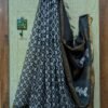 This smart black cotton silk saree features an eye-catching diamond grid pattern, created using dotted lines that flow seamlessly across the body, giving it a structured and contemporary feel. The saree is framed with a tomato red border enriched with a bold 5-inch gold zari, adding warmth and festive depth. The tomato red pallu, highlighted with three sets of multi-line gold zari, brings richness and contrast to the darker body. Designed for confident styling, this saree is a striking blend of modern geometry and traditional zari craftsmanship.
