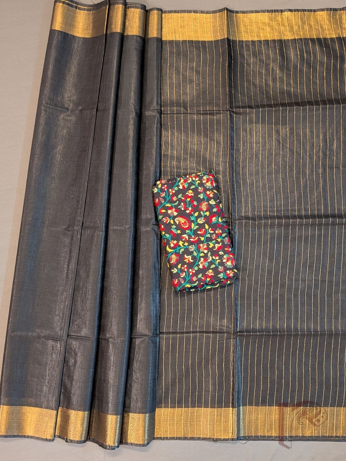 Woven in Bhagalpur, a region celebrated for its silk heritage, these sarees embody lightweight luxury, graceful drape, breathable silk texture, and subtle festive elegance. The running blouse pieces with zari accents allow effortless styling while maintaining continuity in design. Whether styled traditionally or with modern blouses, these sarees offer classic sophistication, effortless elegance, and year-round wearability.