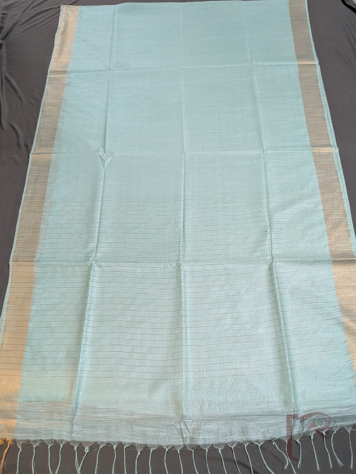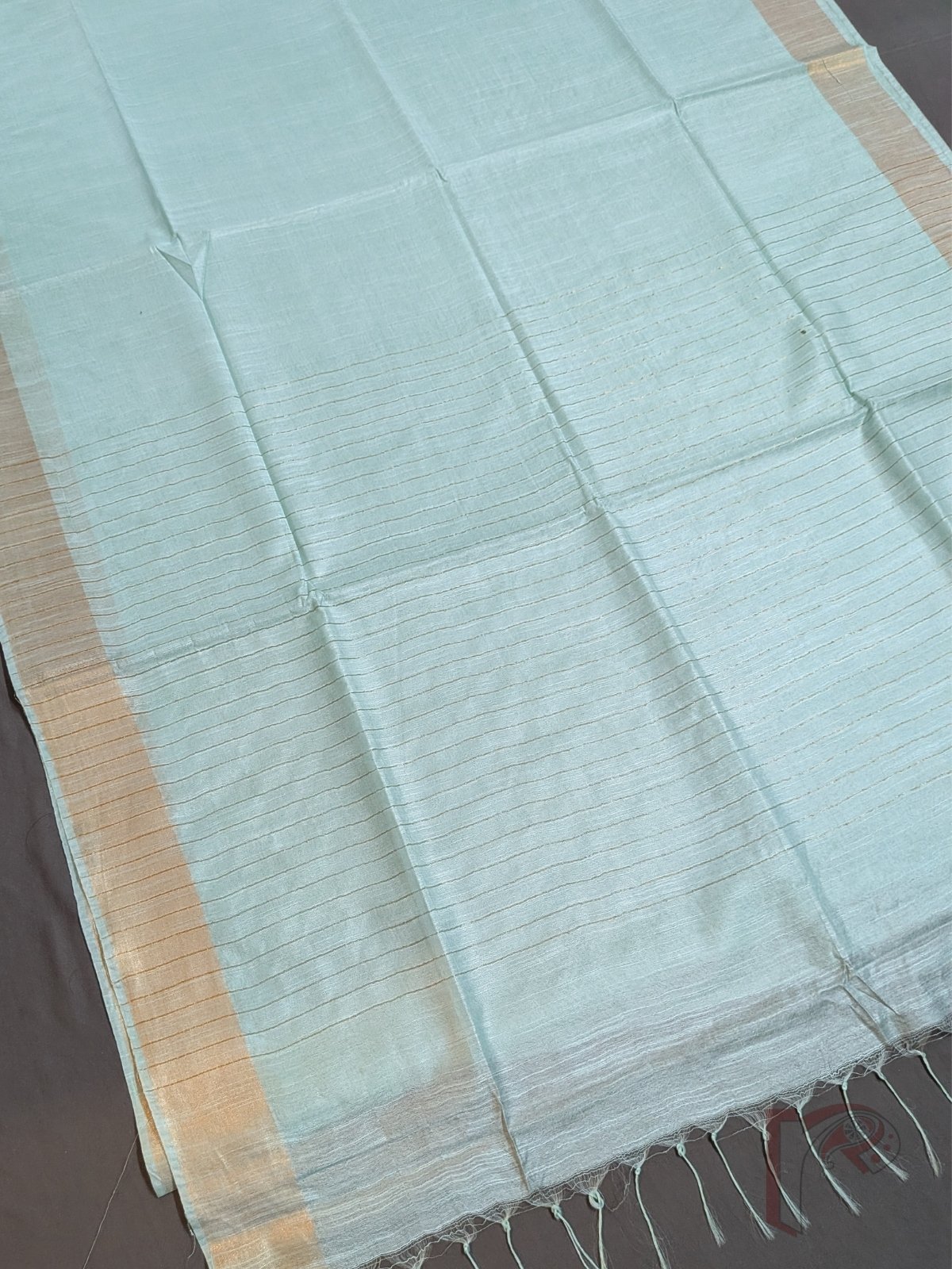 Katan Charm: Pastel Sky Blue Katan Silk Plain Saree with 3 Inch Gold Zari Border and Subtle Gold Pallu Lines